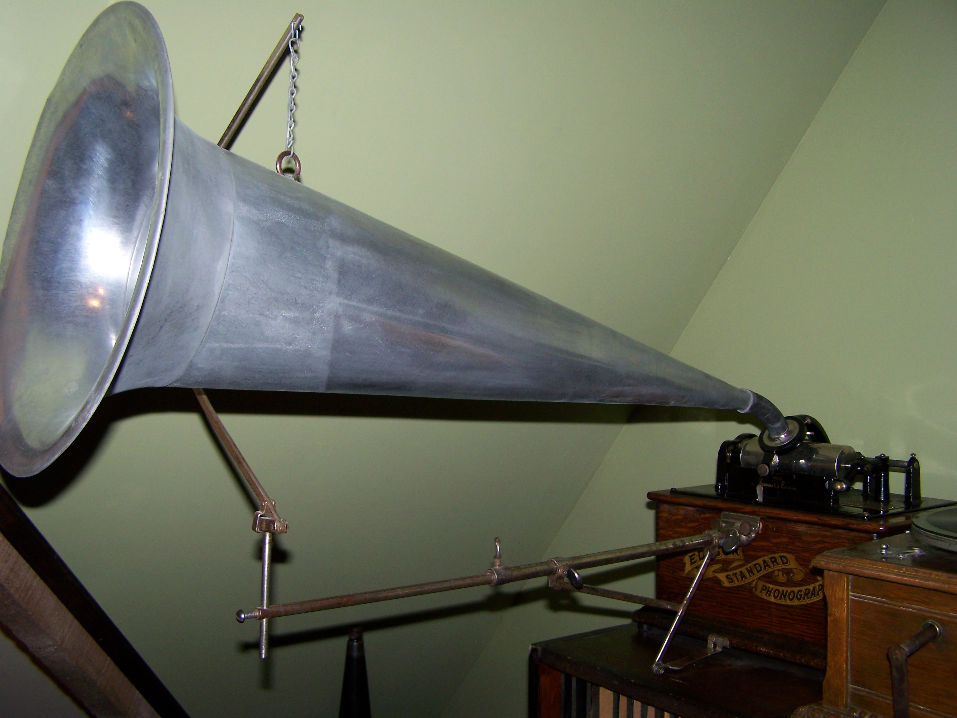 This came with an Edison Standard but was not attached to the case. It has a patent date on it: April 23, 1901. I know very little about horn cranes. Is it in fact a horn crane? If so, is it complete? I searched on line for pictures of horn cranes and found none so complicated as this one. There were many, many photos of cranes; I might have missed mine. Finally, does any one have a photo of one set up? I'd like to see how it goes together.