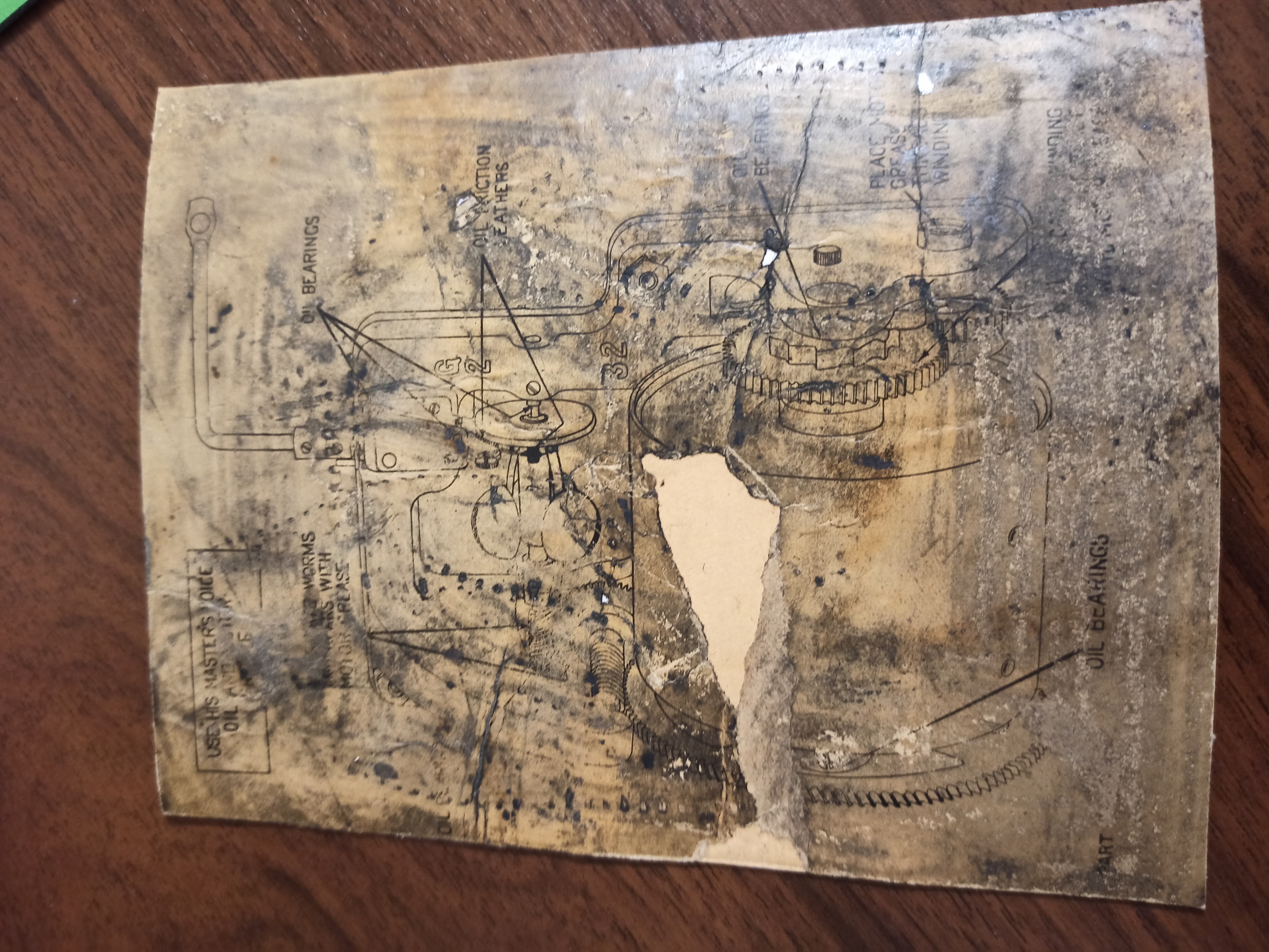 I checked the underside of the motor board on a couple of my HMV 2 spring motor machines. The sheet on my HMV 162 was worse than the OP's. The one on my HMV 163 was a bit better, so here it is.