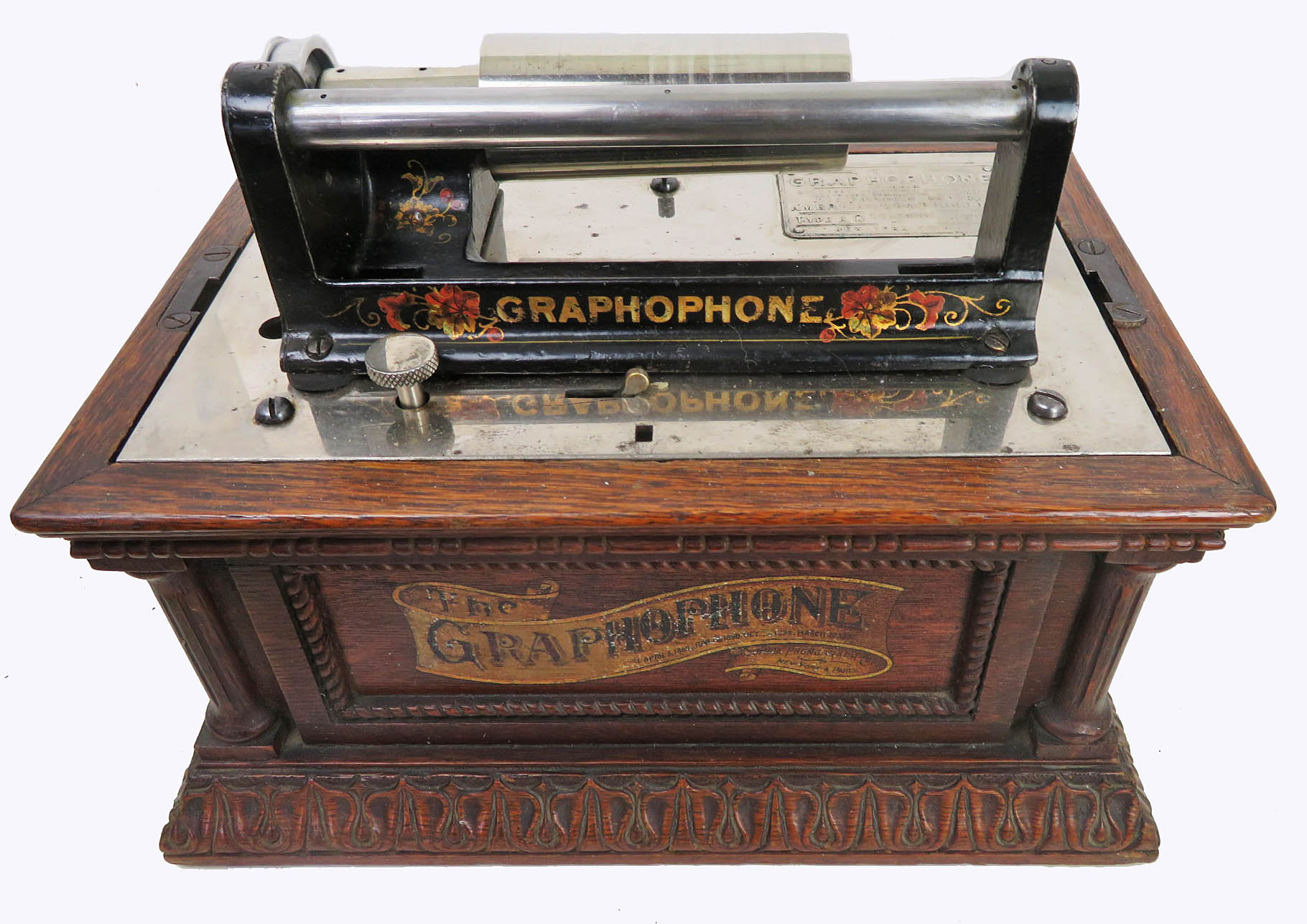 Columbia AO cylinder phonograph. This decorative Columbia is in great as found condition. All parts move freely and gears are sharp. The motor runs smoothly. The case and decals are original and solid. There is no crank or reproducer. This one is an easy restore. All that is needed is the reproducer carriage. Carriages from other Columbia phonographs will work.