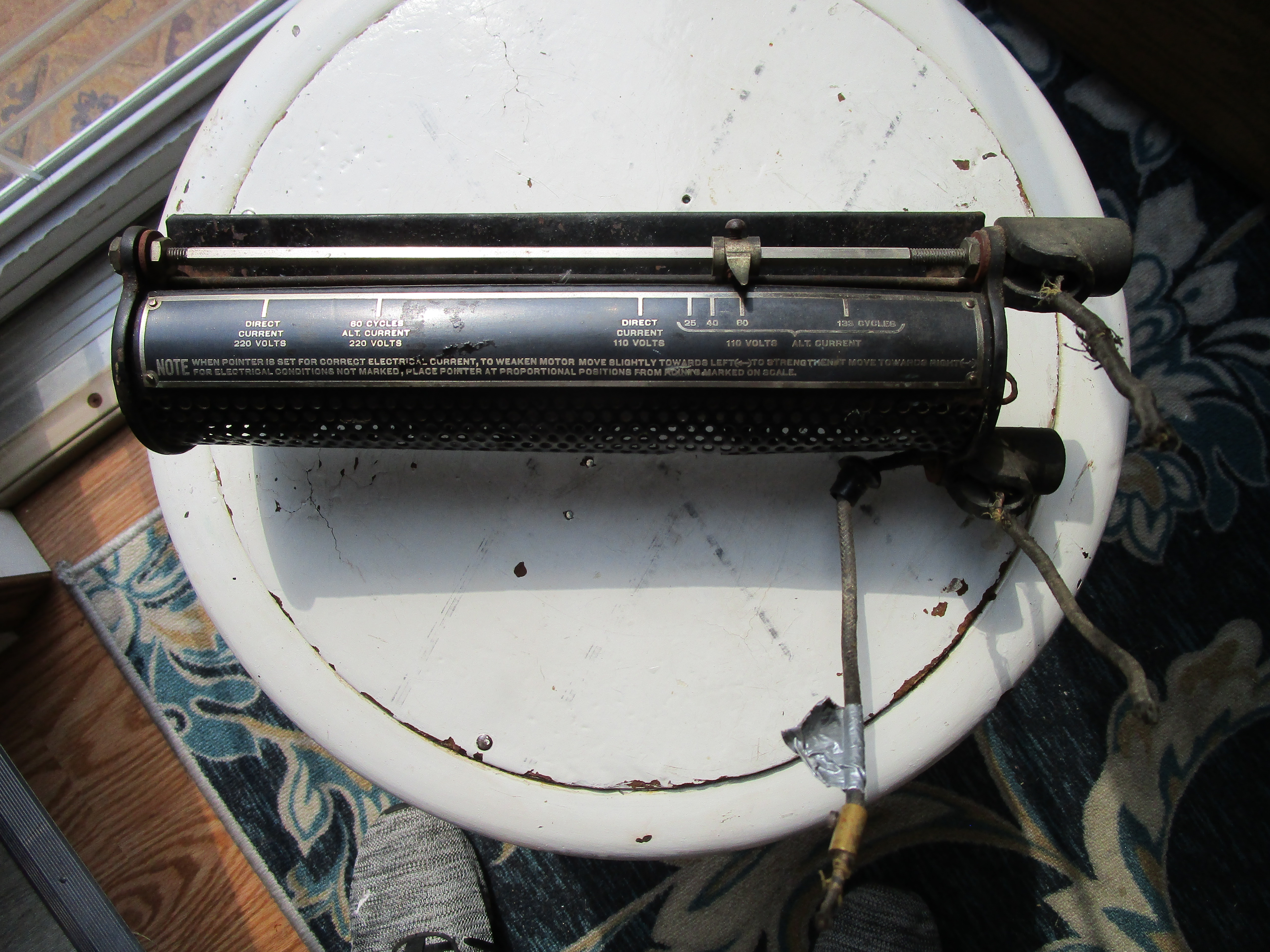 Mine is a model D Edison Business Phonograph. It also has a rheostat attached to the rear of the cabinet with AC and DC cycles dial settings.