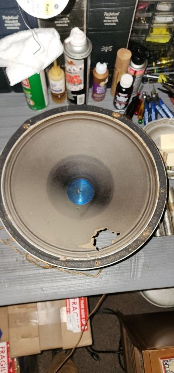 The first order of action was to get the Jensen speakers professionally re-coned and serviced. An experienced master installed an NOS Jensen cone on the 18 inch Jensen Bass speaker, an NOS Jensen cone on the 12 inch Jensen treble speaker, and a special design cone identical to the original on the 14 inch Jensen mid speaker.