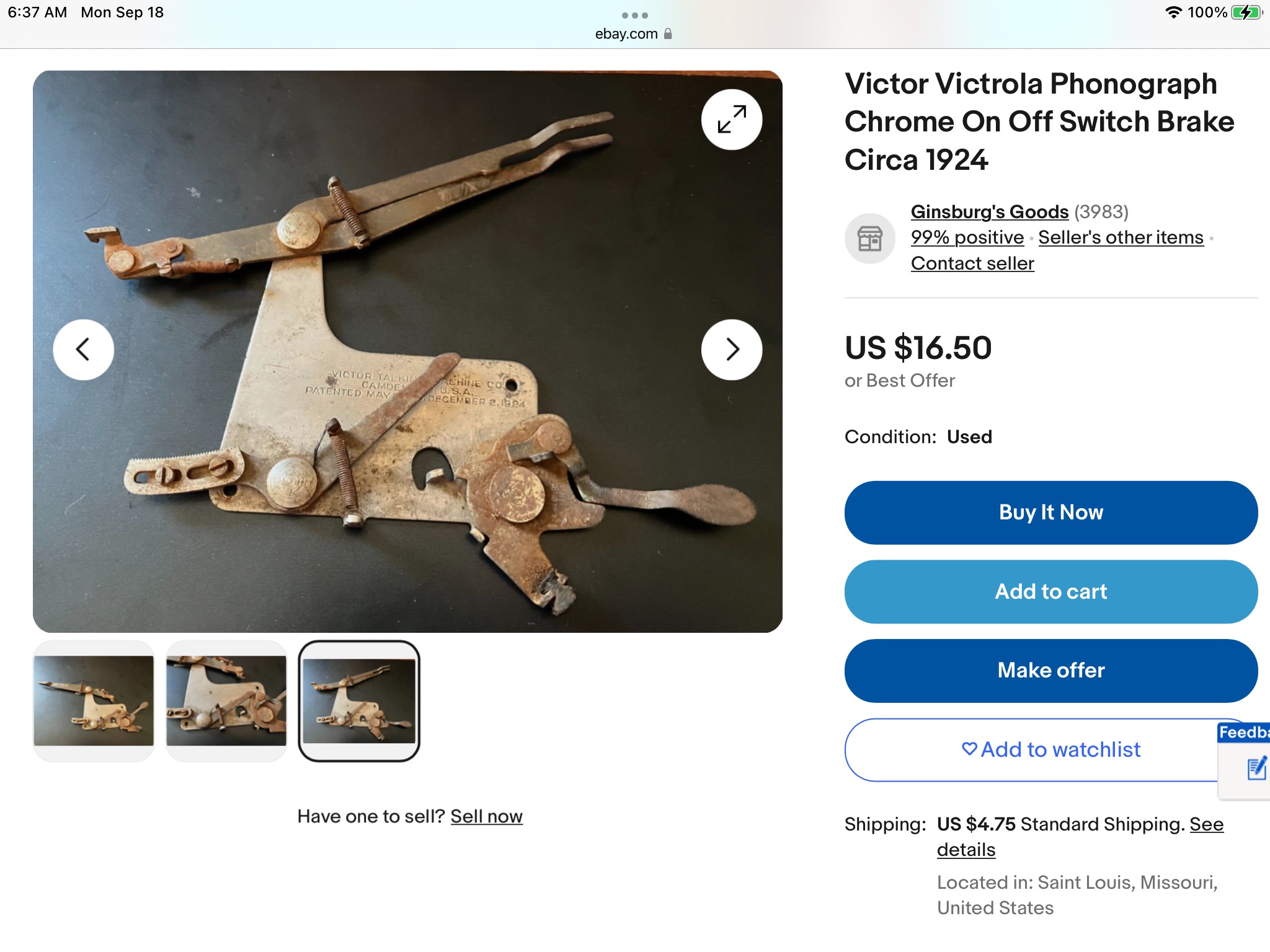 Here is a case where the Victor documents are sometimes misleading. The “where used” column in the chart I posted says that the other brake type was used on some incarnation on the 8-7. There may be another part entry that also lists the 8-7. The serial number is needed to fully determine the fit (unless Victor made and error in the listings) Victor supplied loose-leaf parts breakdown sheets to their dealers. They were regularly updated as new versions of existing machines or new models were introduced. The sheets are referenced to the model and serial number range. A second set of sheets lists the part numbers sequentially where the dealer could find the price and check the part details.