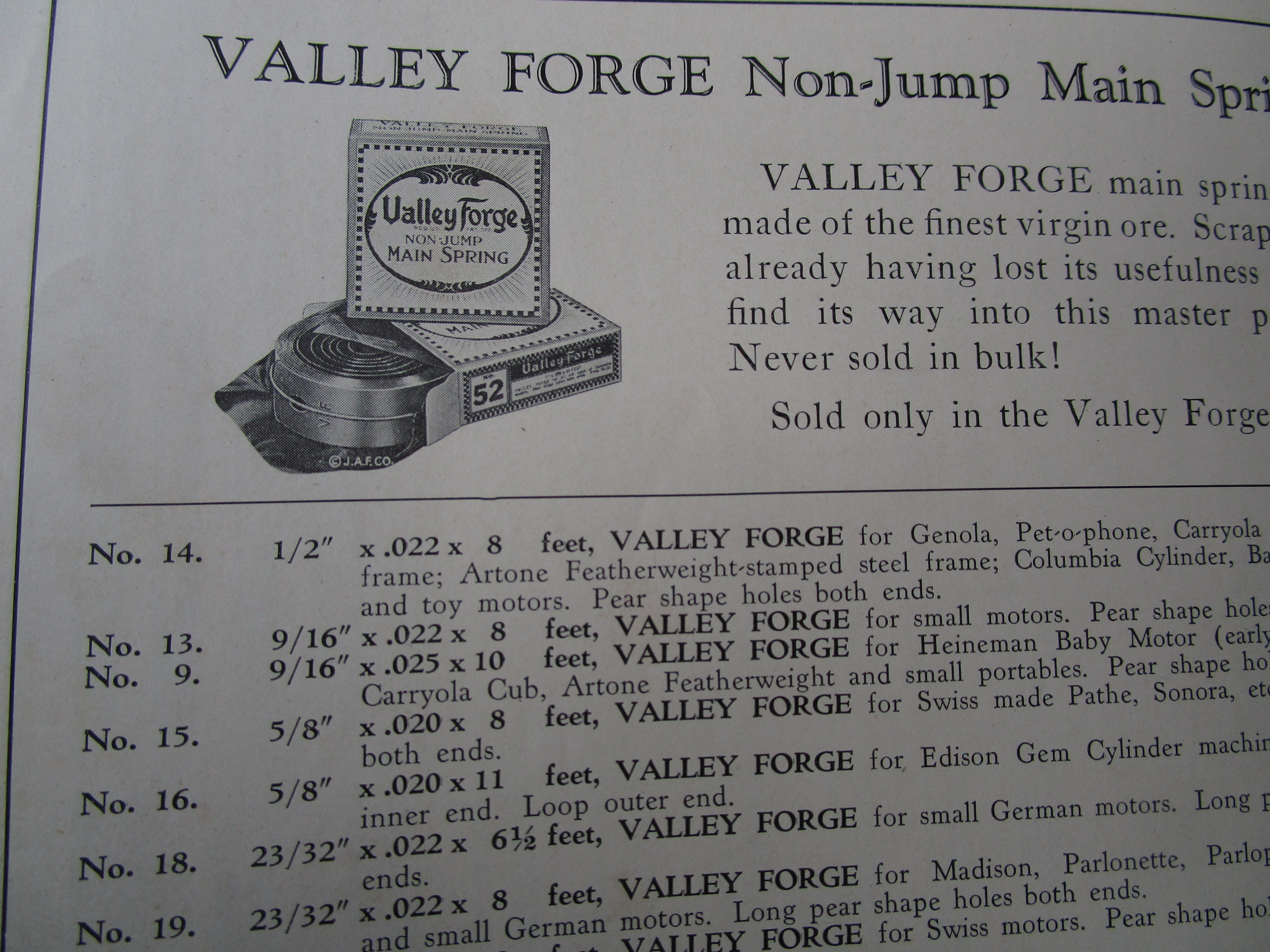 1. What is the length of a Puck main spring. The original main spring measures less than ½" wide and all of my early phonograph parts supply books (Honest Quaker, Valley Forge, etc.) feature ½" main springs and wider! (see picture) The Puck I have here was missing some of its main spring as it broke in several places so if I go to a clock maker for a new spring (since no one today seems to sell Puck size main springs) I need to know the length of the spring so he can make one.