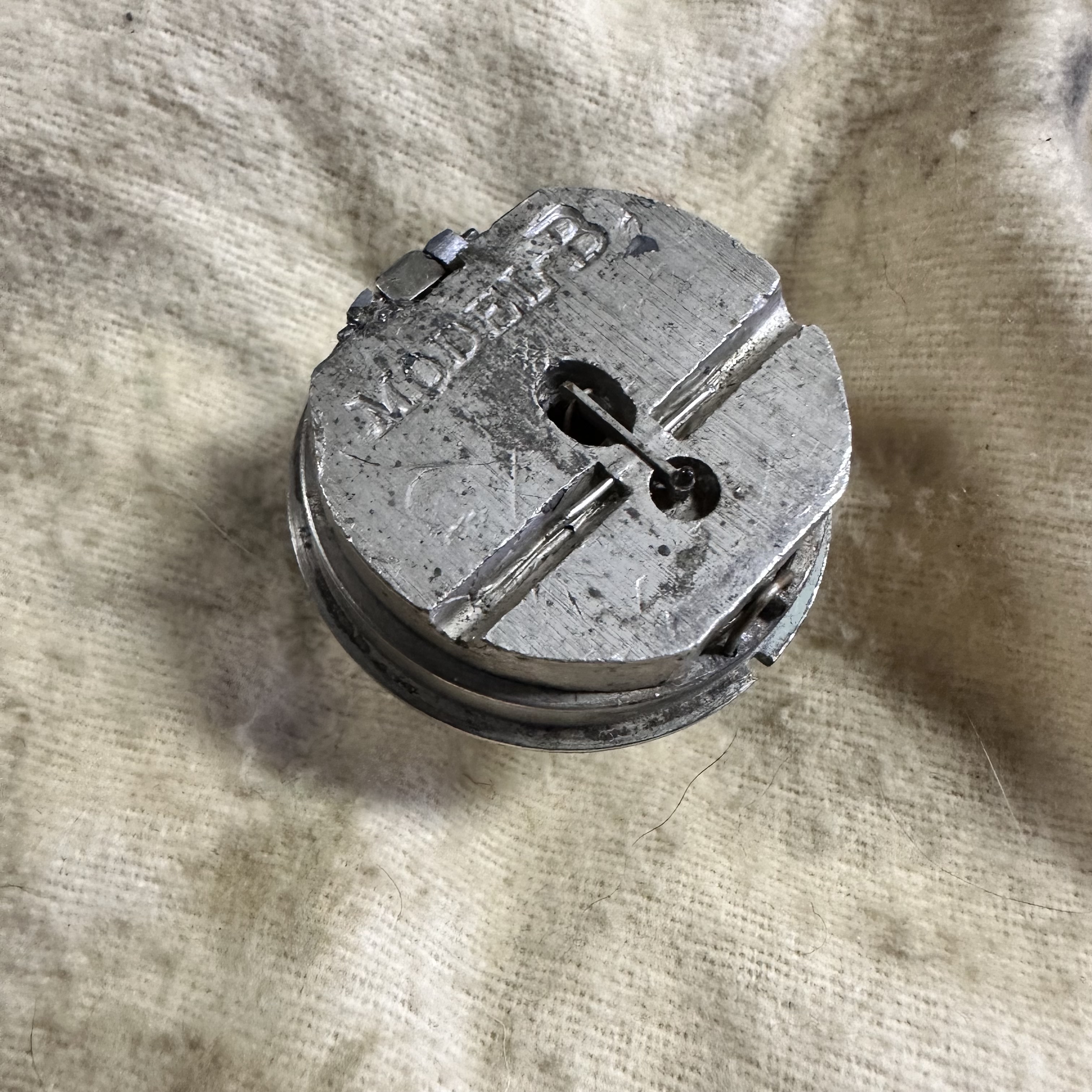 Here’s a great Edison Model B 2-minute ball stylus reproducer with a transitional top body. The top is from the side-arm period in that there is a gap in the text around the rim for side arm placement, however it was never drilled for a side arm.