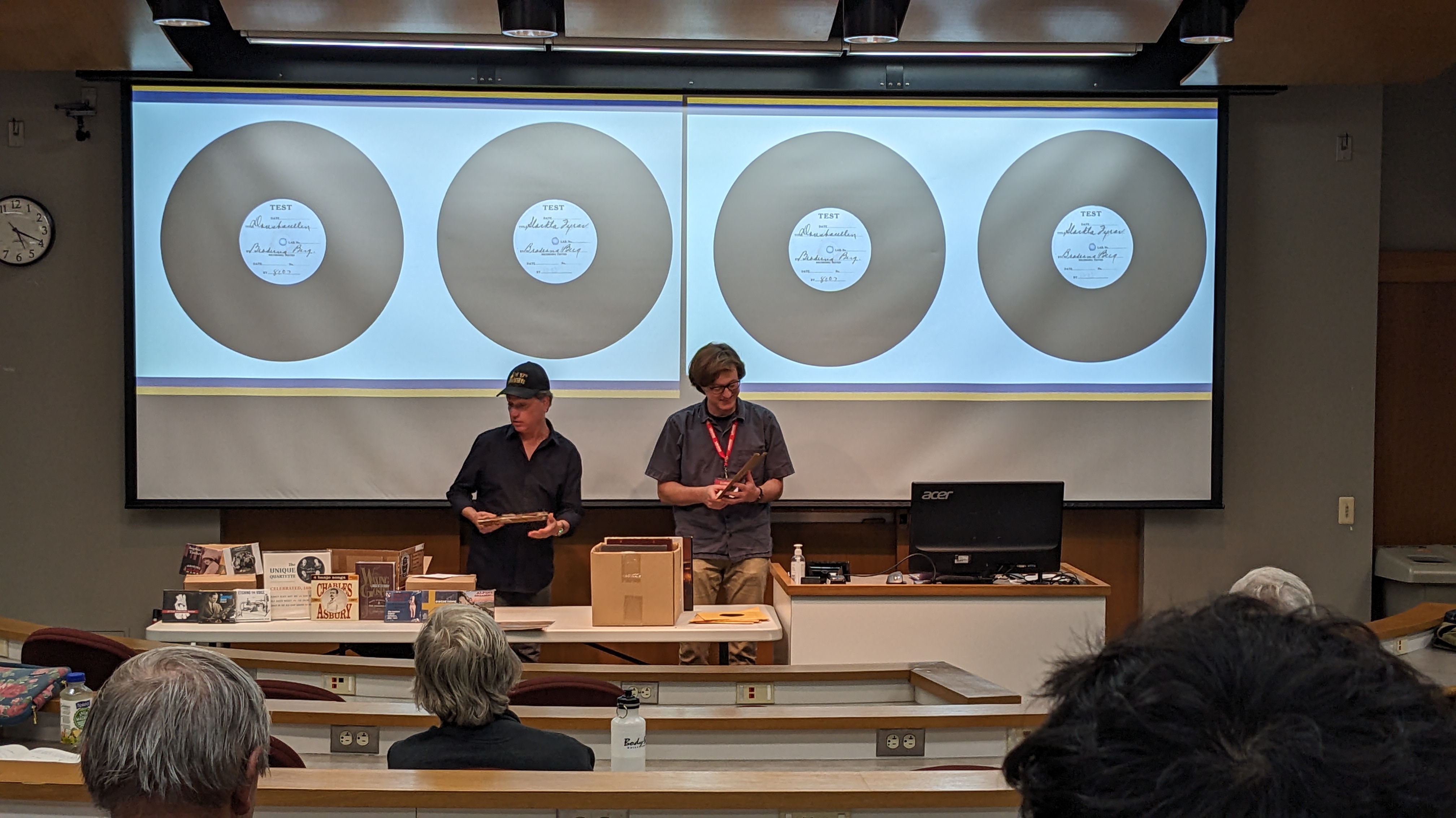 I had the good fortune to be in attendance at the presentation concerning the Wallin's Svenska Records project presented by the Archeophone Records crew and Professor Emeritus James Leary, which was held at UW-Madison's Mill's Music Library. I contributed to the Wallin's CD set (Swede Home Chicago) project, providing several Wallin's records and some Wallin's record sleeve graphics. Your two records were unboxed and shown to everyone in the audience. Your discovery of the two discs together like that is simply amazing!!! I still can't get over the superb condition of that test pressing, especially considering the stock copy suffered some significant heat damage to the grooves. I don't remember ever seeing a Marsh Laboratories test pressing of anything before that night --- quite impressive!
