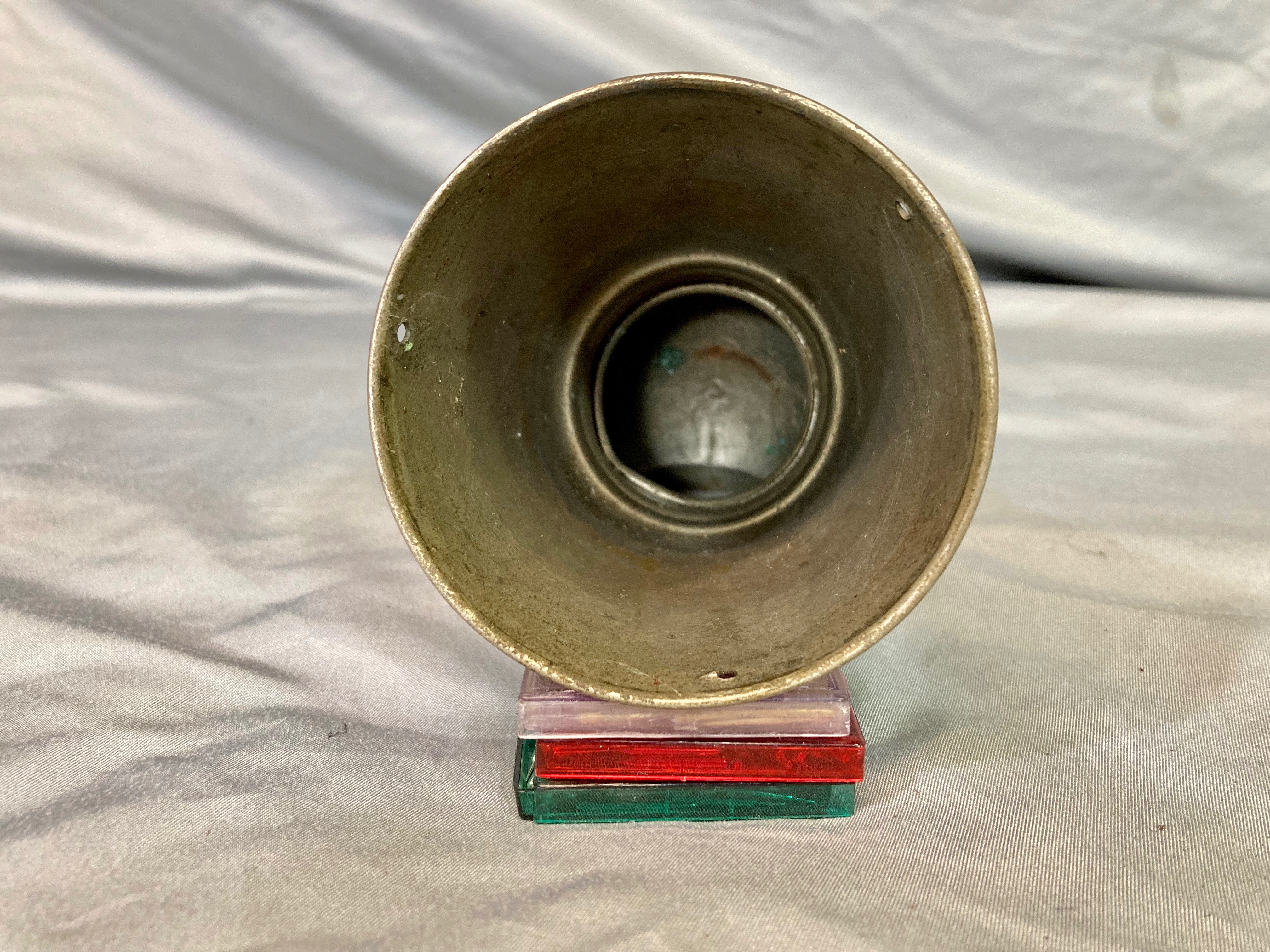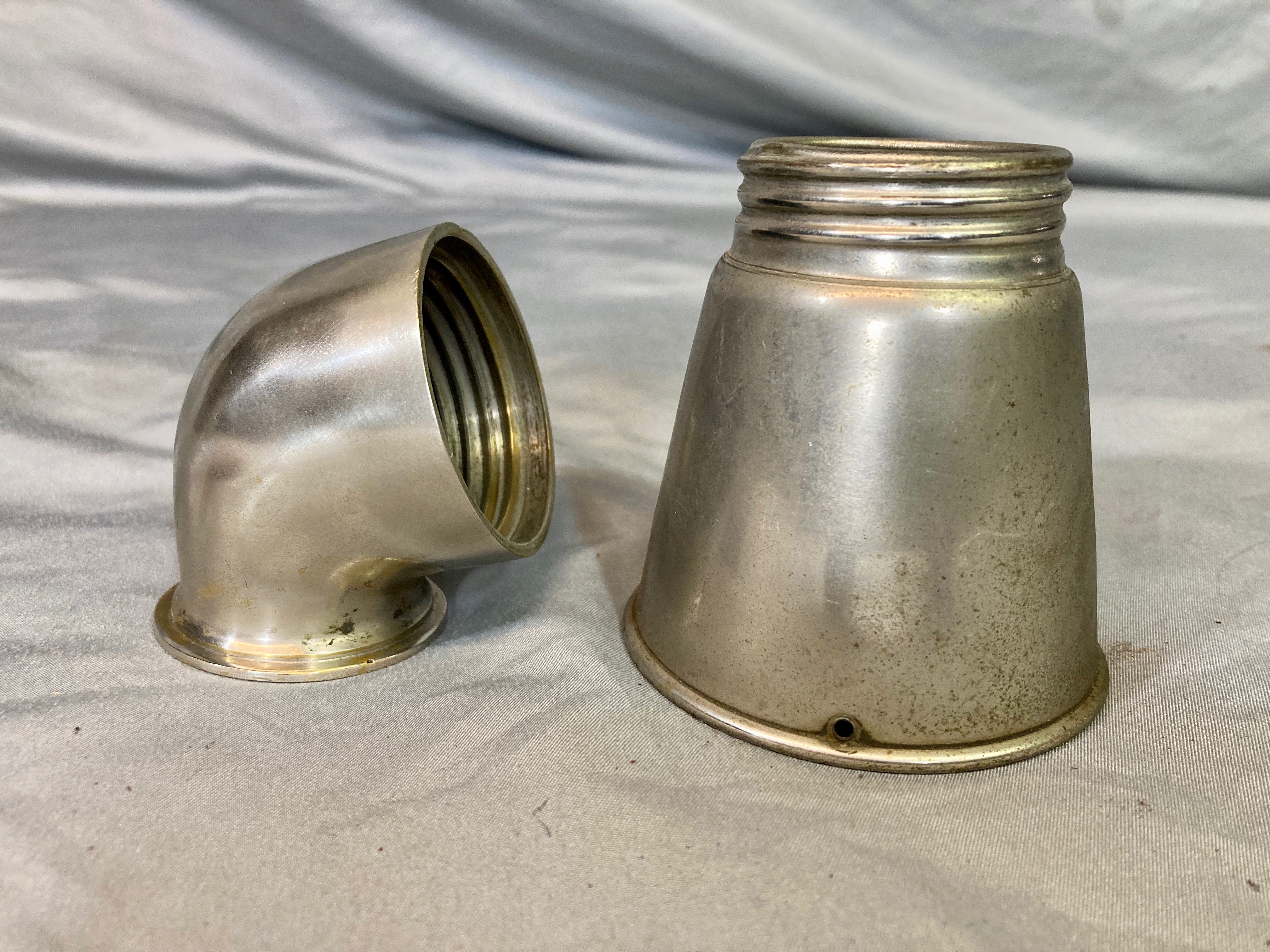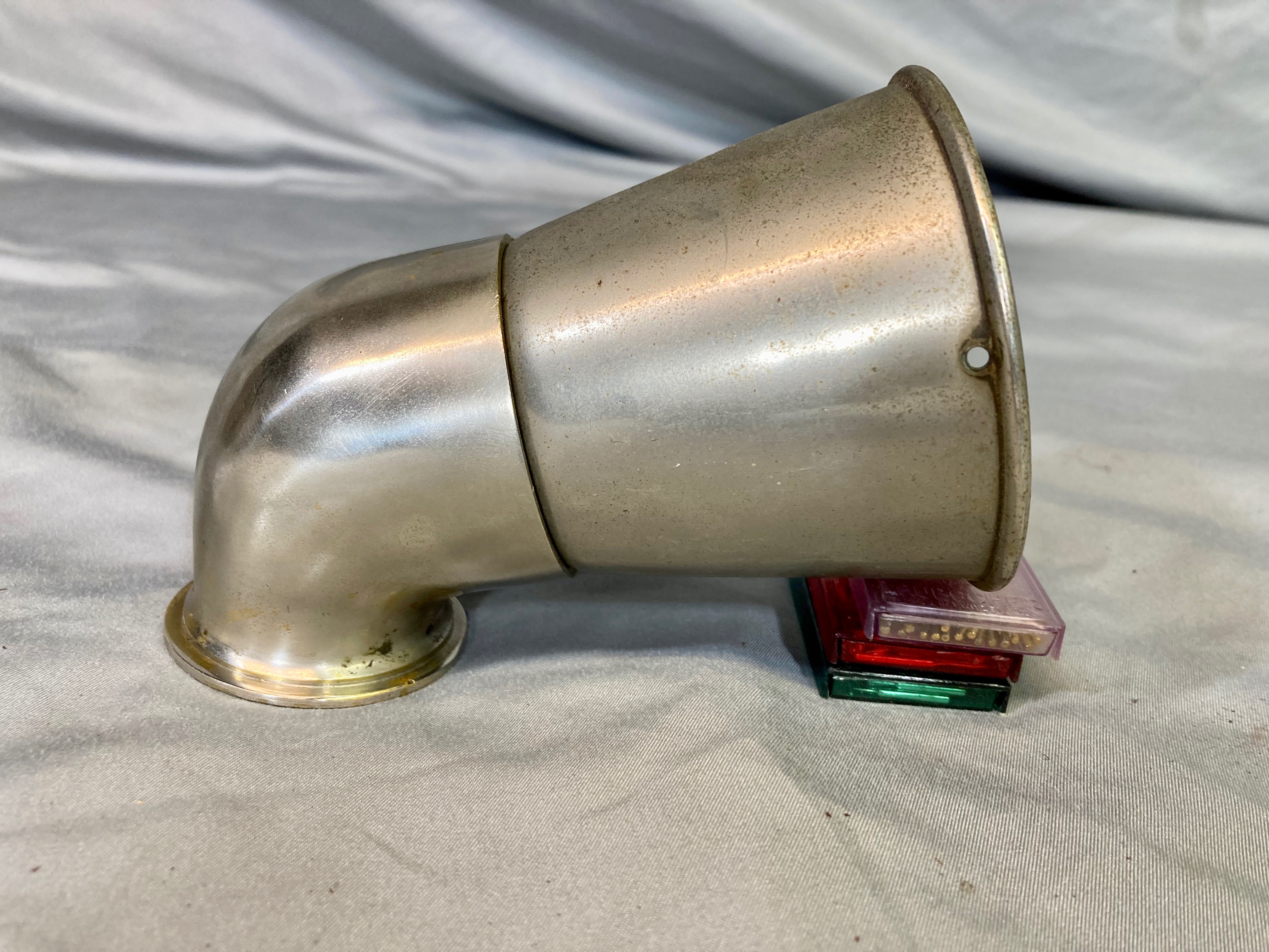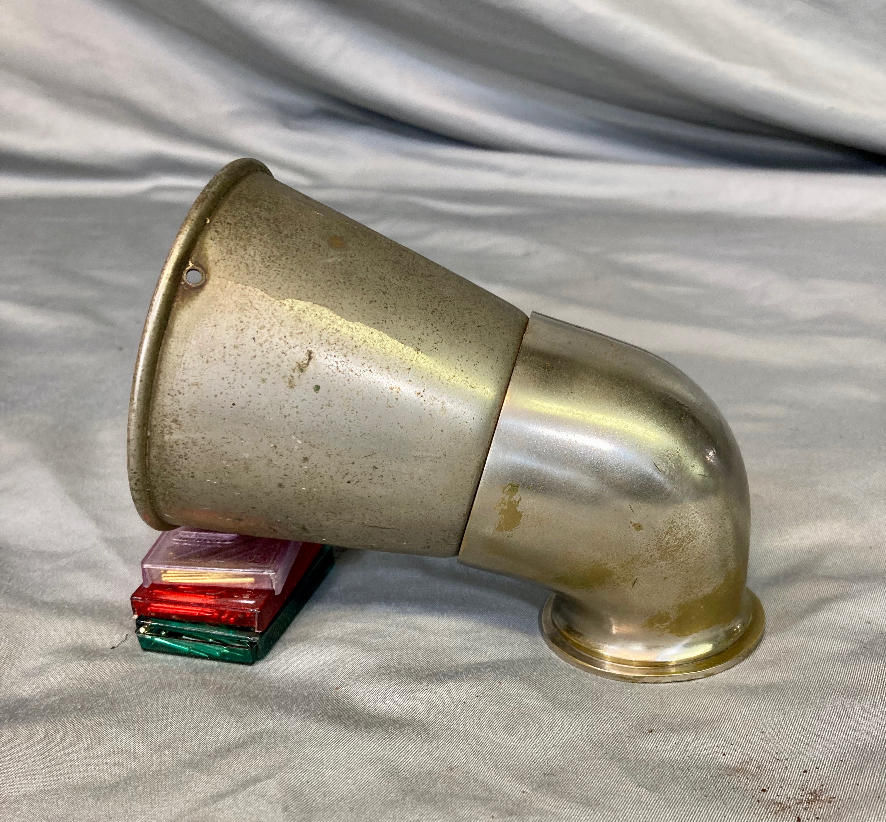 Good condition Columbia elbow with matching horn connector for a wooden horn I believe. The connector has stress cracks, but otherwise still solid and has a 3 inch inner diameter. Shipping is extra and will be from Michigan.