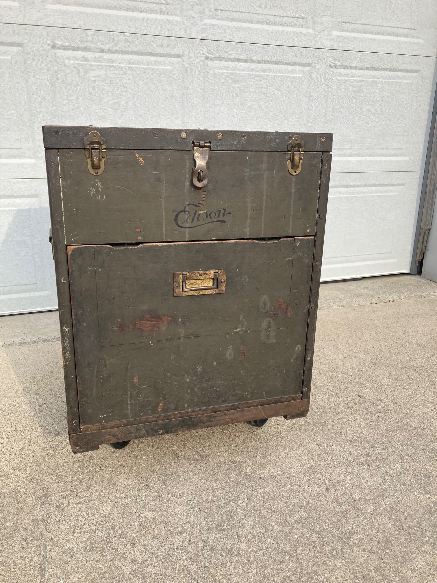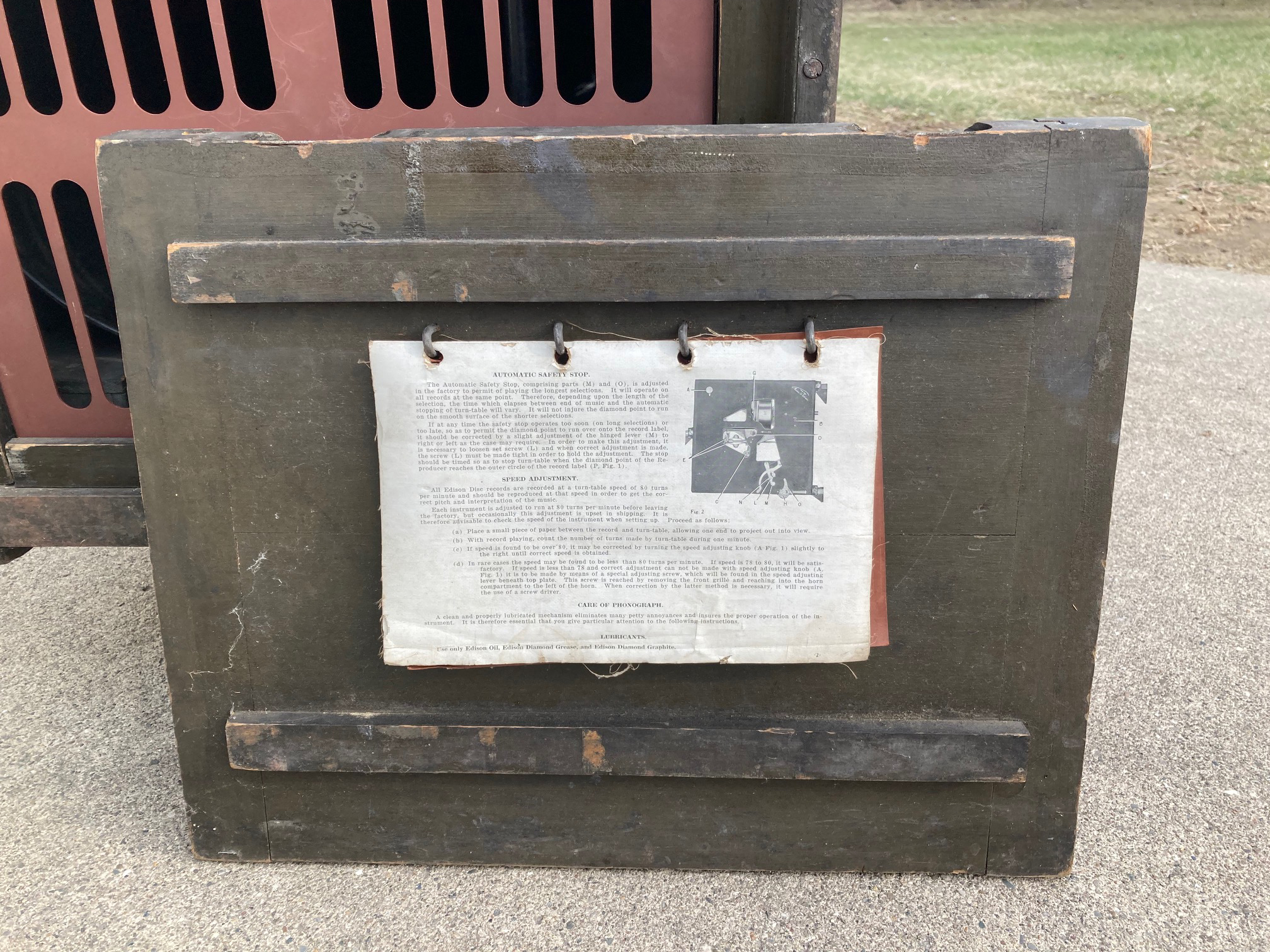 Edison Army/Navy DD phonograph. Runs and plays well. The reproducer has a good diamond and has new gaskets have been installed. The motor is in good running condition, recently cleaned, lubricated and adjusted. The pictures show the condition of the cabinet and, although it shows its age, it is quite solid.