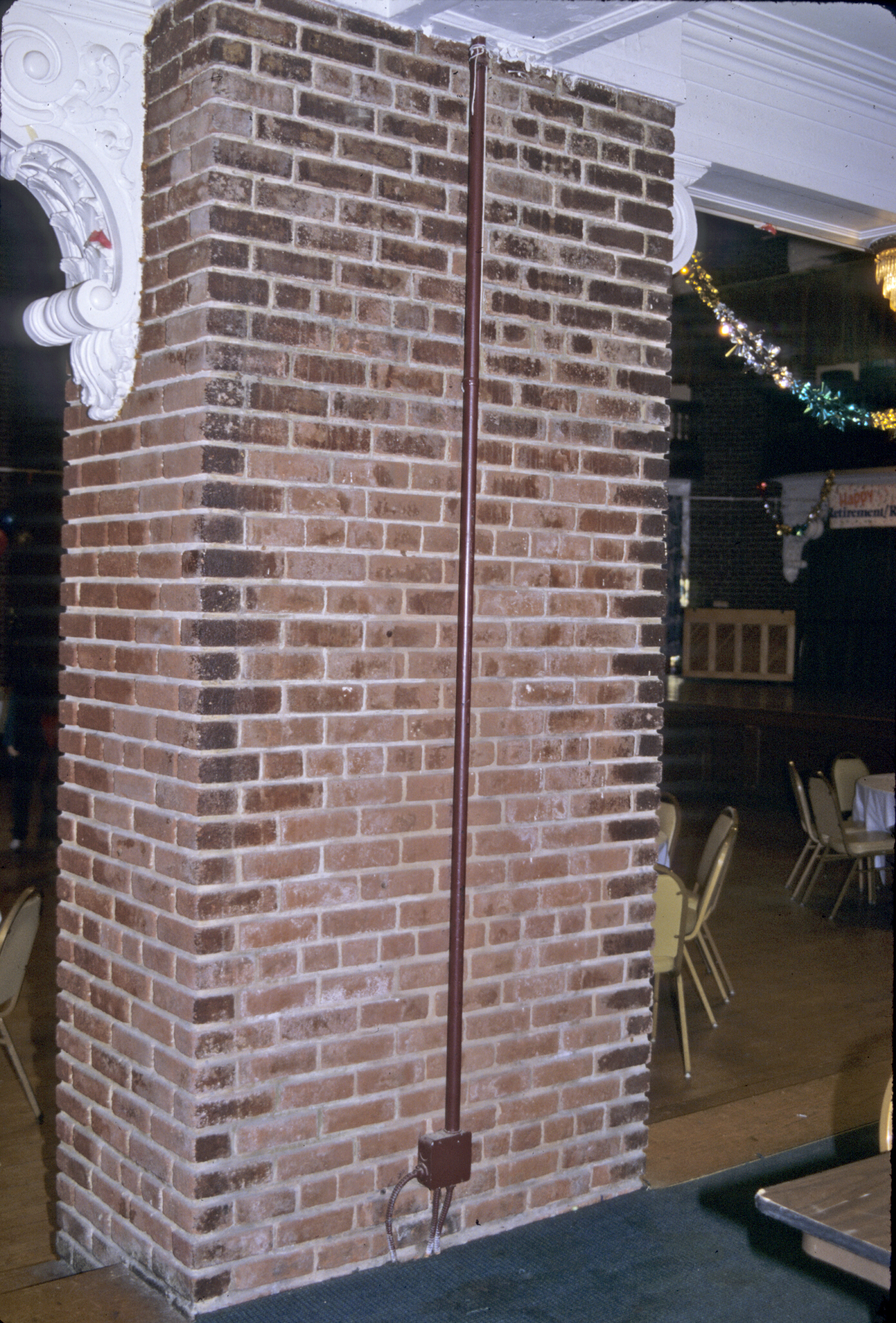 The whereabouts of the console connected to the horn is unknown and likely lost. There were two, the first burned up shortly after installation, it was replaced in 1928. There is evidence of soot from the fire on the brick wall where it once stood.