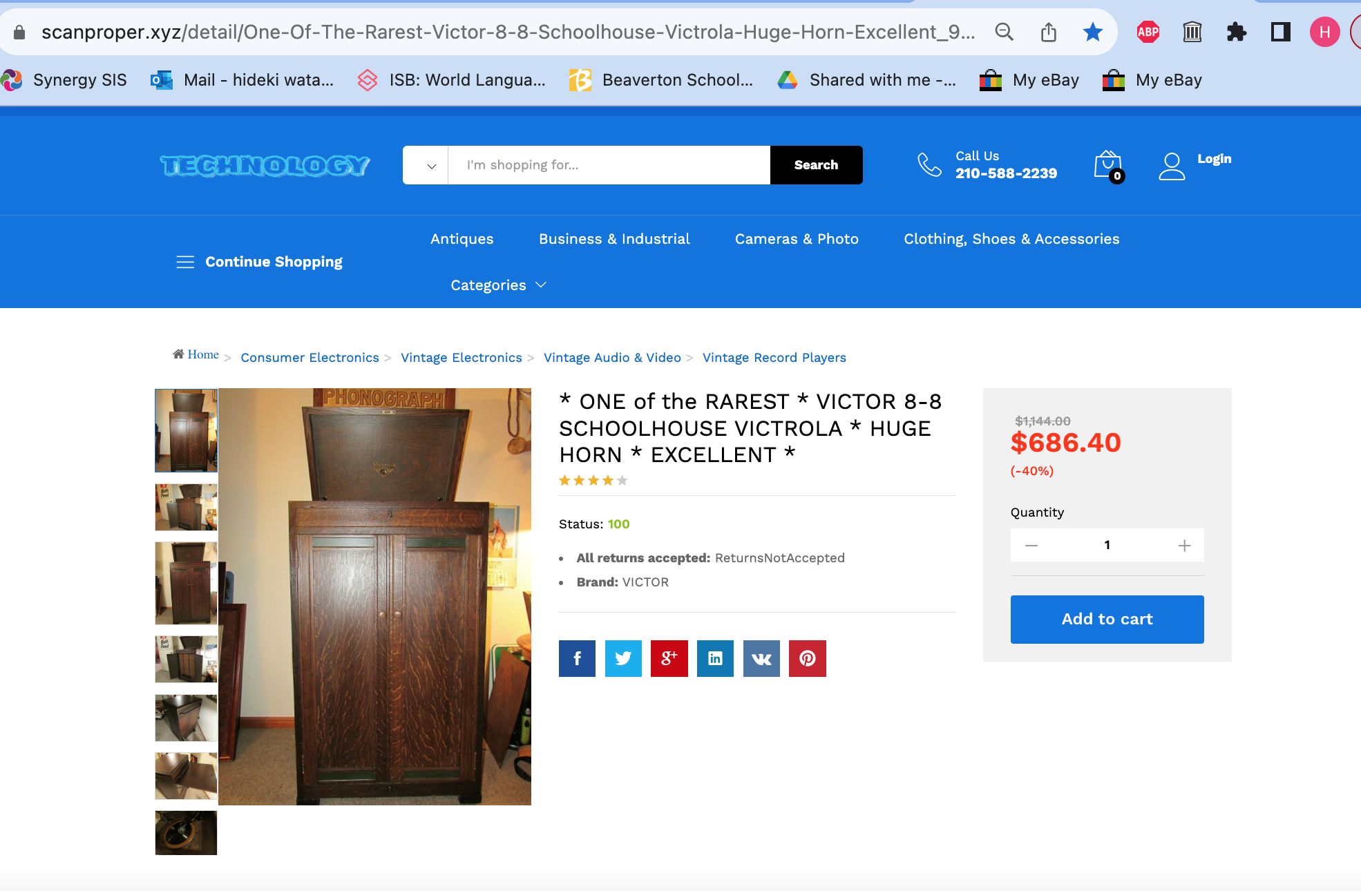 * ONE of the RAREST * VICTOR 8-8 SCHOOLHOUSE VICTROLA * HUGE HORN * EXCELLENT * is on this website:scanproper.xyz, but it has xyz at the end. A lot of website ending with xyz seems scam. What do you think?