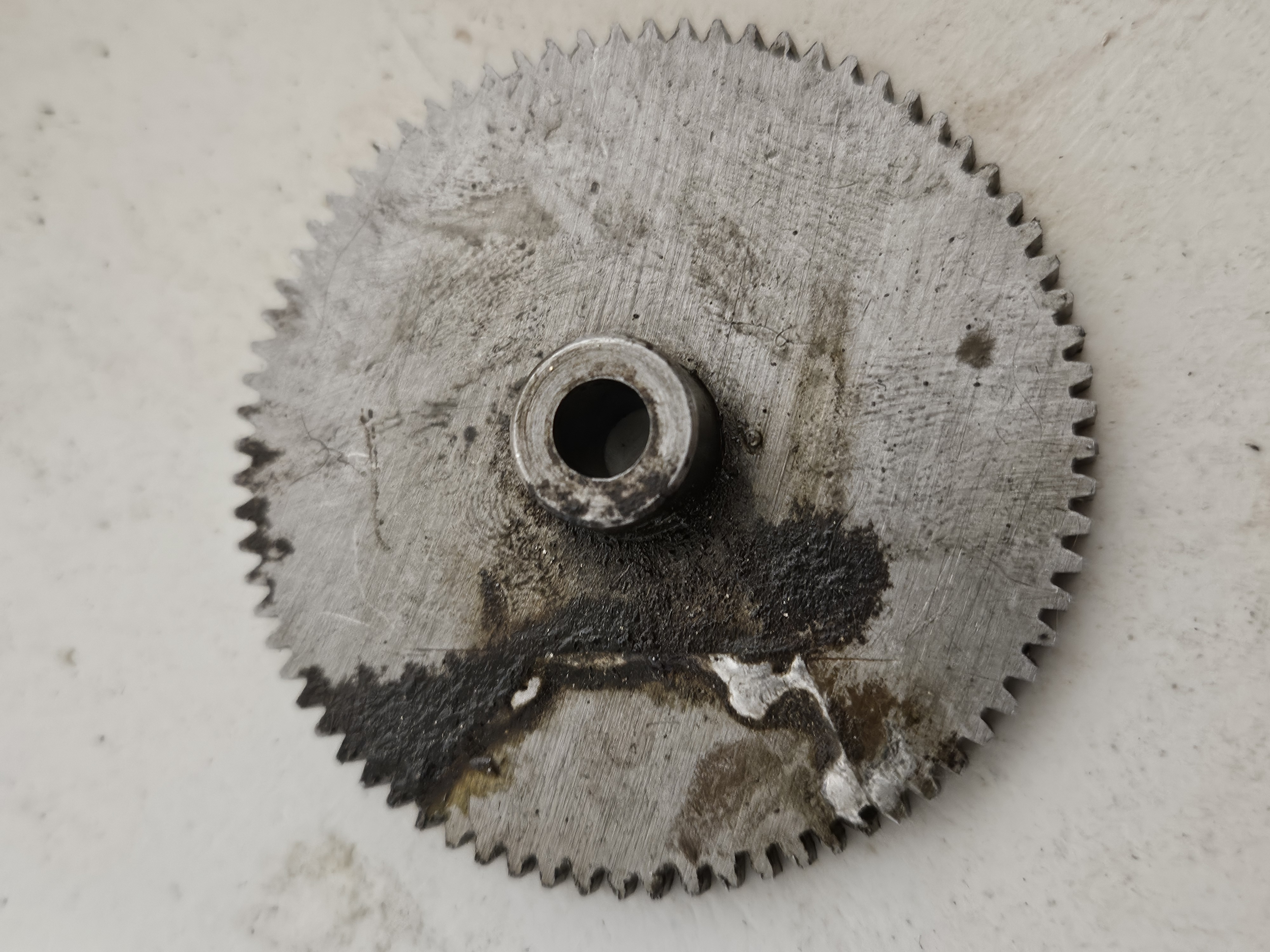 However, when I got home and got it running, there was an unpleasant sound from below. Please see pic for the welded gear, which not only sounded bad, but had destroyed the small gear it meshed with. For a couple of hours, I thought it might become a parts machine, a thought I hated to consider.