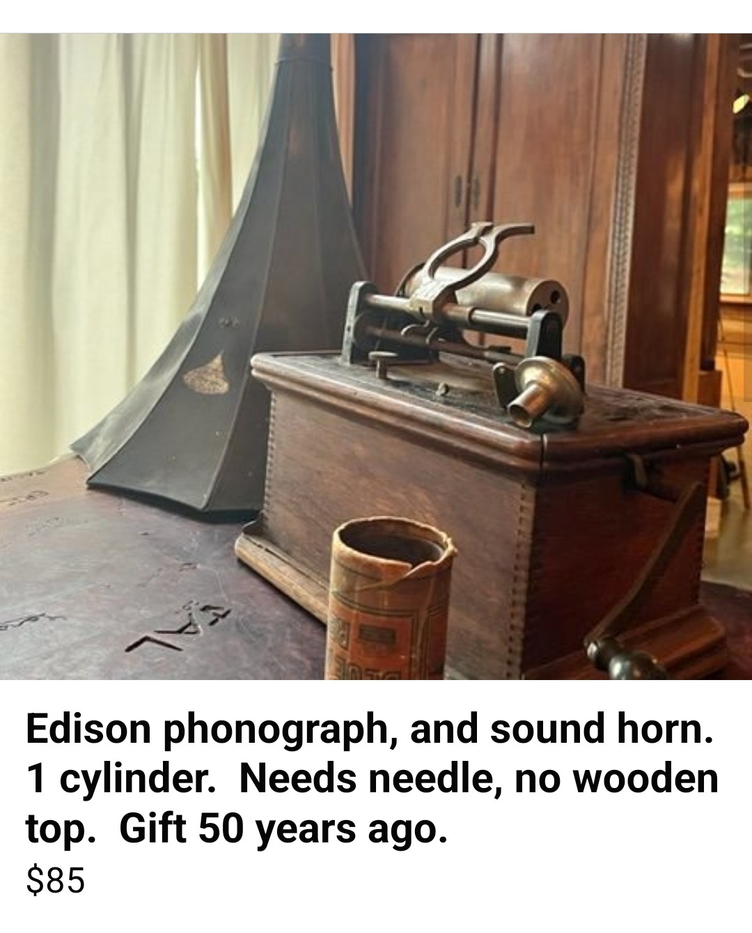 1. What can you tell me about an Edison 1 cylinder phonograph? See photo.