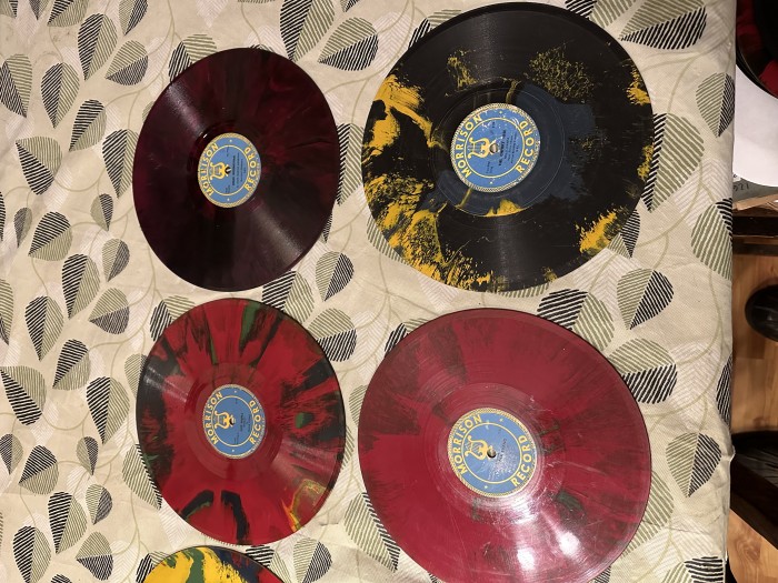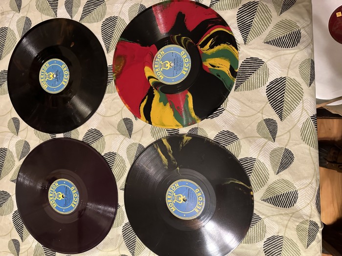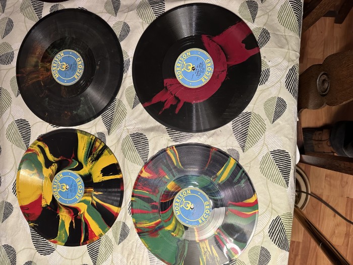 Lot 5: YUGE lot of 32 "Morrison" splatter vinyl records! West cost postwar pressings- you won't buy them to listen to- you'll buy them for display! $525.00 NEW PRICE $420 SOLD!