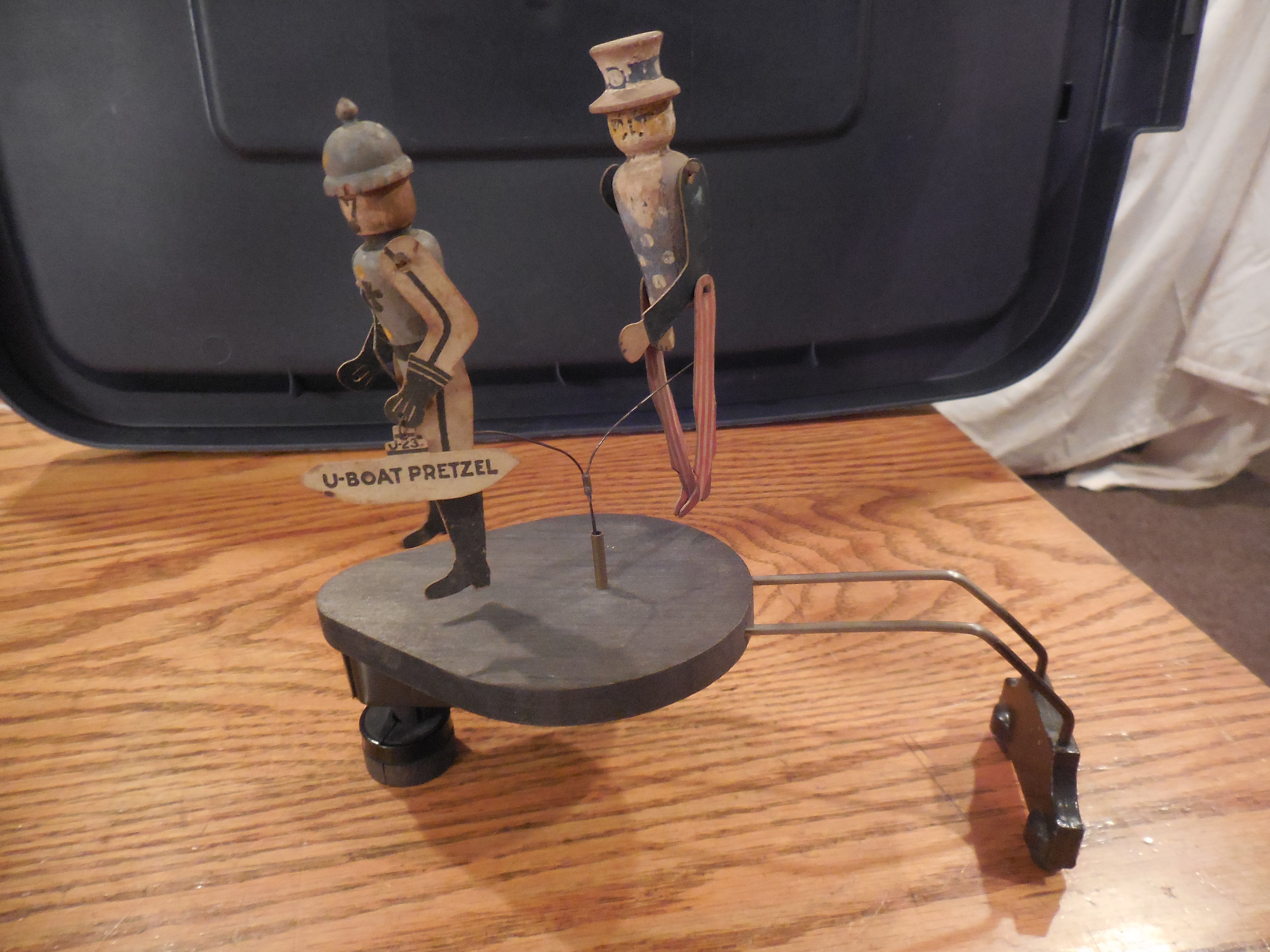 Here is an original Uncle Sam Kicking the Kaiser toy.. Poor old Kaiser Bill got his xxx kicked. This is one of the harder to find dancing toys. Guaranteed original.