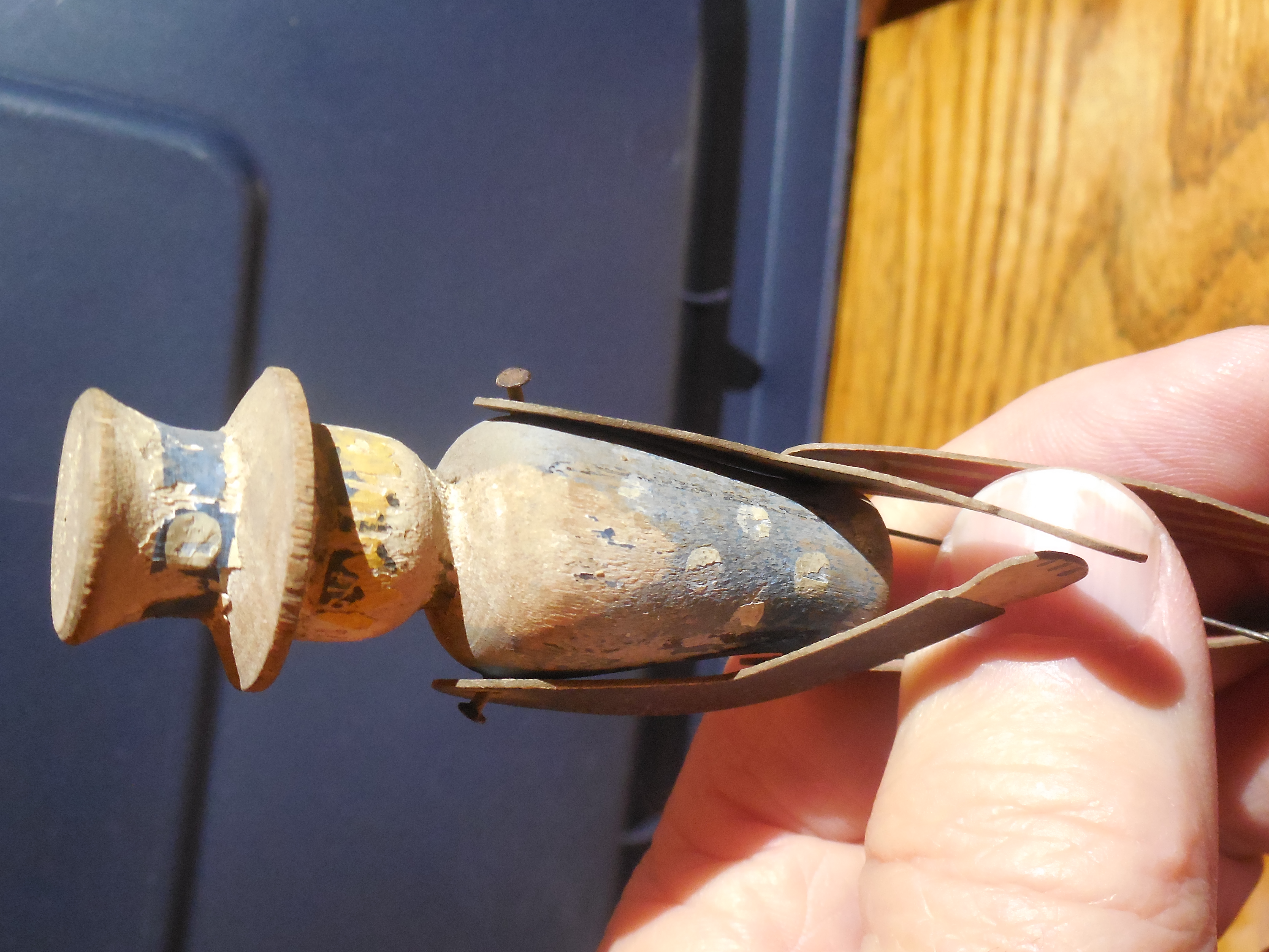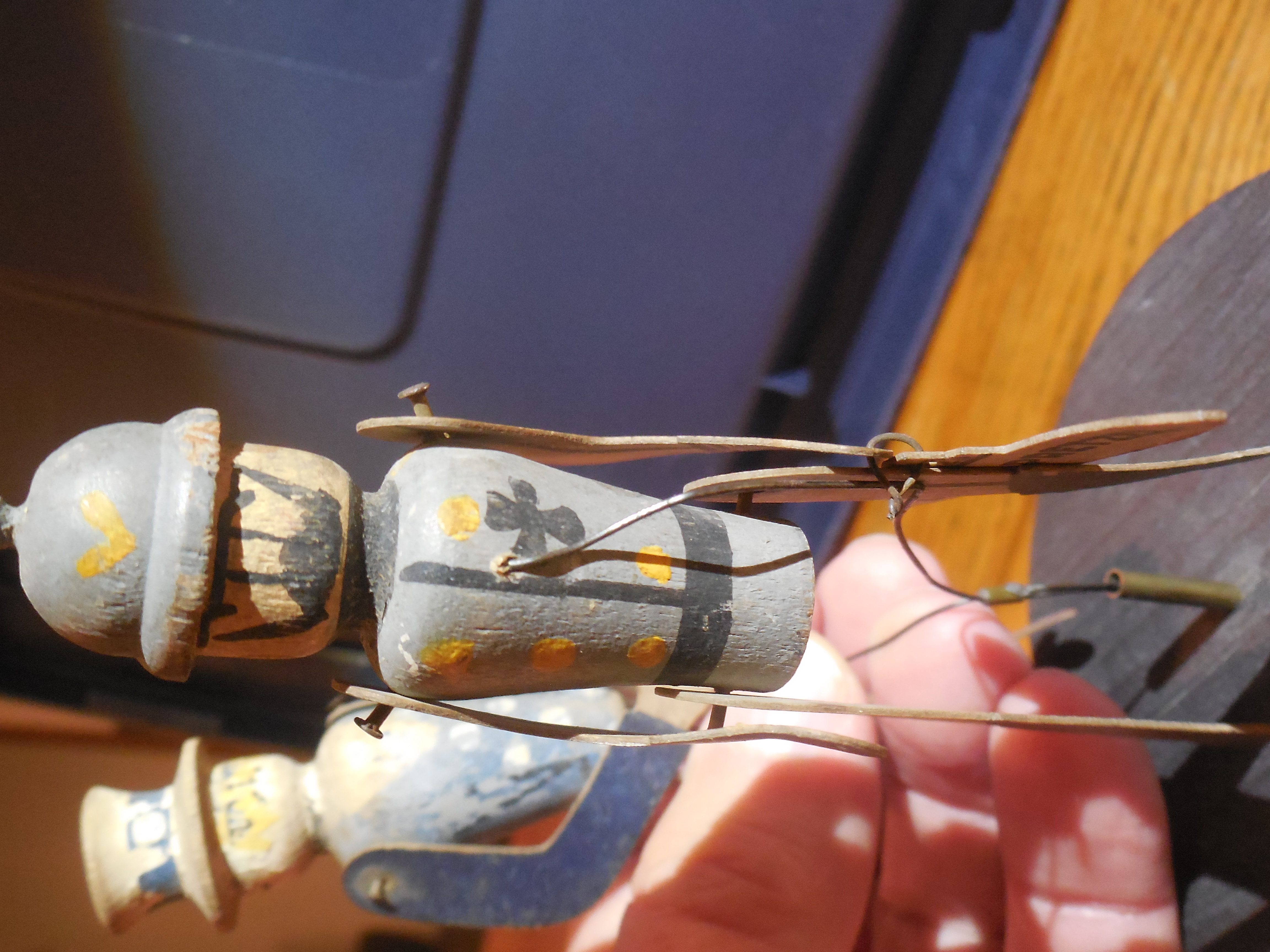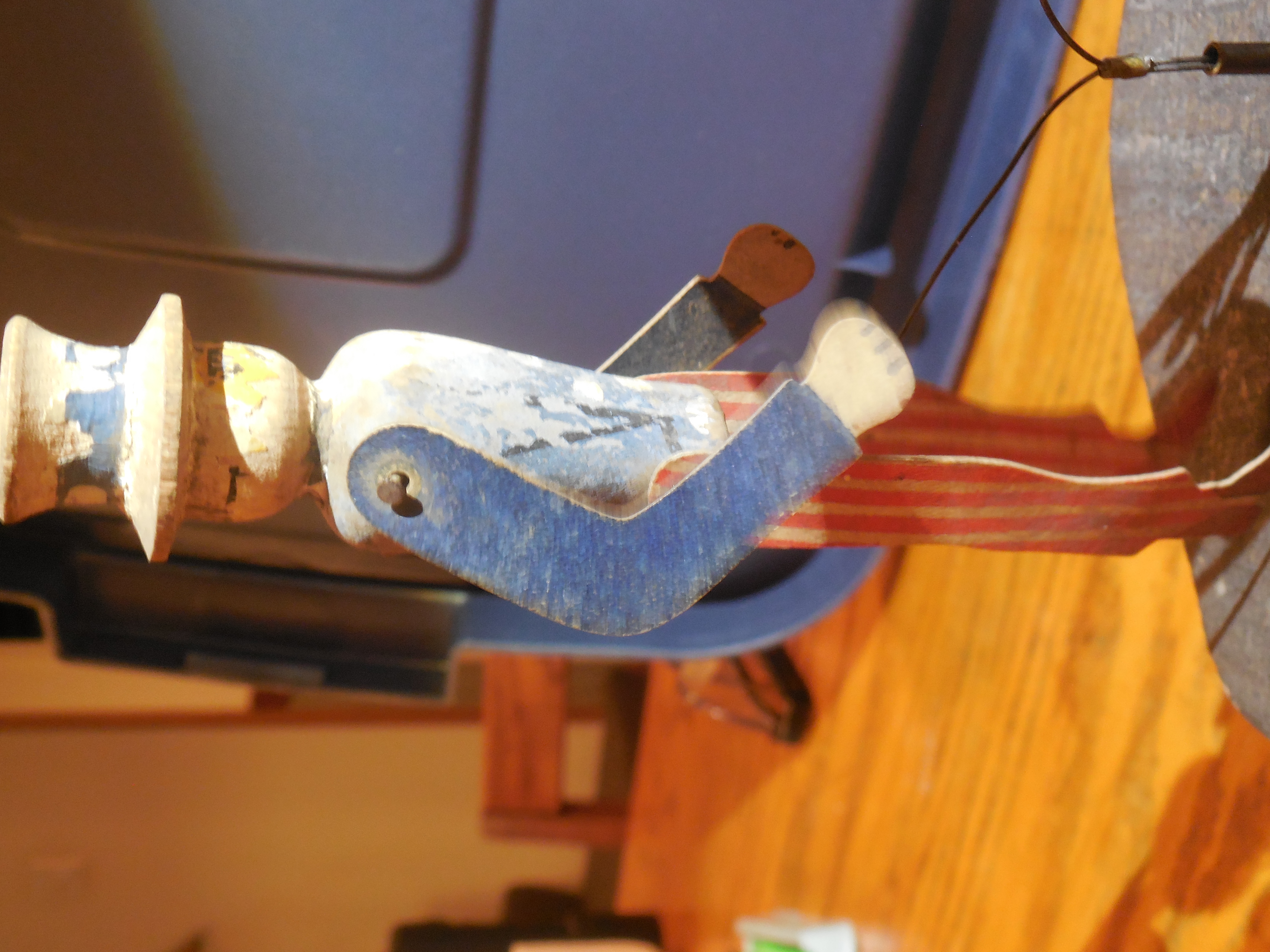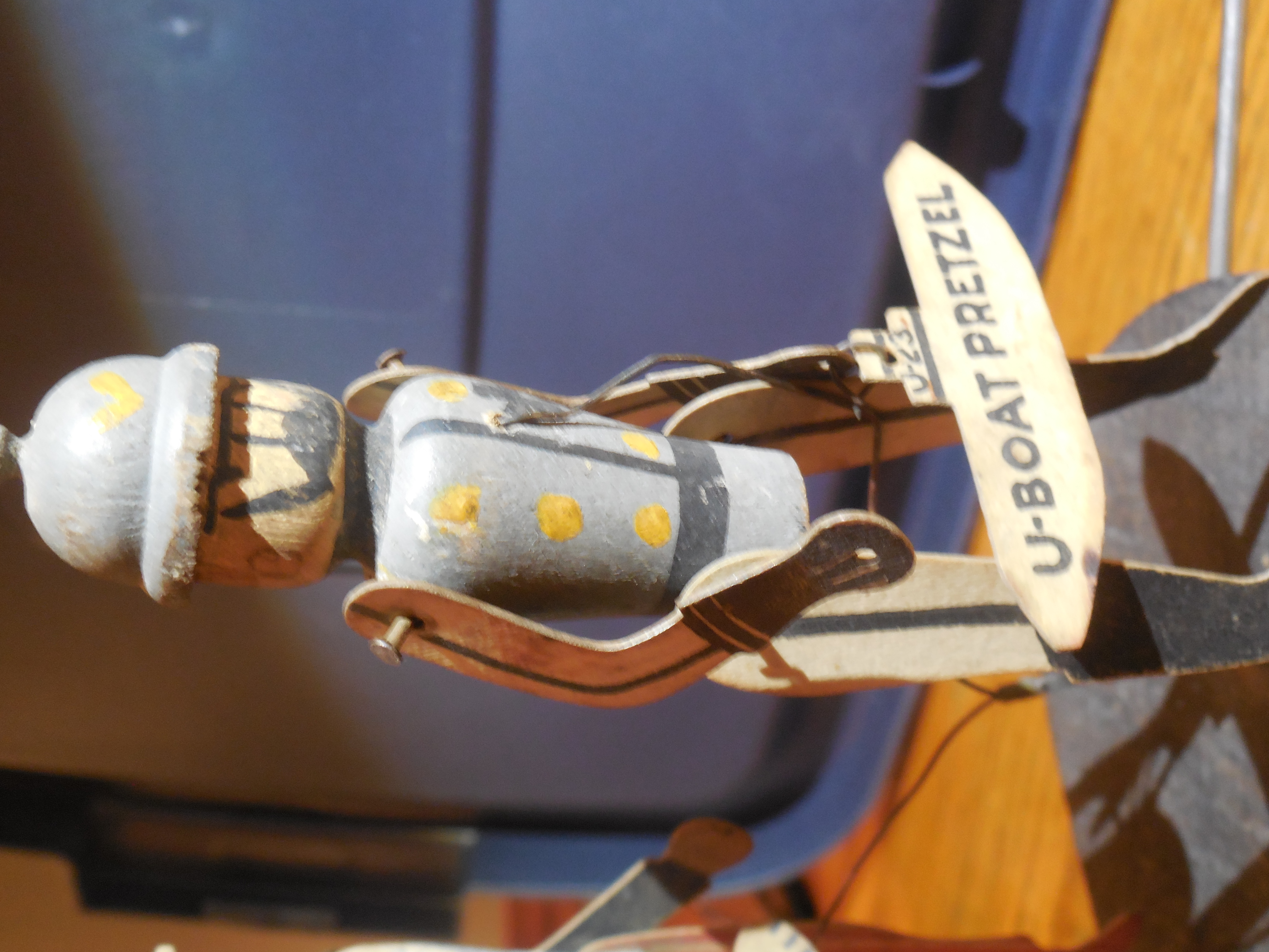 Overall in fairly nice condition.. Actually Kaiser Bill looks a bit better than Uncle Sam-- Uncle Sam has a small staple in his back holding the support wire-- should be an easy fix. I just never bothered. Also, he has a chip missing from the brim of his hat in the back.