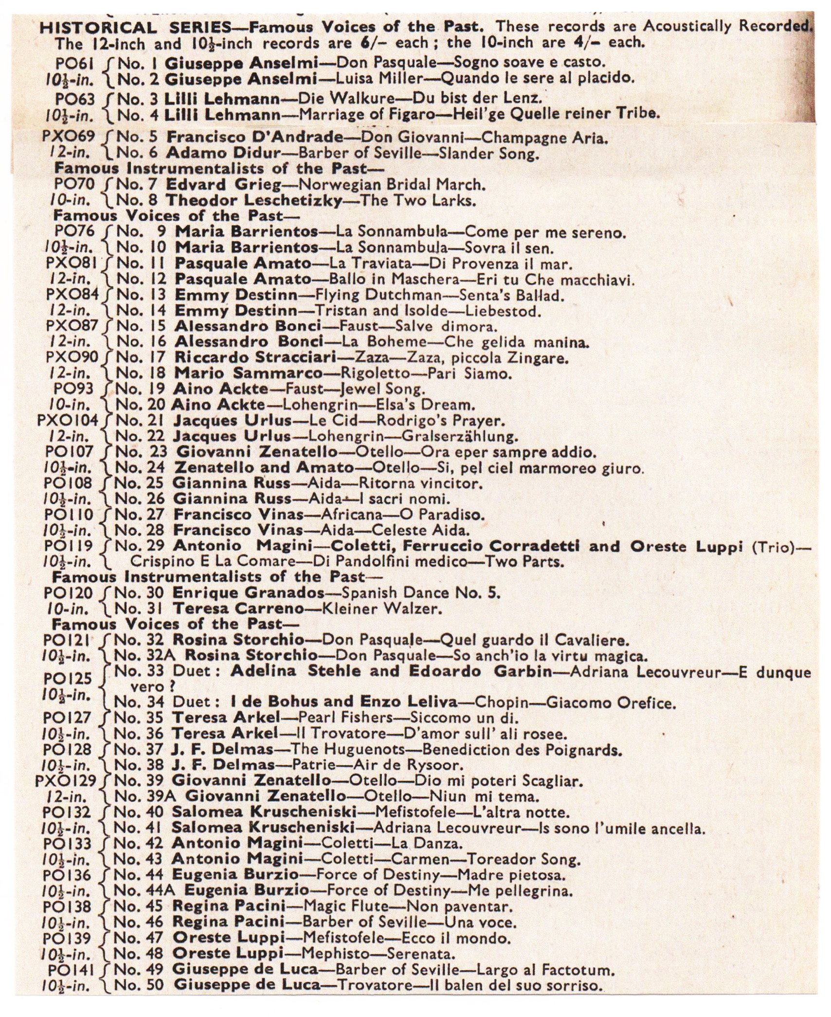 Most collectors of vocal art will be familiar with the HMV No.2 Catalogue of historic recordings, and the post war VA and VB reissues.