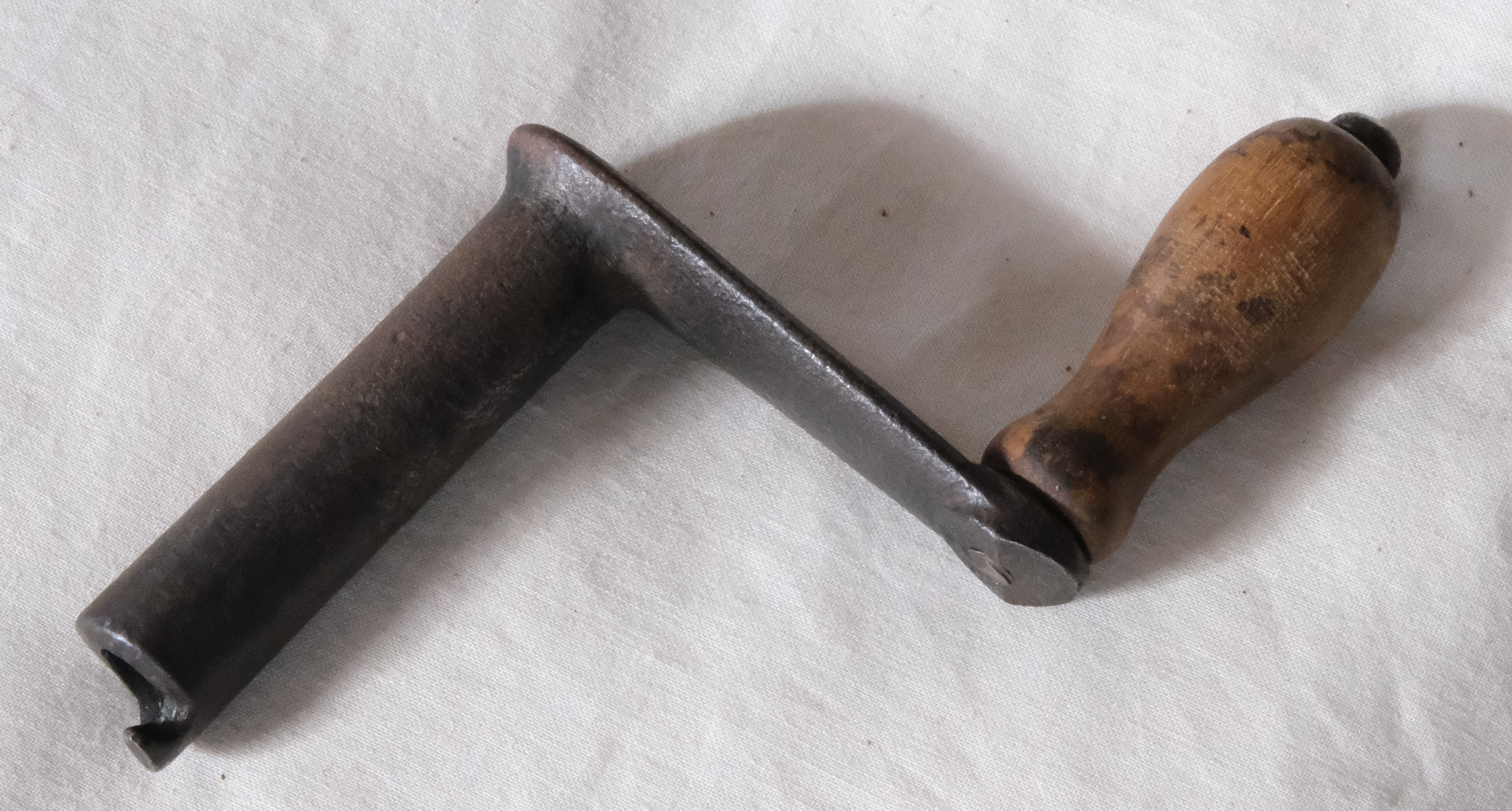 A really hard to find crank. Probably because they were made to “fall off,” these are most often missing when machines are found. This is a Busy Bee crank for the James O’Neill Chicago disc phonograph. It may be correct for other models as well.