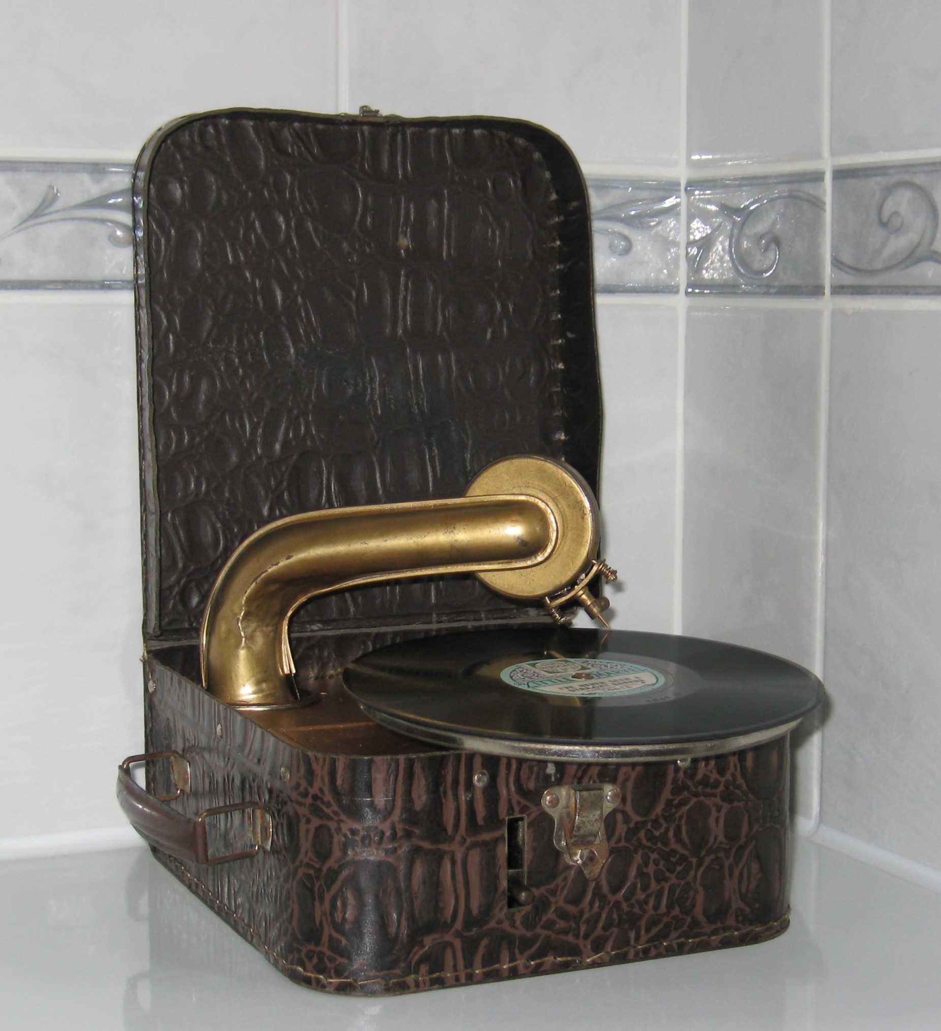 Of course the photographs on this thread have disappeared, but earlier today I saw this on ebay and wondered if it is the same as your wife's toy gramophone (if she still has it) ?