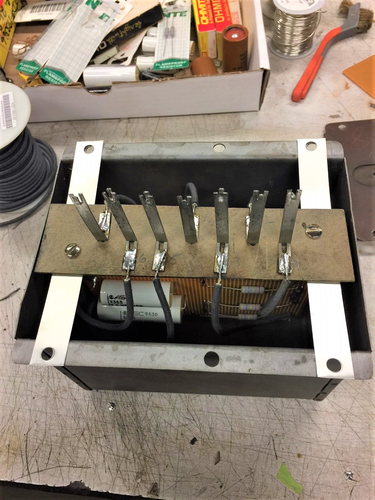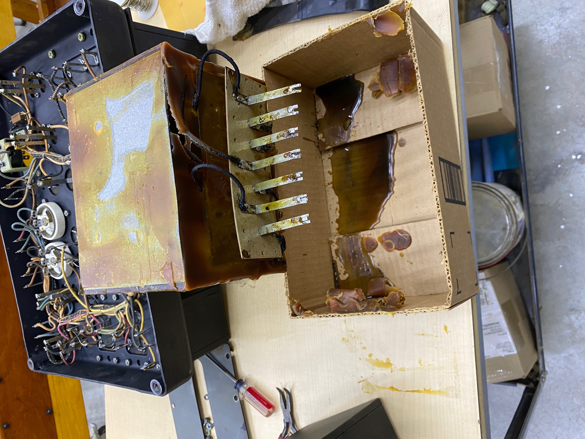 Photos of my Capacitor restoration..... doing it the neat way. Note: the capacitors are in wax not tar as someone else inferred. Much easier to melt out.