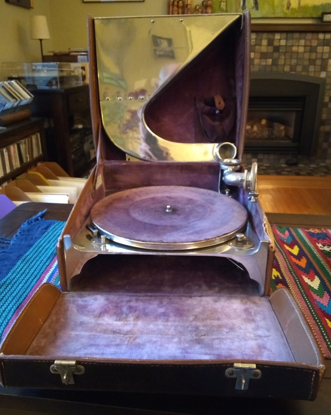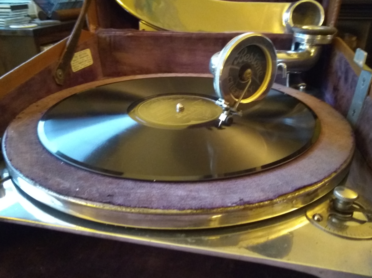 The machine also sounds quite good with the lid open with only the tone arm as a horn. It is surprisingly loud but not as loud as with the horn.