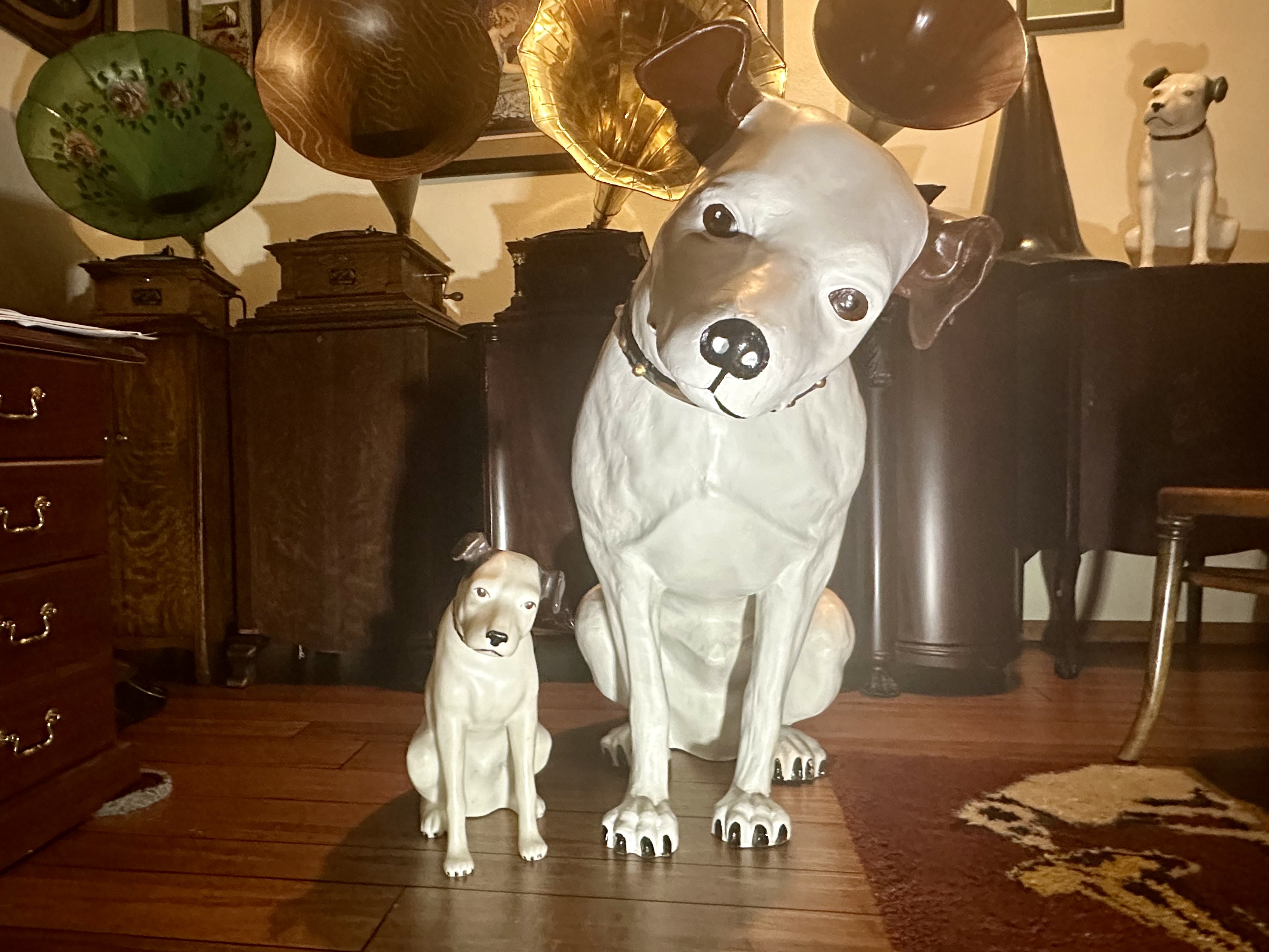 I know this is a long shot... . I'd like to give my Nipper his voice back and wondering if anyone has a copy or knows of digital recording of the "Talking Nipper Demonstration record" (BS 027168) they would be willing to share or sell me? I know the record itself is scarcer and nearly as, if not more, valuable than the 40" Nipper! This is the one on page 3-29 of the Rolfs' Nipper Collectible book Vol I. It would be fun to set this up using a modern motion detection system and hear him speak again after 75+ years.