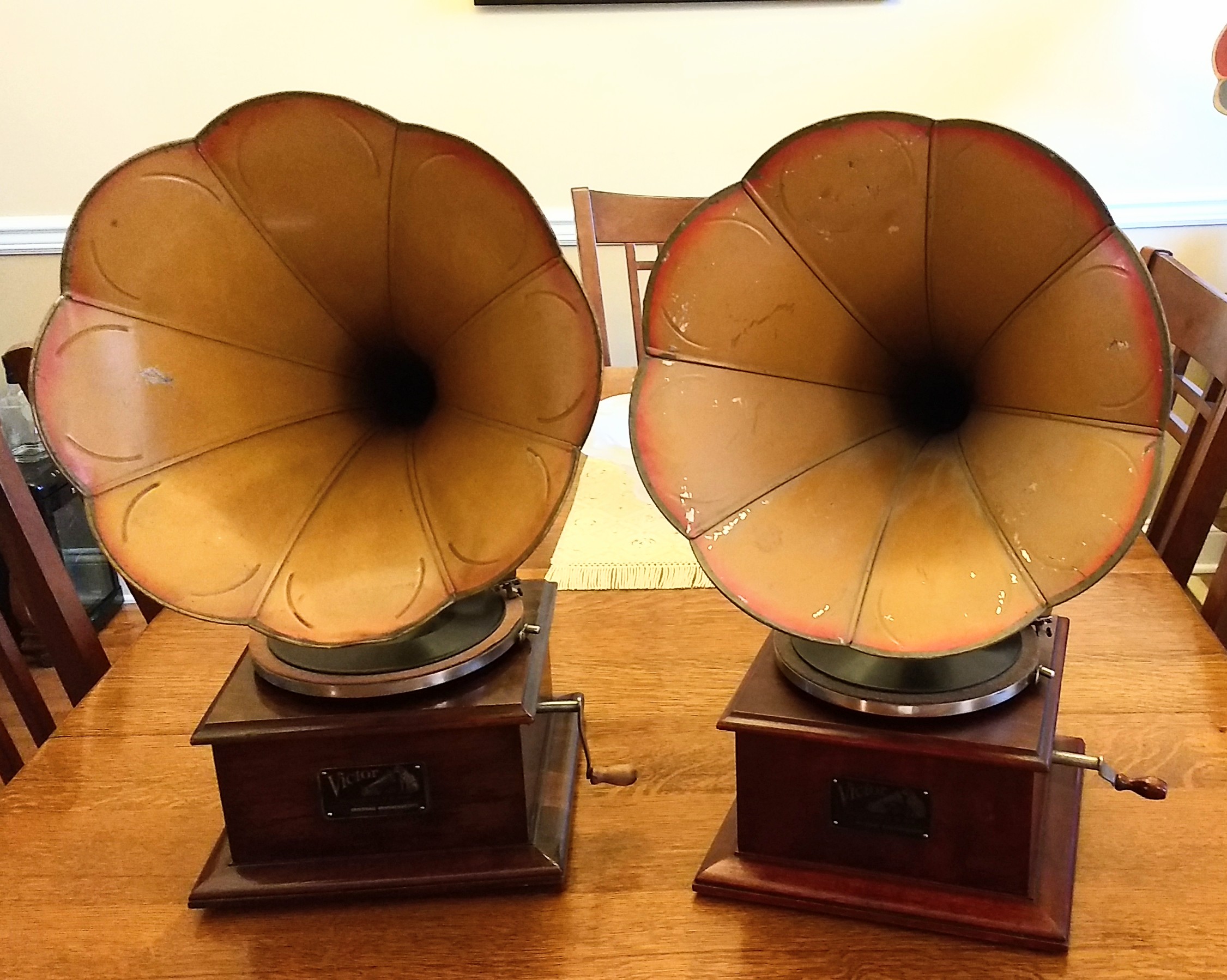 I've always like the Victor O. I picked up what I considered a project O and posted photos. Most of the replies suggested I leave it alone with comments like..."it's only original once", and others saying to leave it alone because the horn paint and cabinet finish was part of its history. It wasn't long before I thought I'd give it some more, hopefully good, history. You see the results. My horn color misses the mark but looks nice. I also regret the choice of turntable felt but it looks good and would be easy to change.