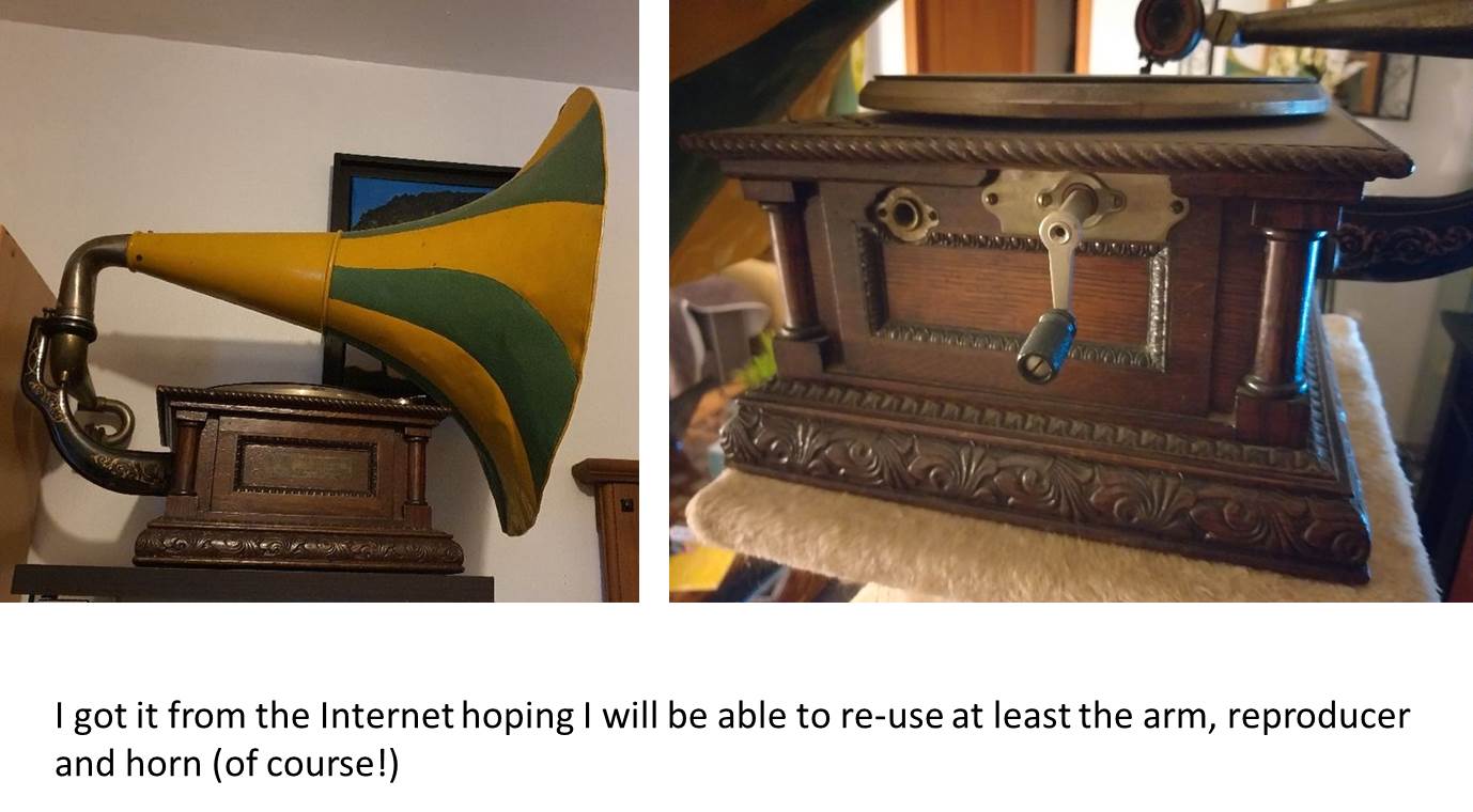You need to strip that paint off the horn and see if you can mould the scalloped shape back. Pathé horns normally screw into the elbow.