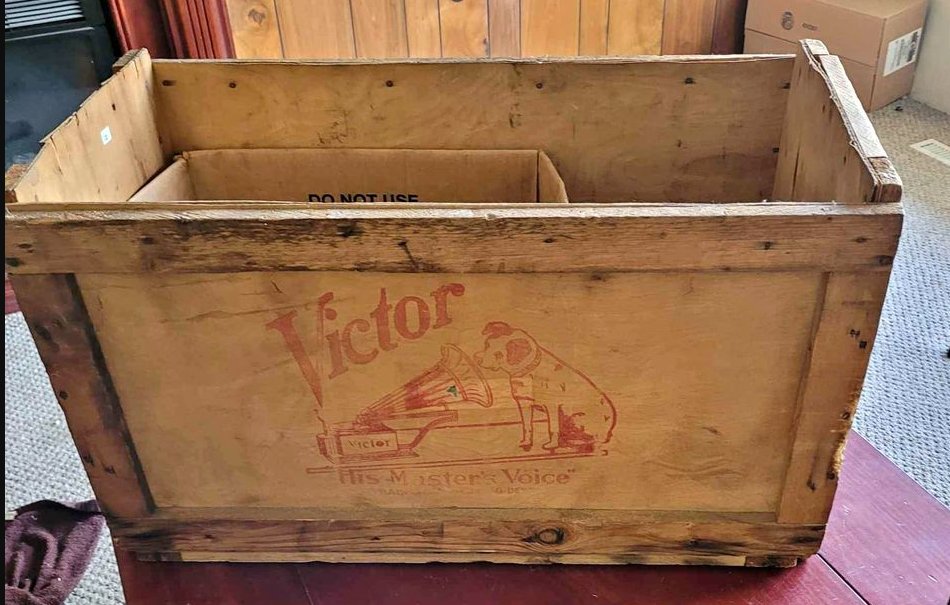 An old wooden Victor Nipper stencilled crate for the Victor/Nipper collector who has everything, I suppose.