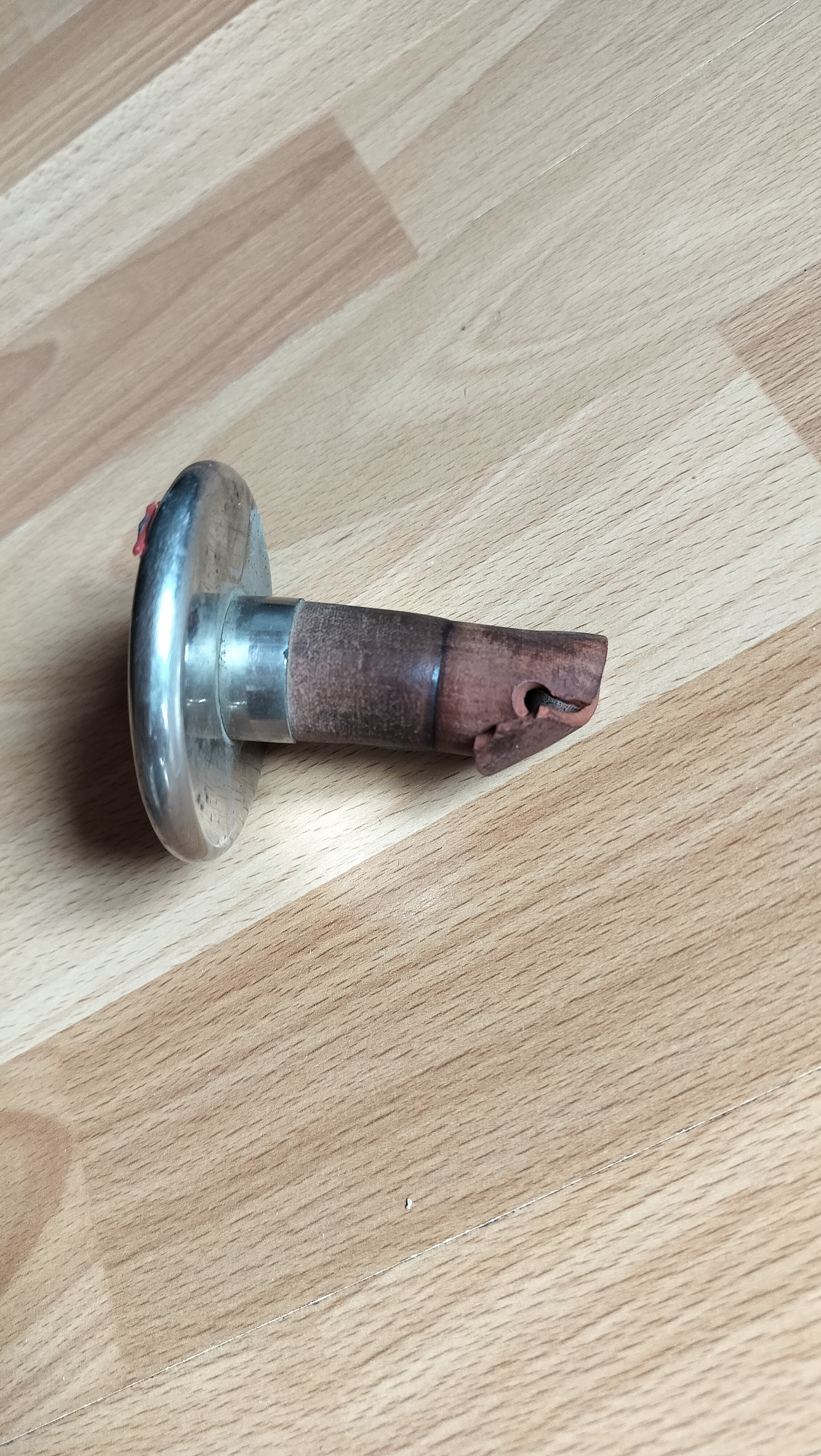 3 the horn is made of tin. The paint is flaking. I either want to preserve it as it is now but in that case it will need some kind of fixating varnish or so because now it is impossible to keep clean. I could try to strip and repaint it but that would be quite a task.