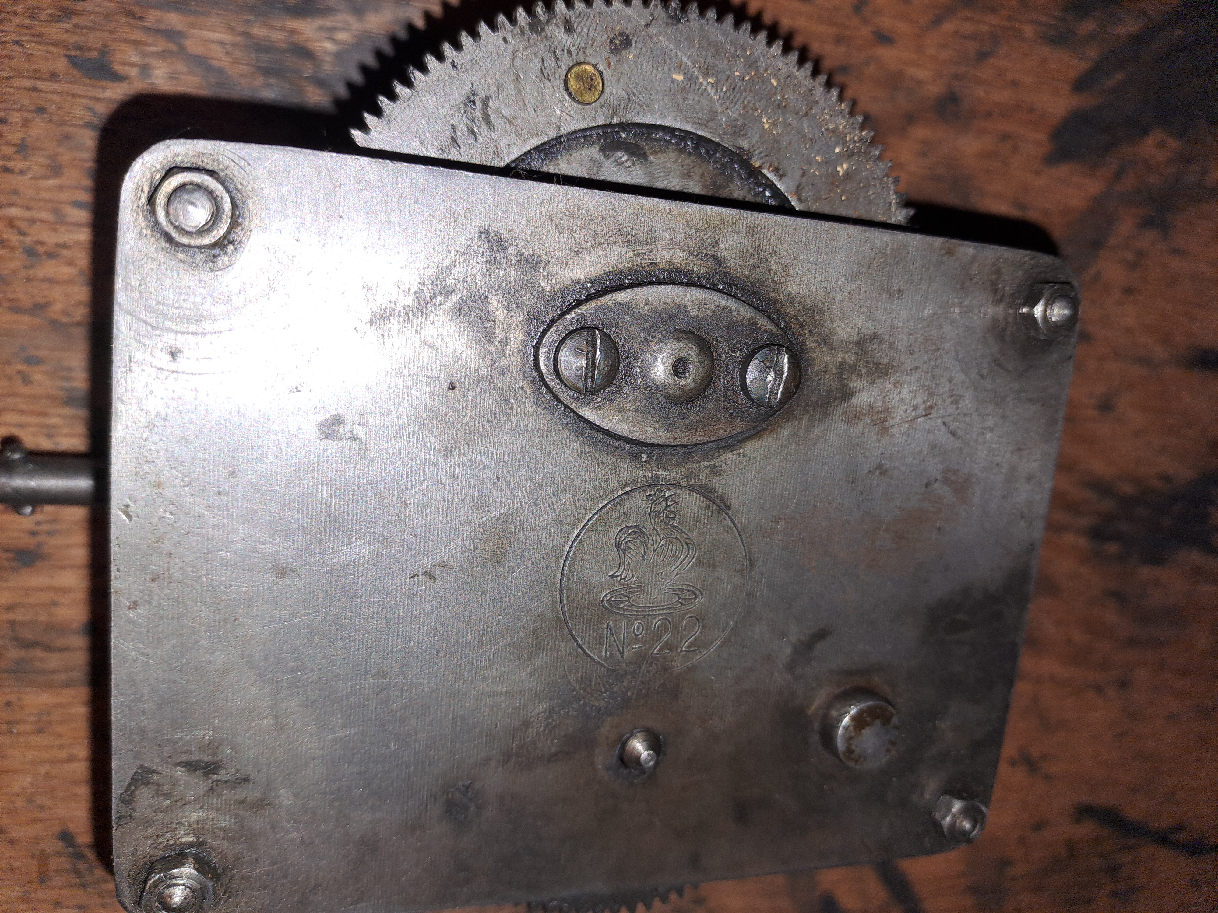 Steve was right. Inside the machine there is only the mechanism nothing else. On the mechanism we can see the pathélogo and the number 22