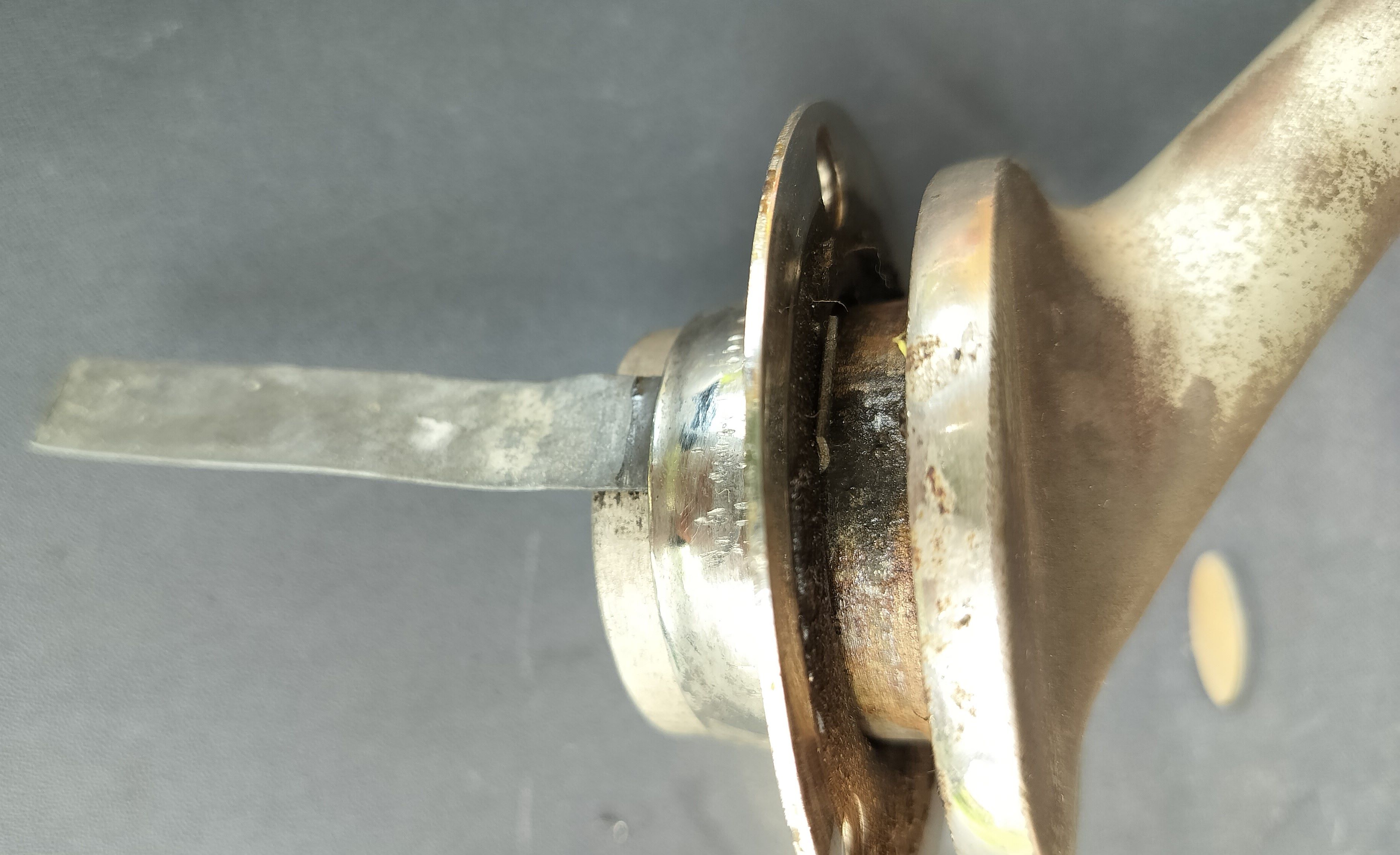 I've started cleaning and when removing the hornsupport I found that there was some metal wedged between the support foot and an additional support ring apparently to keep de horn support from moving around.