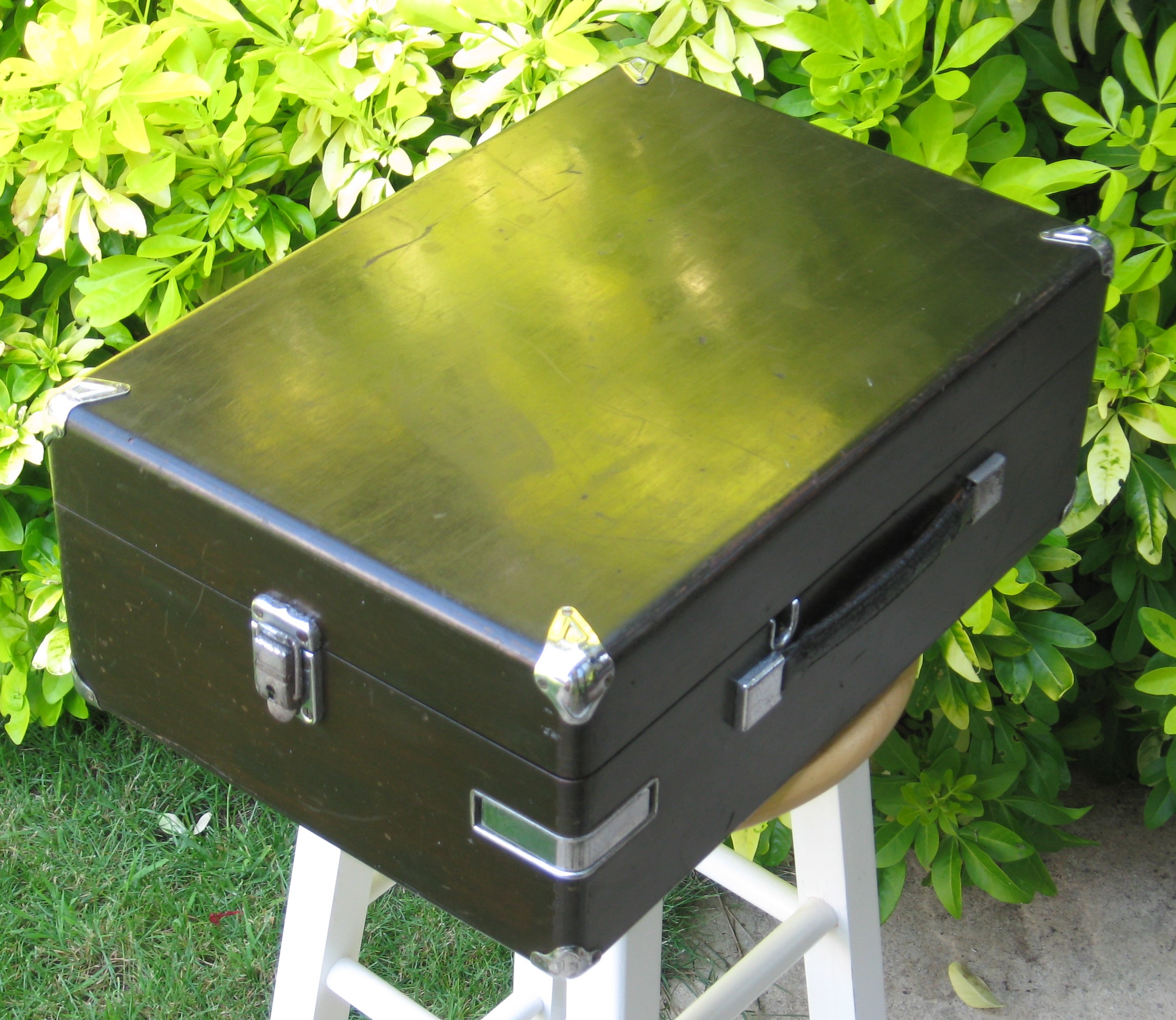 HMV portables were made in their Calcutta factory. The mechanical components were sent out from Hayes and assembled into locally made hardwood cases. These were more resistant to damage from termites, which were partial to the animal glue in plywood.