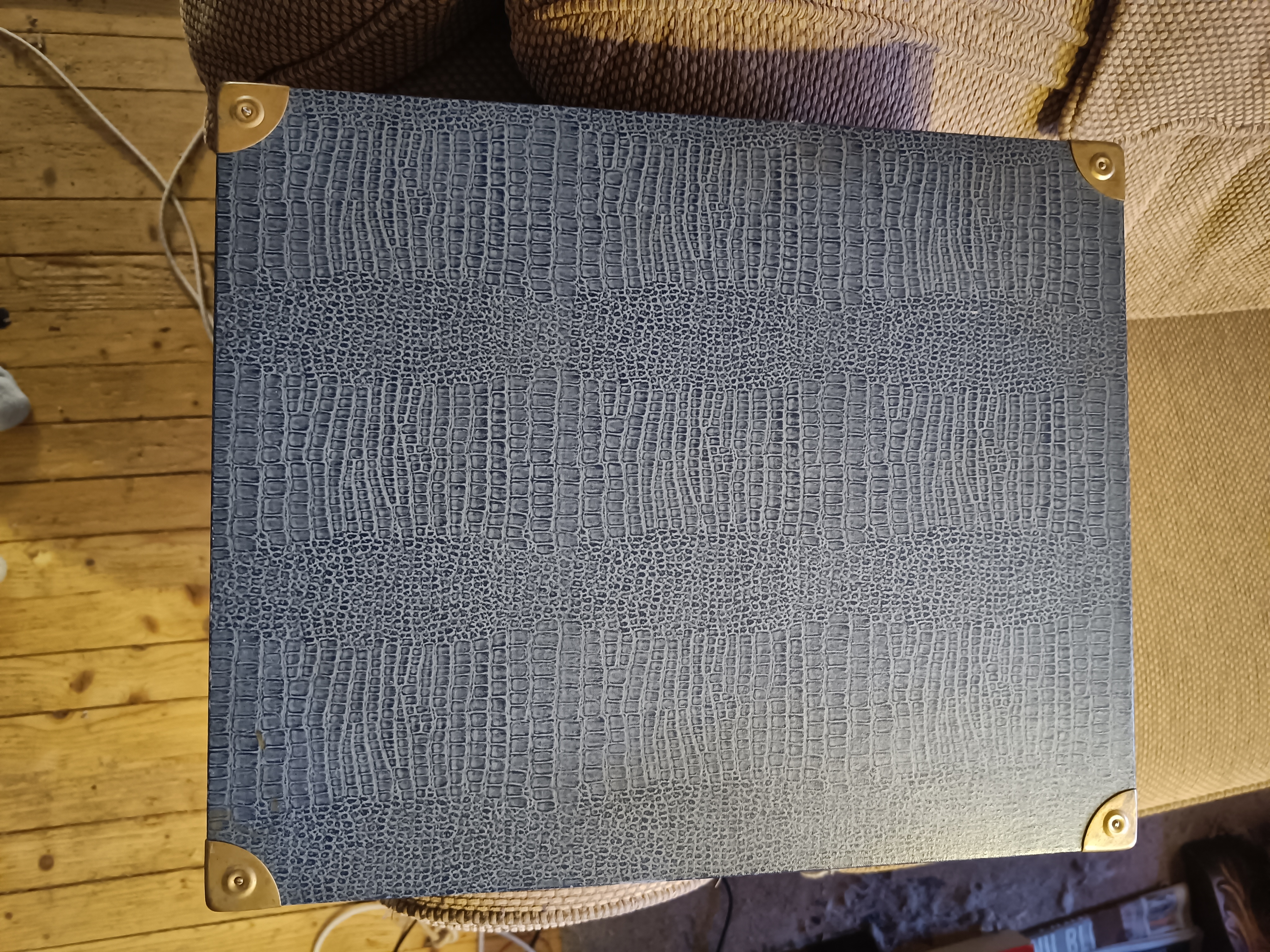 But then...I had a closer look at it, and my eye fell on the "camel skin", the gilted corners and sound box, and I realized this probably was a de luxe version, also taking into consideration the blue cover.