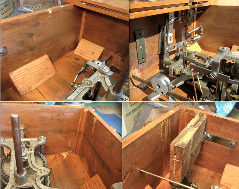 This first video shows how the motor operates. You will see the coin fall into the cup, its weight sets the motor in action, then the coin is drops from the cup into the locked drawer. The other moving parts work to lower the needle onto the record and finally the needle is returned via a spring to the starting position, locking the tonearm until another coin is inserted.
