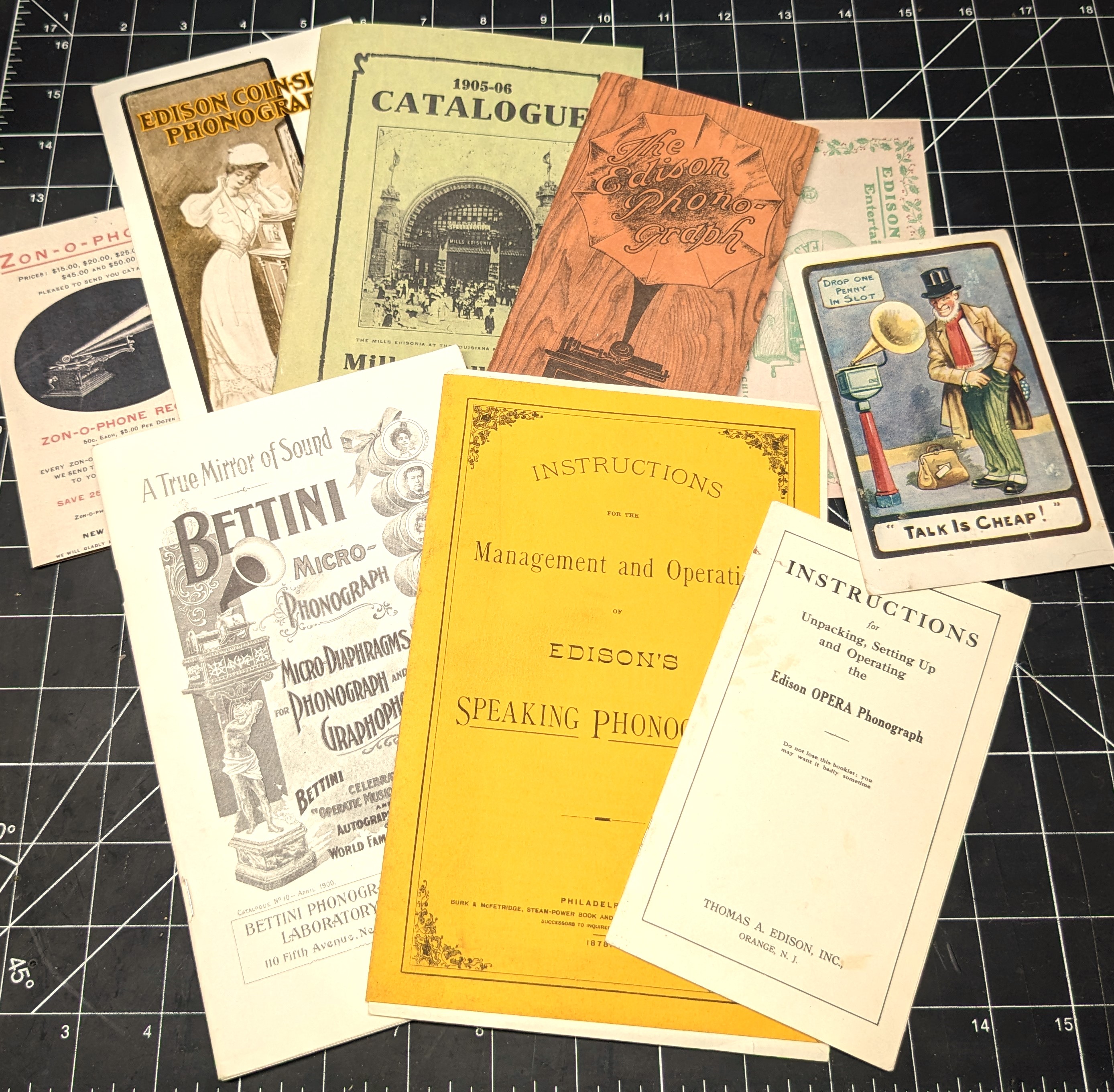 Here is a great set of catalogs/paper. Most are high-quality reprints. There is at least one original item in there!! What a treasure trove of information. Great Edison, Bettini, Tinfoil, Coin-op, etc. Just think what you could see and learn!!! At a little over $2.00 each - what a bargain!!!