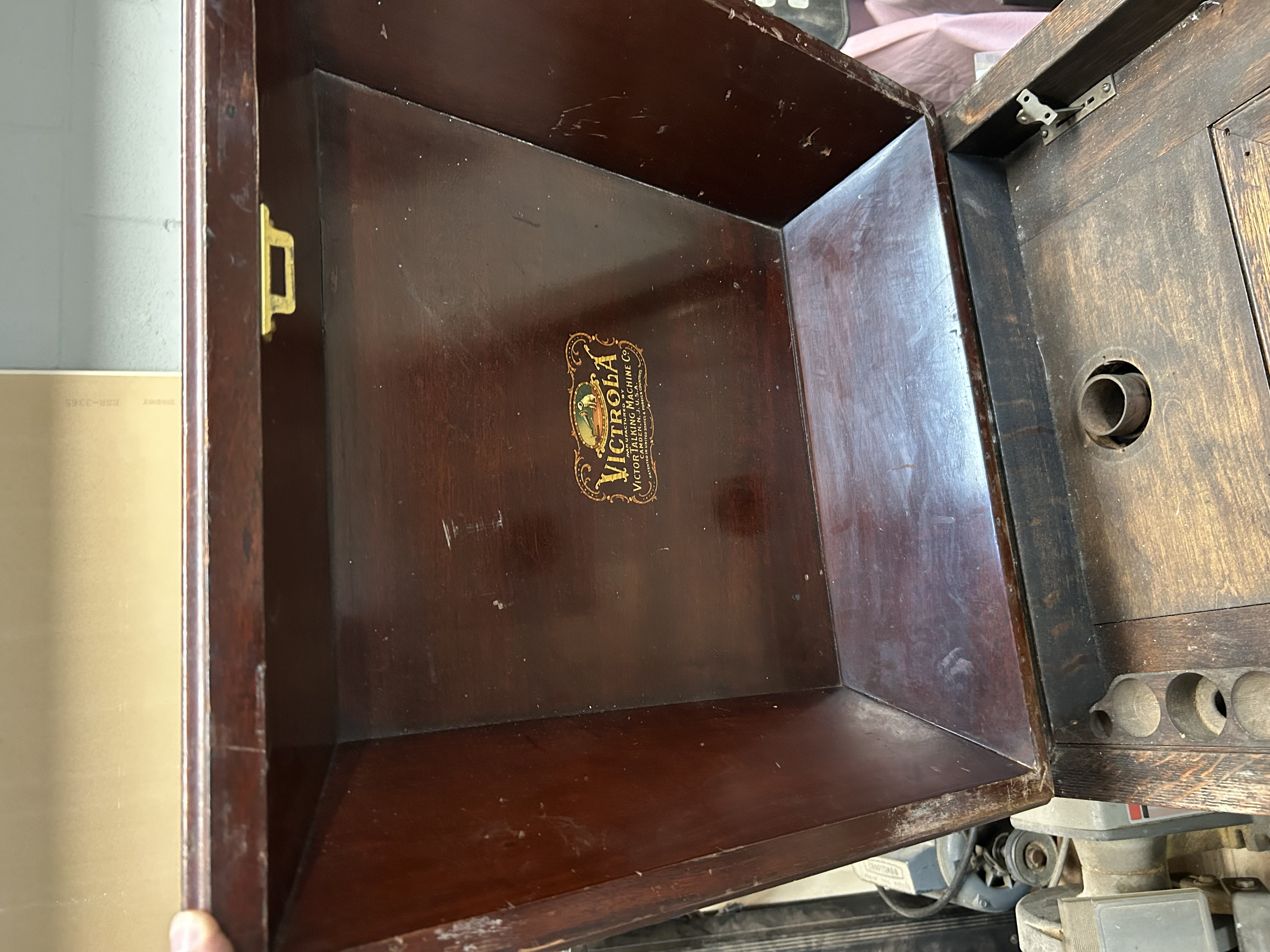 I have an empty oak cabinet for an early Victor XIV. The cabinet is nearly complete minus the hardware, but has an incorrect mahogany lid that was with it when I got it.