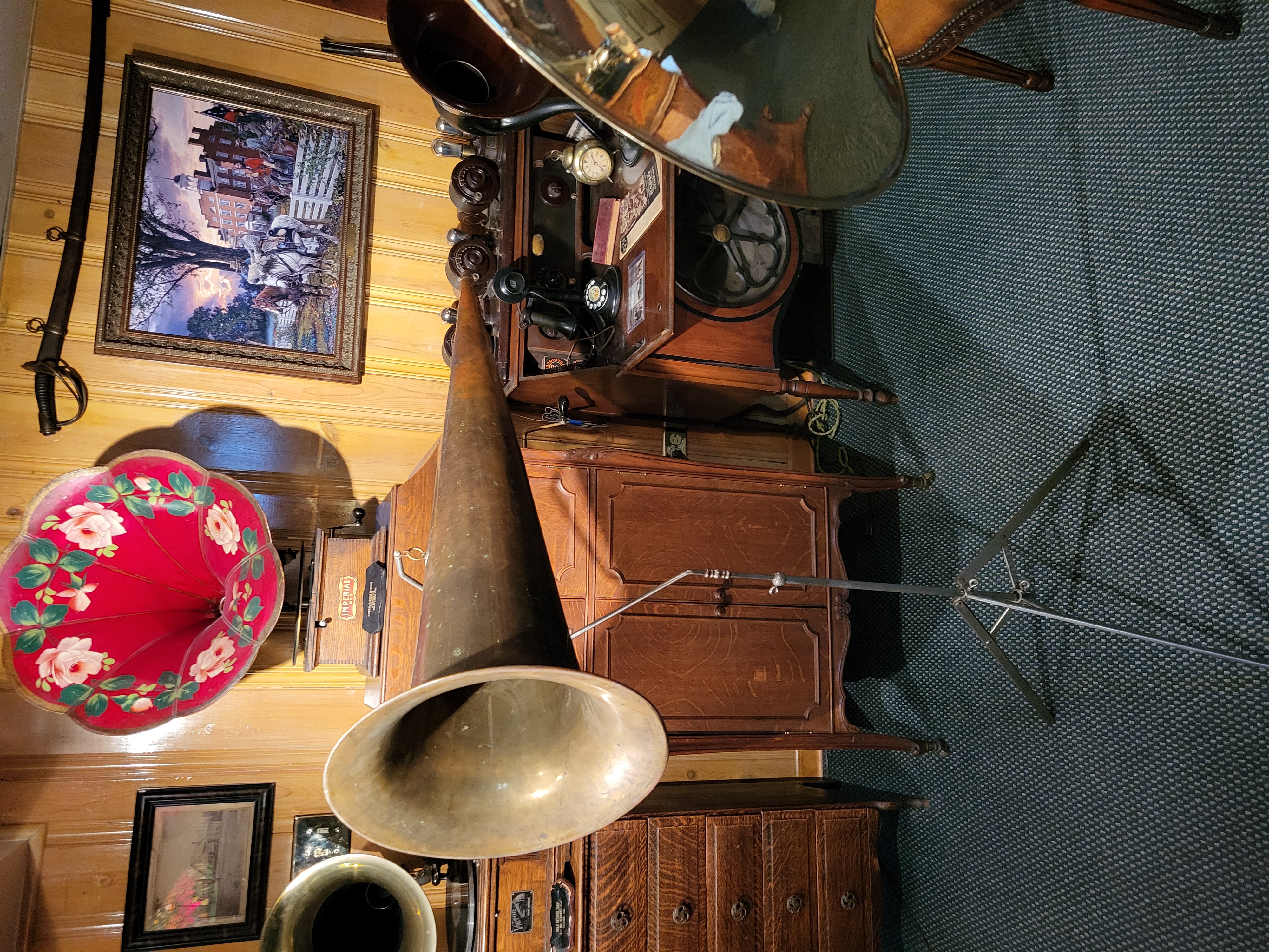 FOR SALE : PICK UP OR DELIVERY TO THE CHICAGO PHONOGRAPH SHOW IN SCHAUMBURG . 42 INCH , SEEMLESS BRASS HORN IN IT'S ORIGINAL UNPOLISHED STATE , PRISTINE CONDITION , WITH IT'S ORIGINAL FLOOR CRANE , PLATING IS PERFECT . $ 500.00
