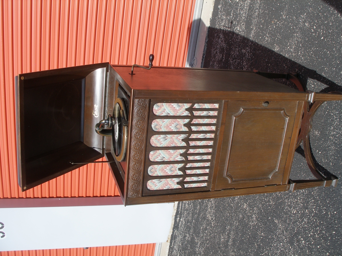 FOR SALE: RARE WALNUT EDISON L-19 (LOUIS XIV) DIAMOND DISC PHONOGRAPH - $2500. I've never even seen another one of this model offered for sale or in any of the collections that I'm familiar with! It's a Nice All Original Example in Good Working Order. The Serial Number is only 43. I live only about 1 ¼ hours drive from the Midwest Music Expo that is coming up soon in Schaumburg, Illinois. I won't be able to attend this year, but this machine could be picked up at my house if you are coming in for that event. Call or e-mail if you are interested in buying it, since I don't get a chance to view responses on this site very often. Thanks! Ron Haring, 17024 Frazier Road, Plano, Illinois 60545 (630) 207-5128 (my cell - CST). My e-mail address is: [email protected] (not victrolaman....)