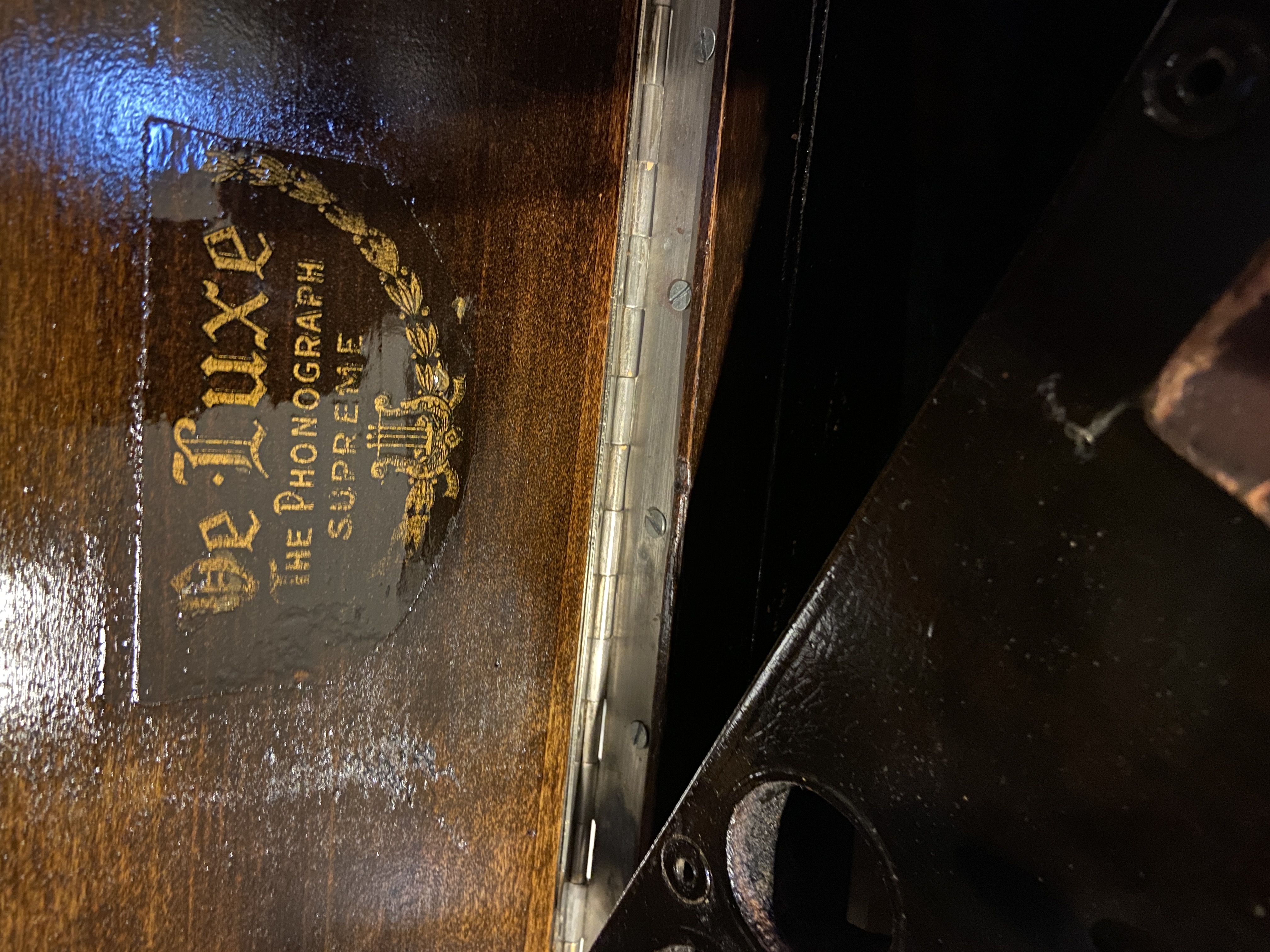 The label on the lid says “Deluxe the phonograph Supreme”.The mica was cracked and I replaced the original diaphragm with a Victor Exhibition.