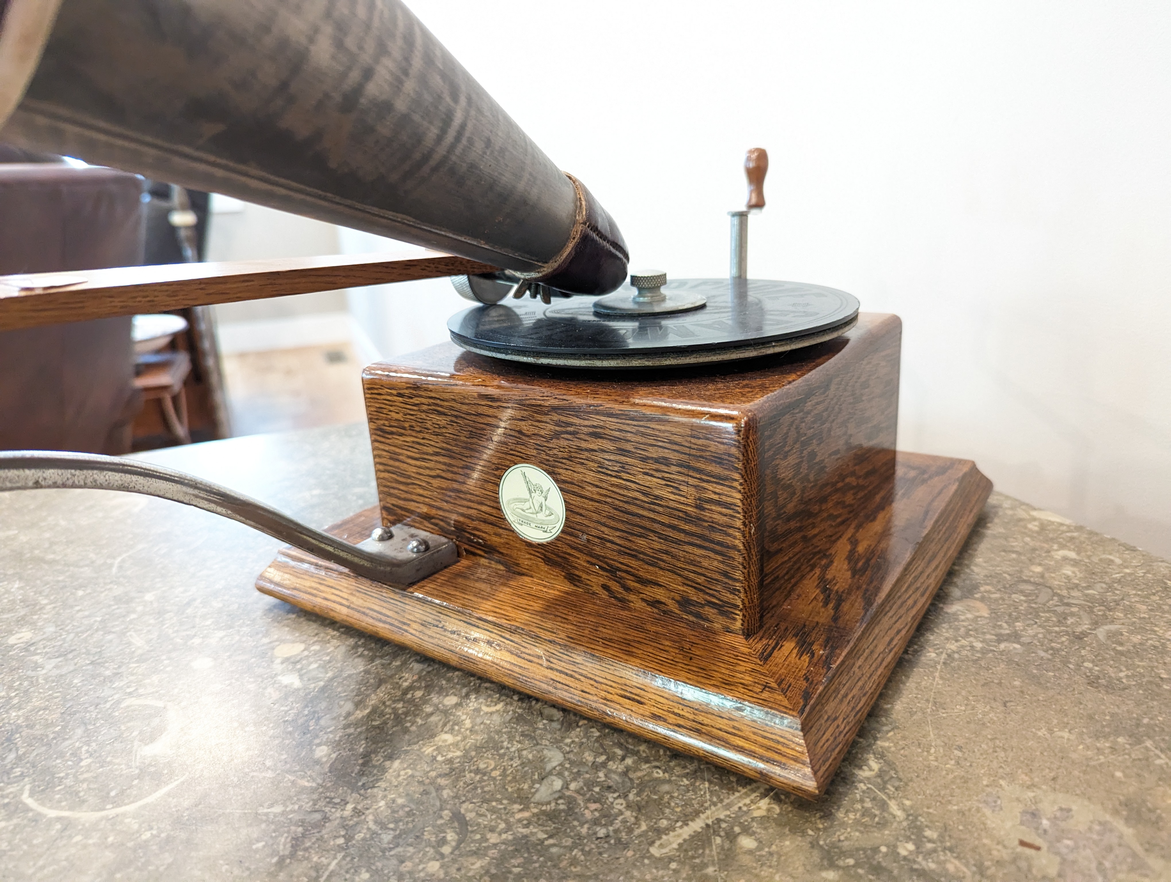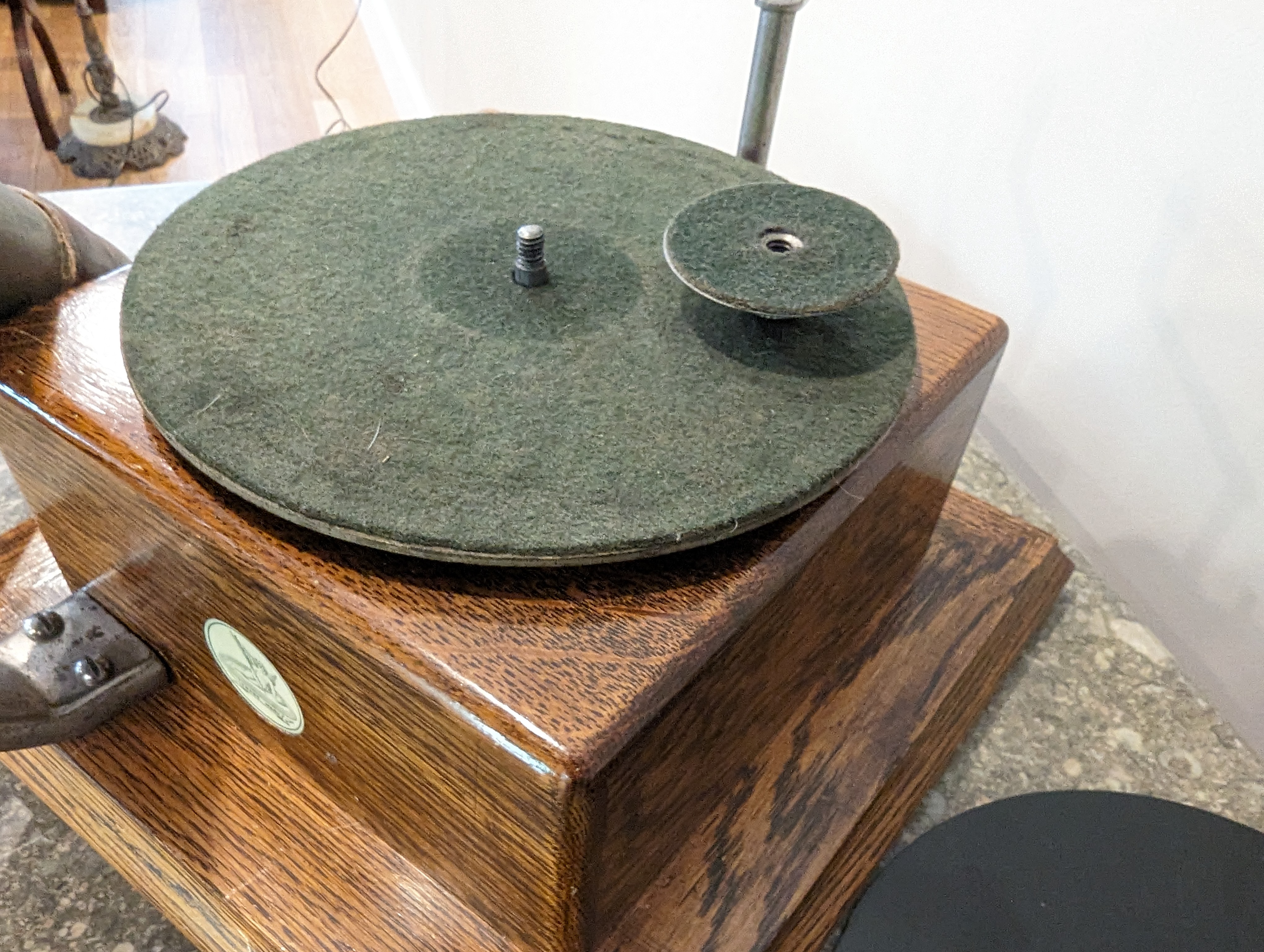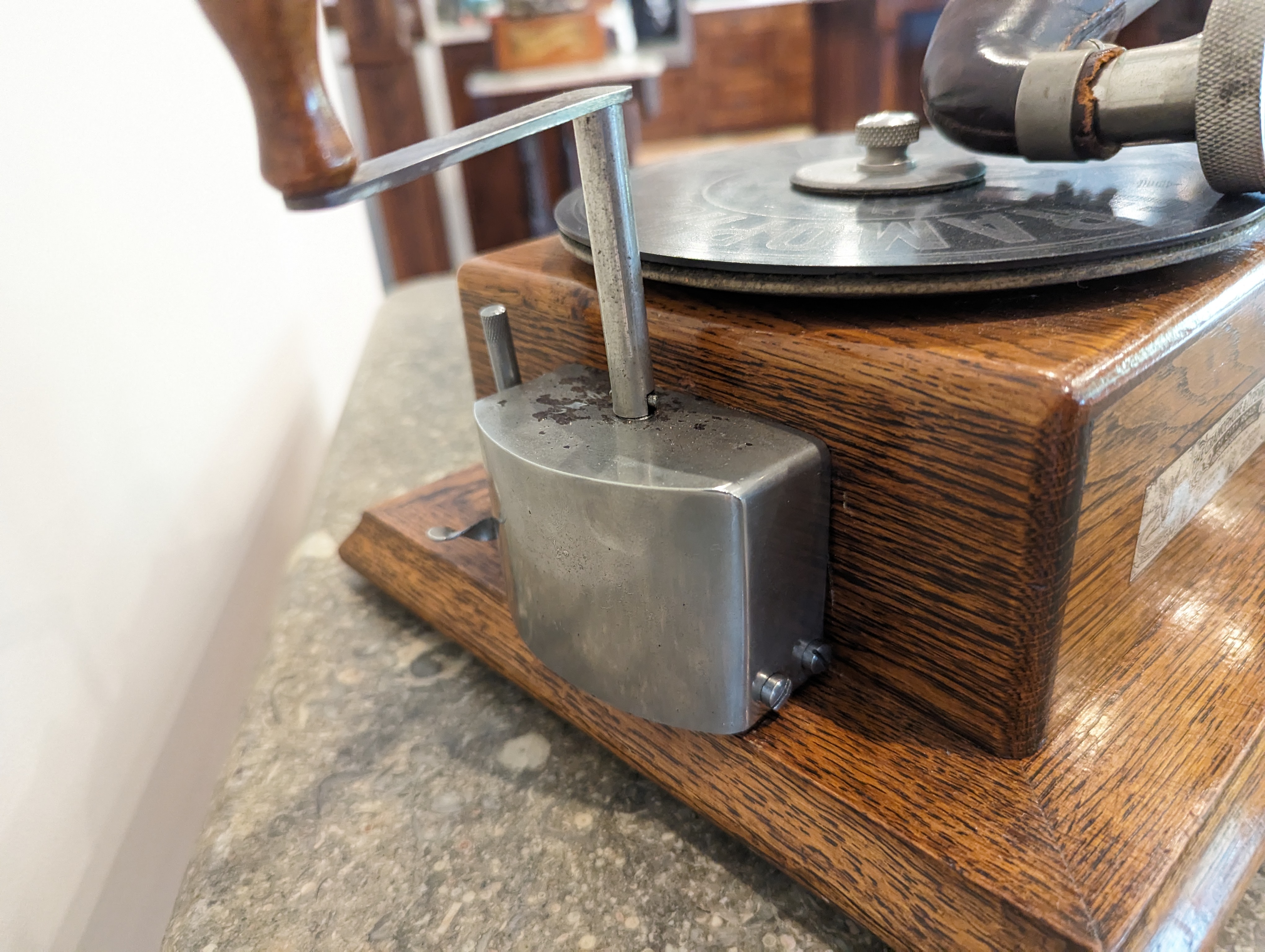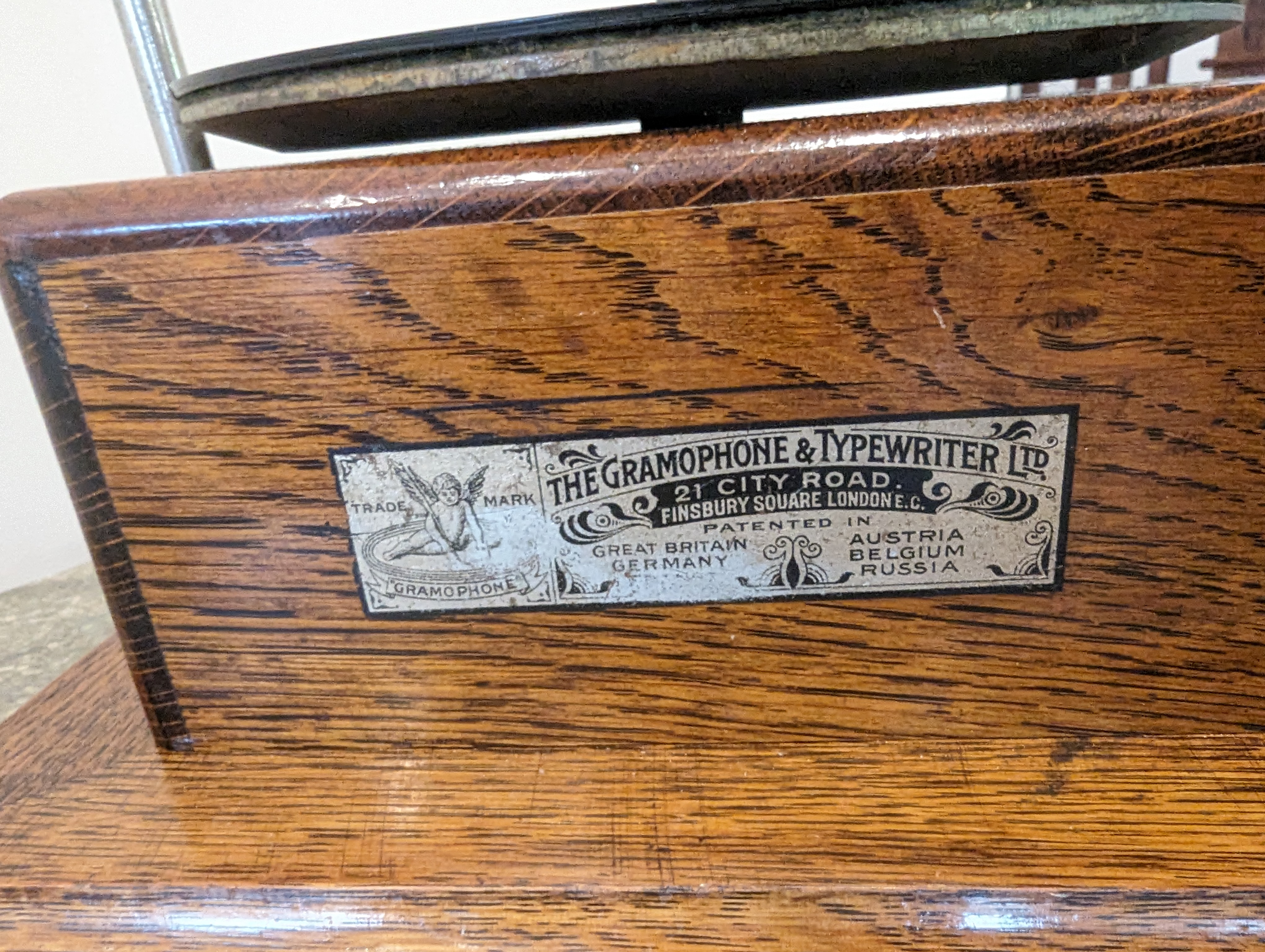 Fourth Item is a Gramophone and Typewriter Berliner style New Style No.2. It is in outstanding original condition. Original finish, and felt G&T concert reproducer. No reproduction parts. It includes a G&T Berliner record with embossed back featuring the angel logo. Price SOLD. Please email me if you have any questions.