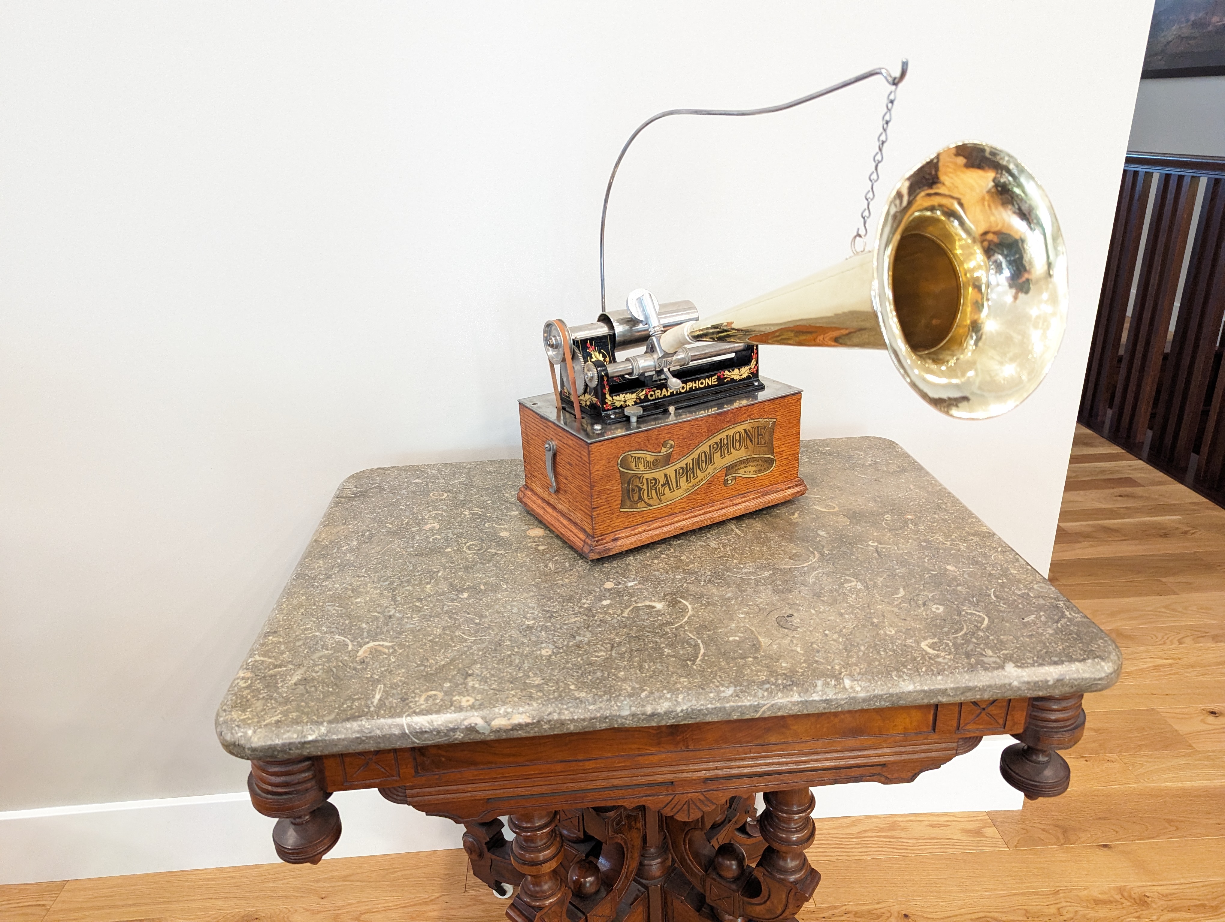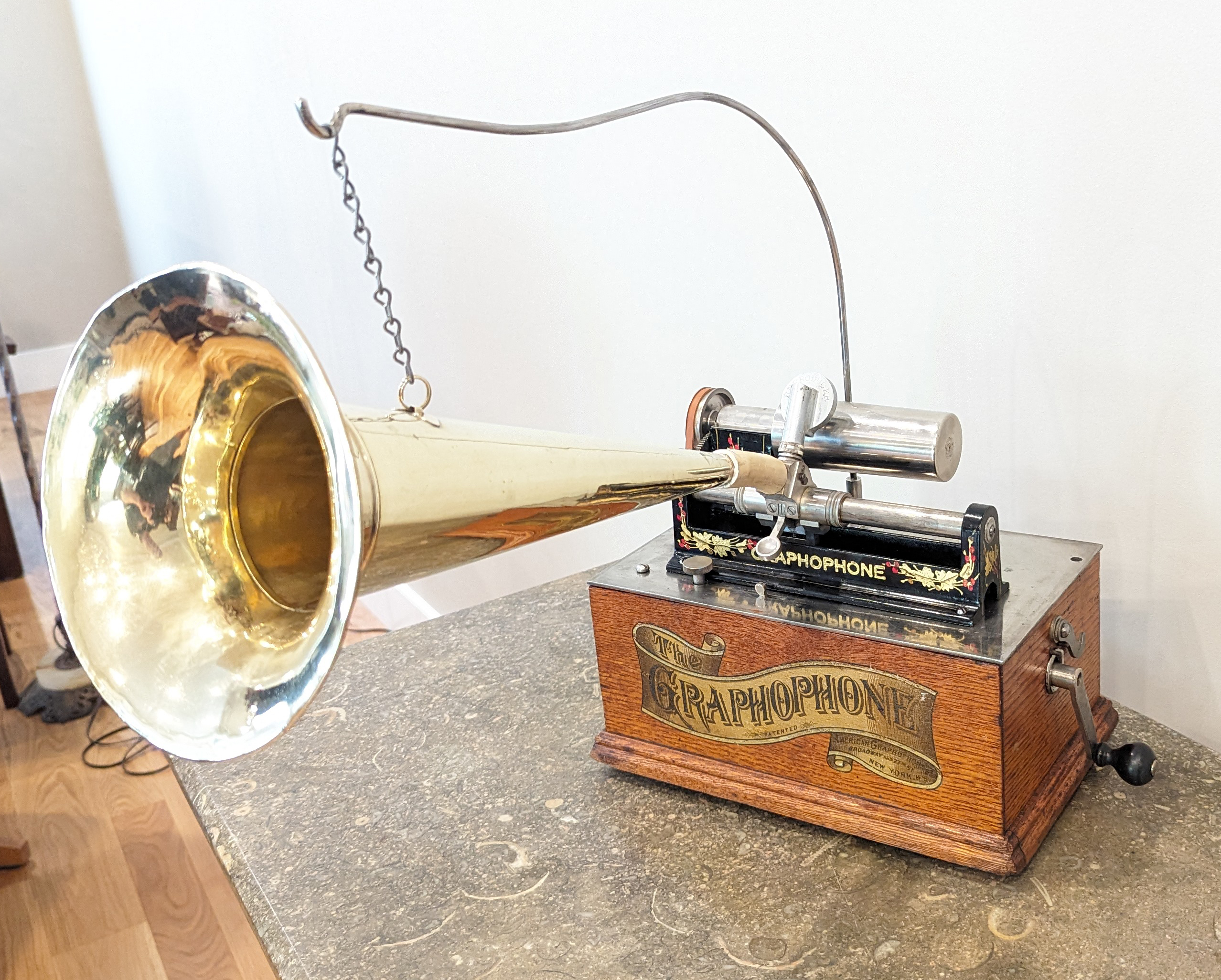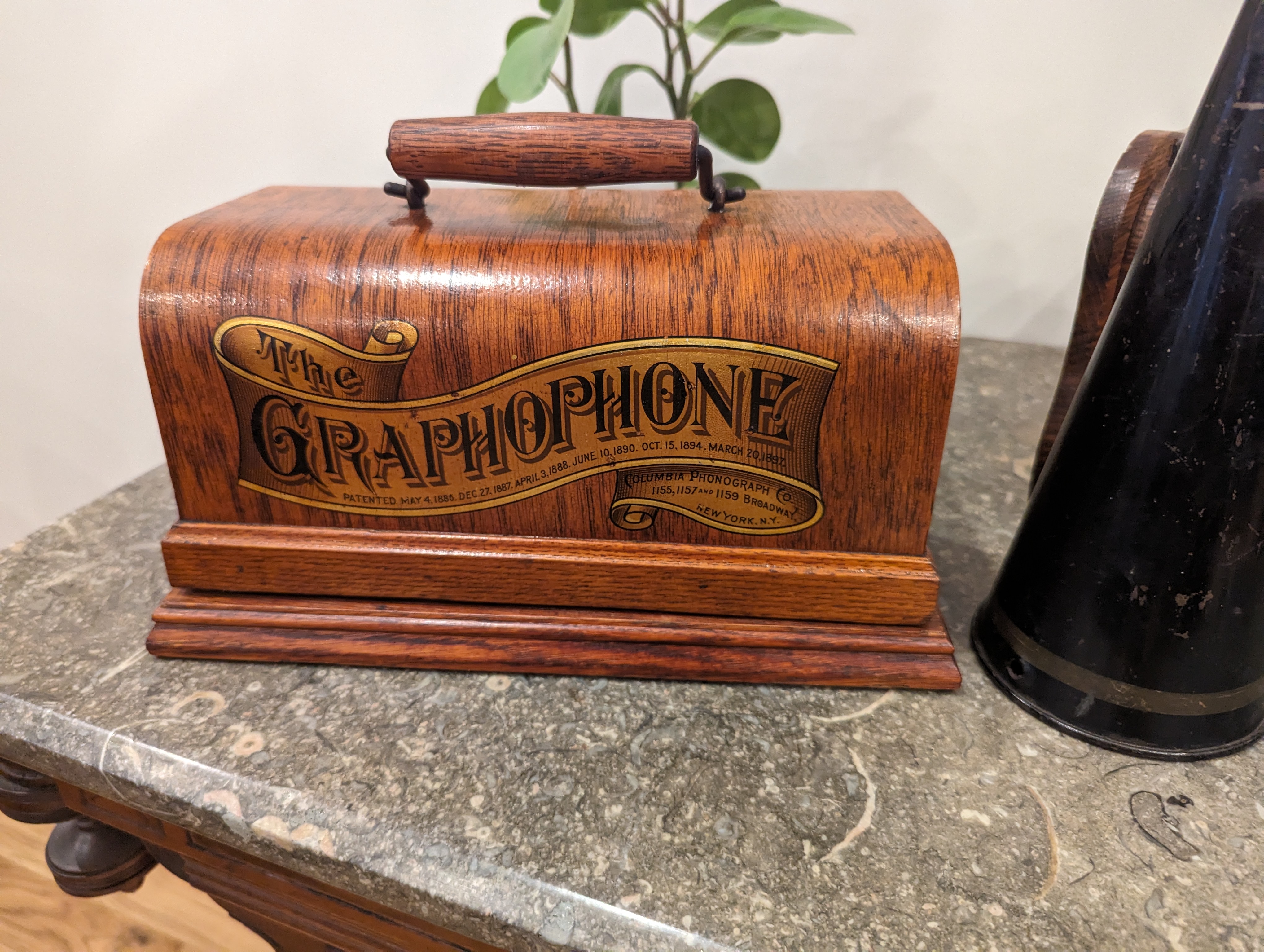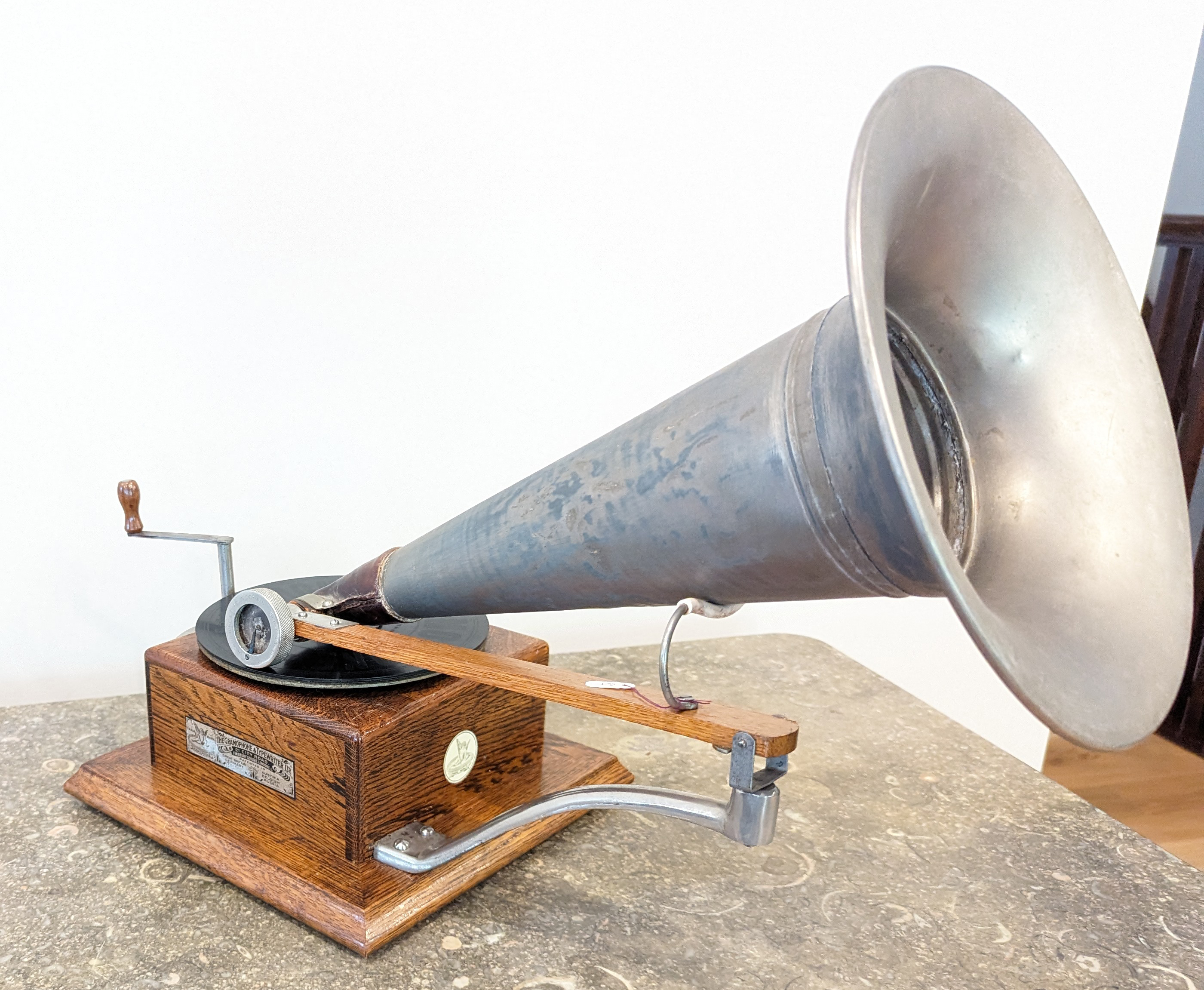 Fourth Item is a Gramophone and Typewriter Berliner style New Style No.2. It is in outstanding original condition. Original finish, and felt G&T concert reproducer. No reproduction parts. It includes a G&T Berliner record with embossed back featuring the angel logo. Price SOLD. Please email me if you have any questions.