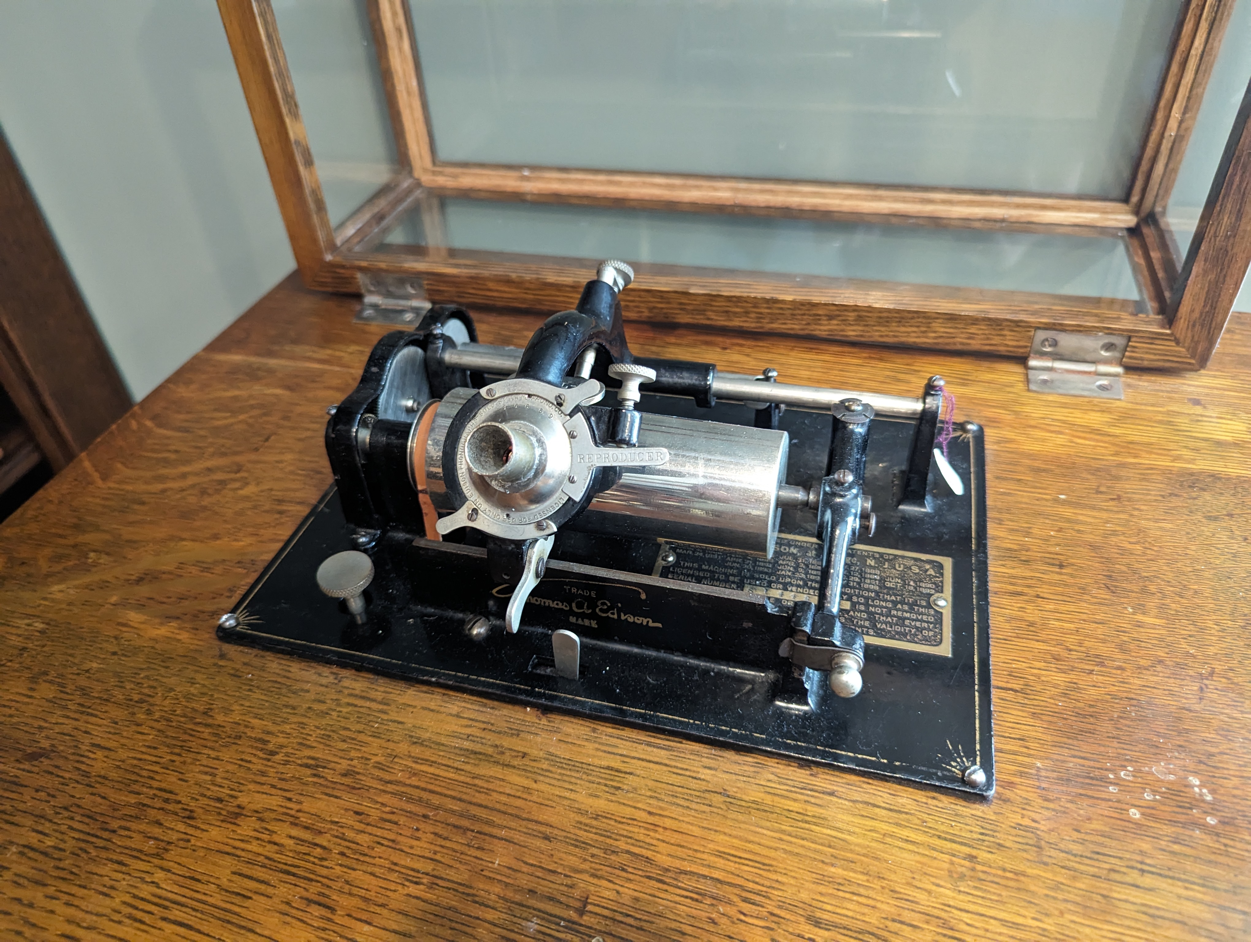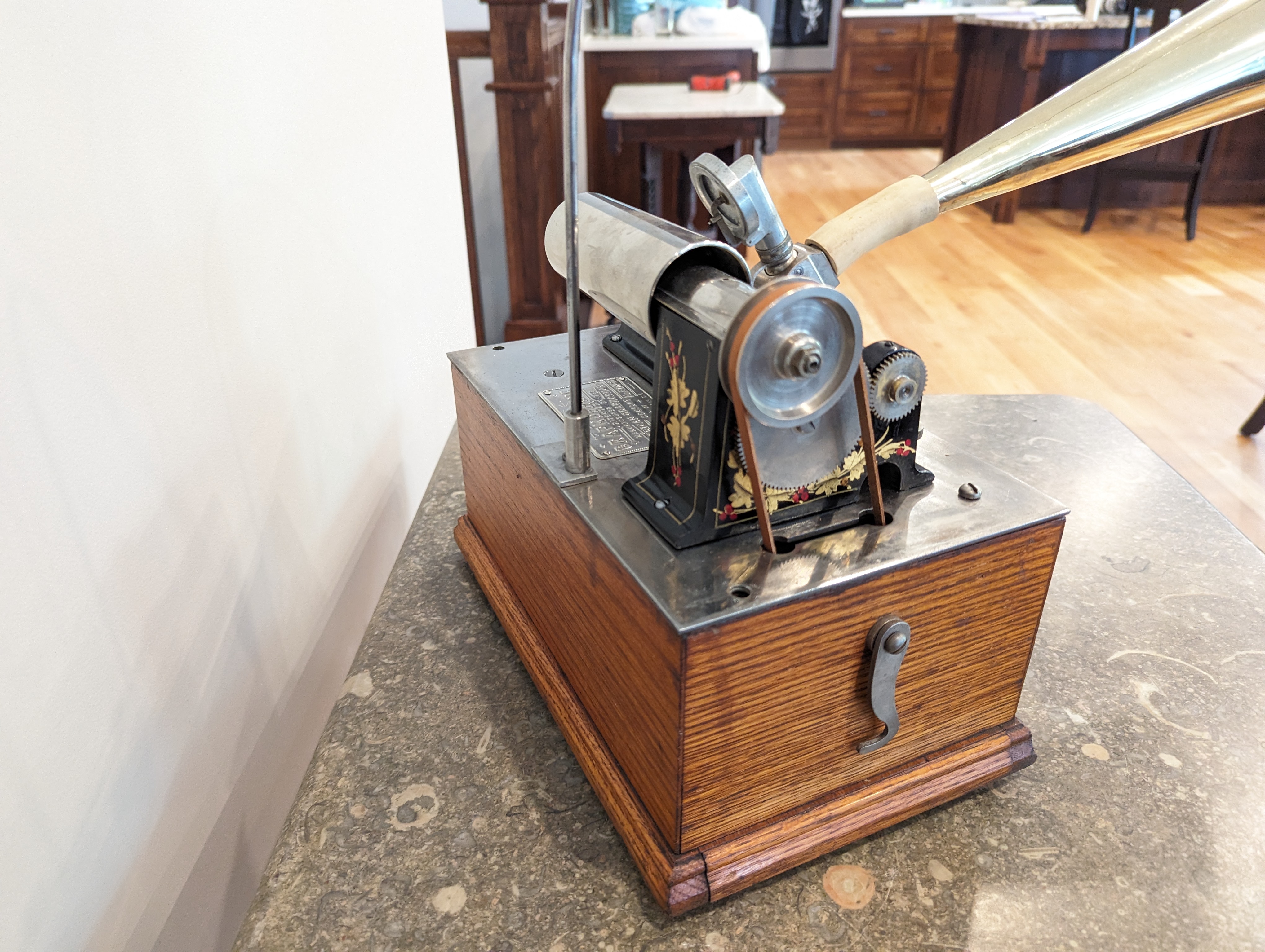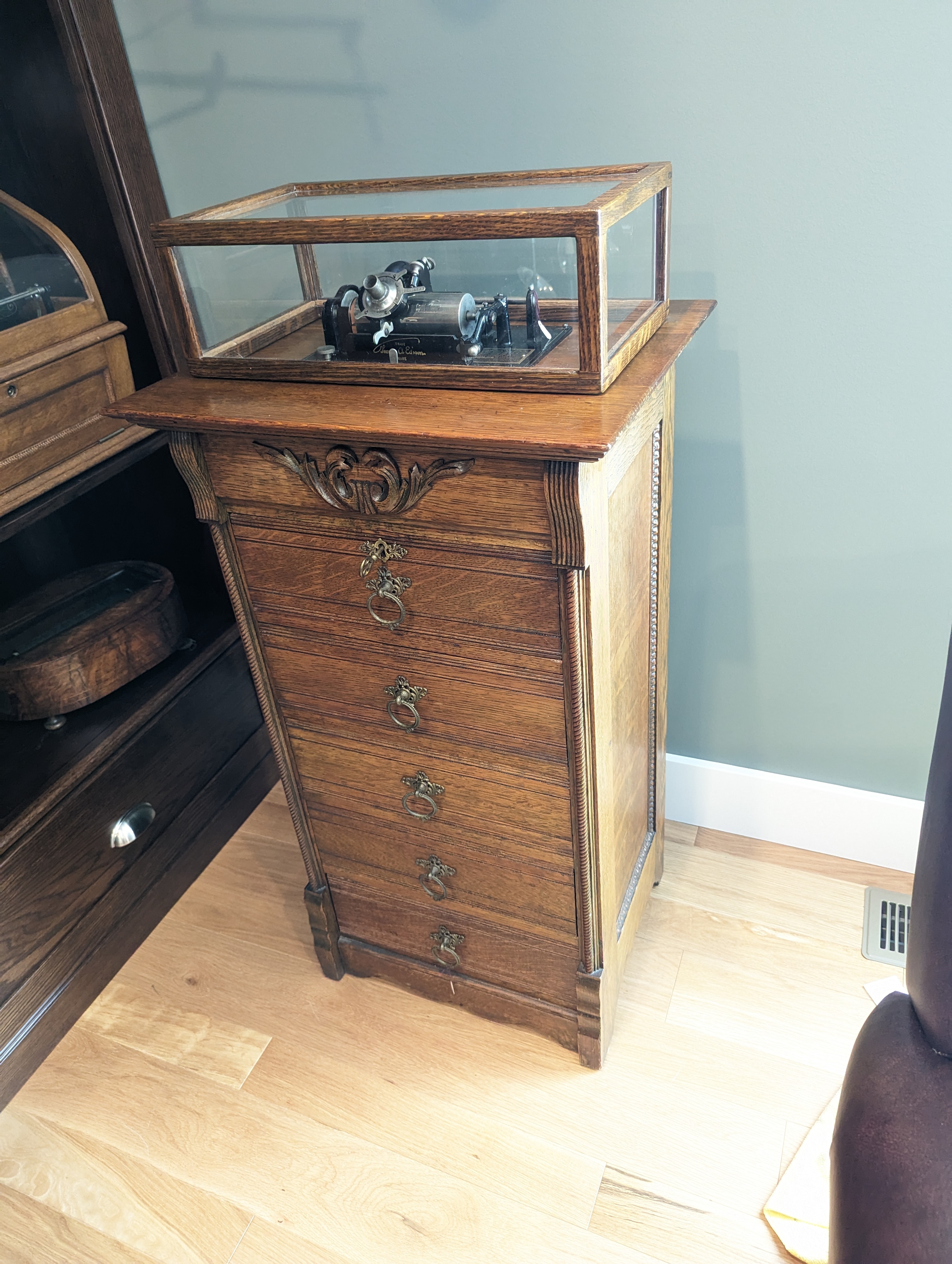 Third Item is an Edison Standard in a Hawthorn and Sheble under Glass cabinet. This is a very rare cabinet... only a couple have been found with he Standard. There are many more homes versions know. The glass lid has been faithfully recreated as it was missing. It has original pegs in the drawers and the drawers are locked when the top drawer is pushed in. Finish is mostly original (lid is new). Correct crank with an extender. Price $2500. Please email me if you have any questions.