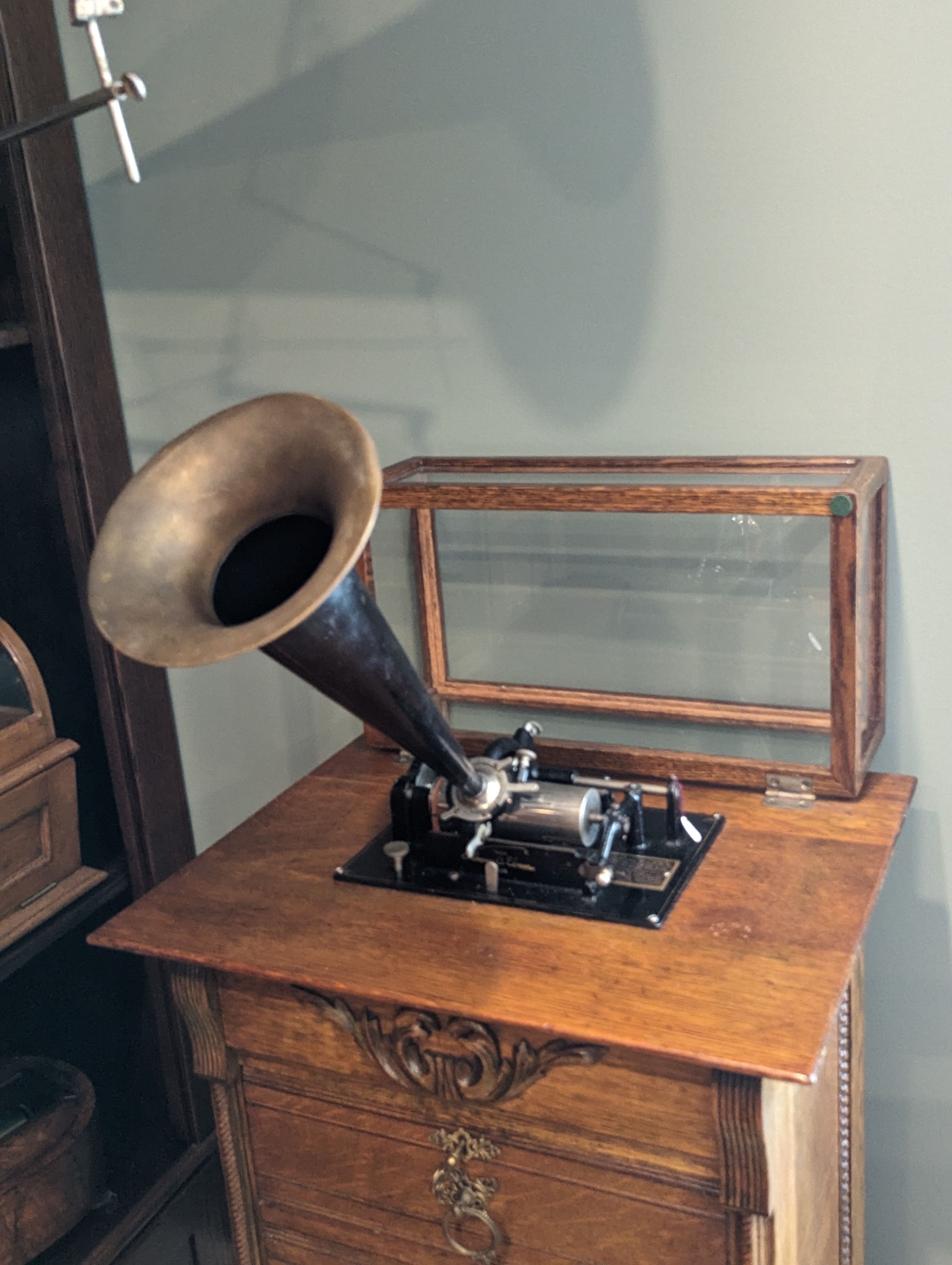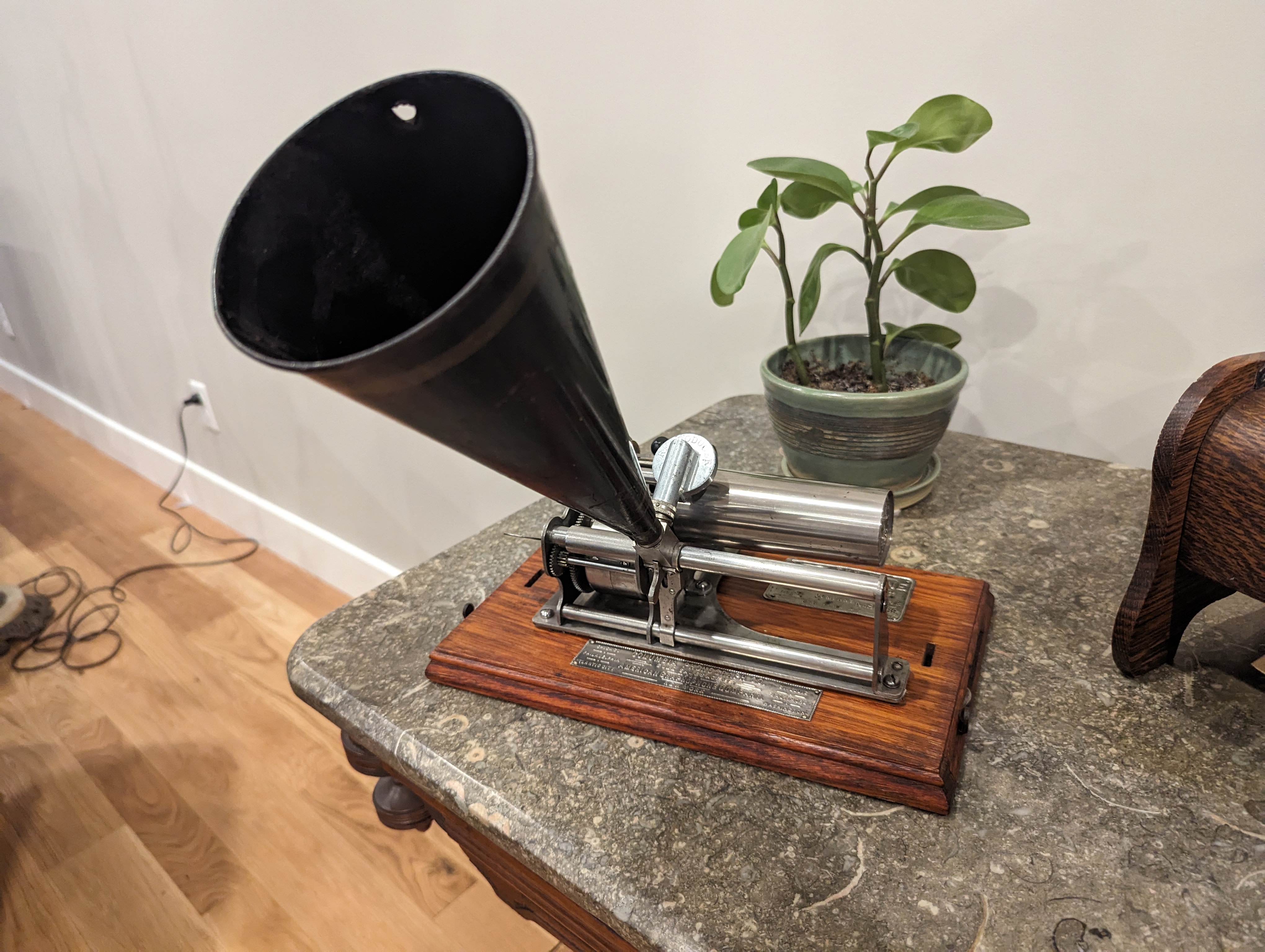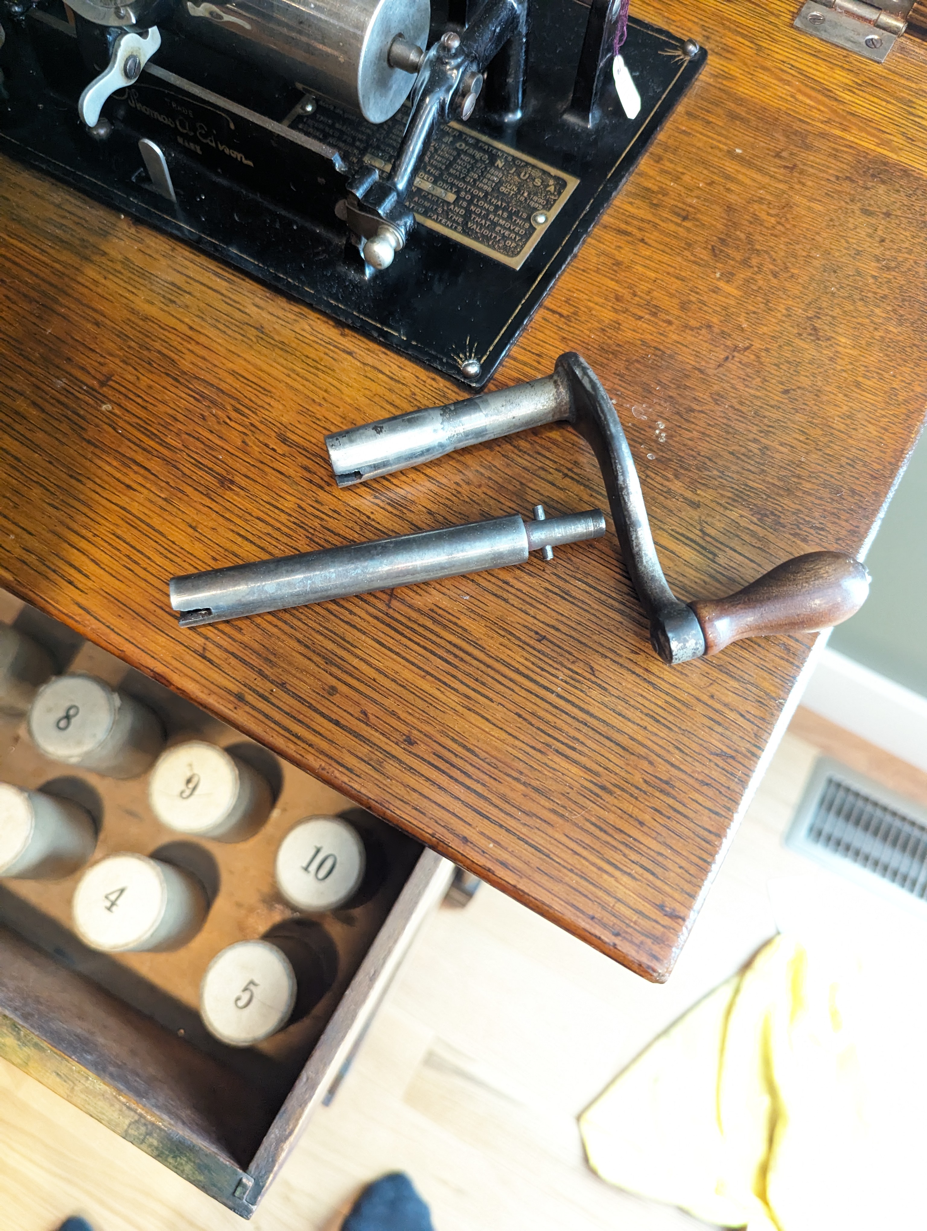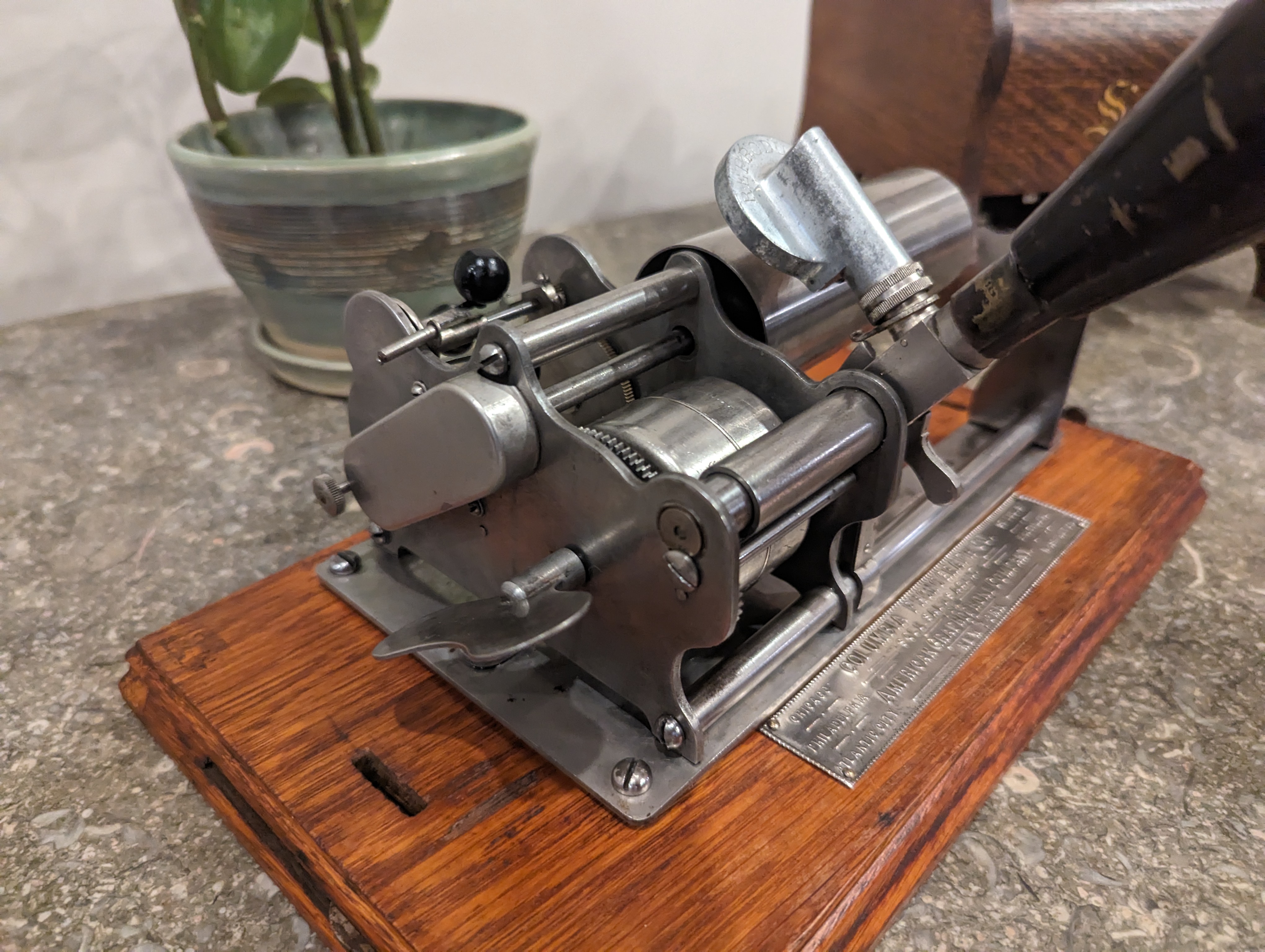 Third Item is an Edison Standard in a Hawthorn and Sheble under Glass cabinet. This is a very rare cabinet... only a couple have been found with he Standard. There are many more homes versions know. The glass lid has been faithfully recreated as it was missing. It has original pegs in the drawers and the drawers are locked when the top drawer is pushed in. Finish is mostly original (lid is new). Correct crank with an extender. Price $2500. Please email me if you have any questions.