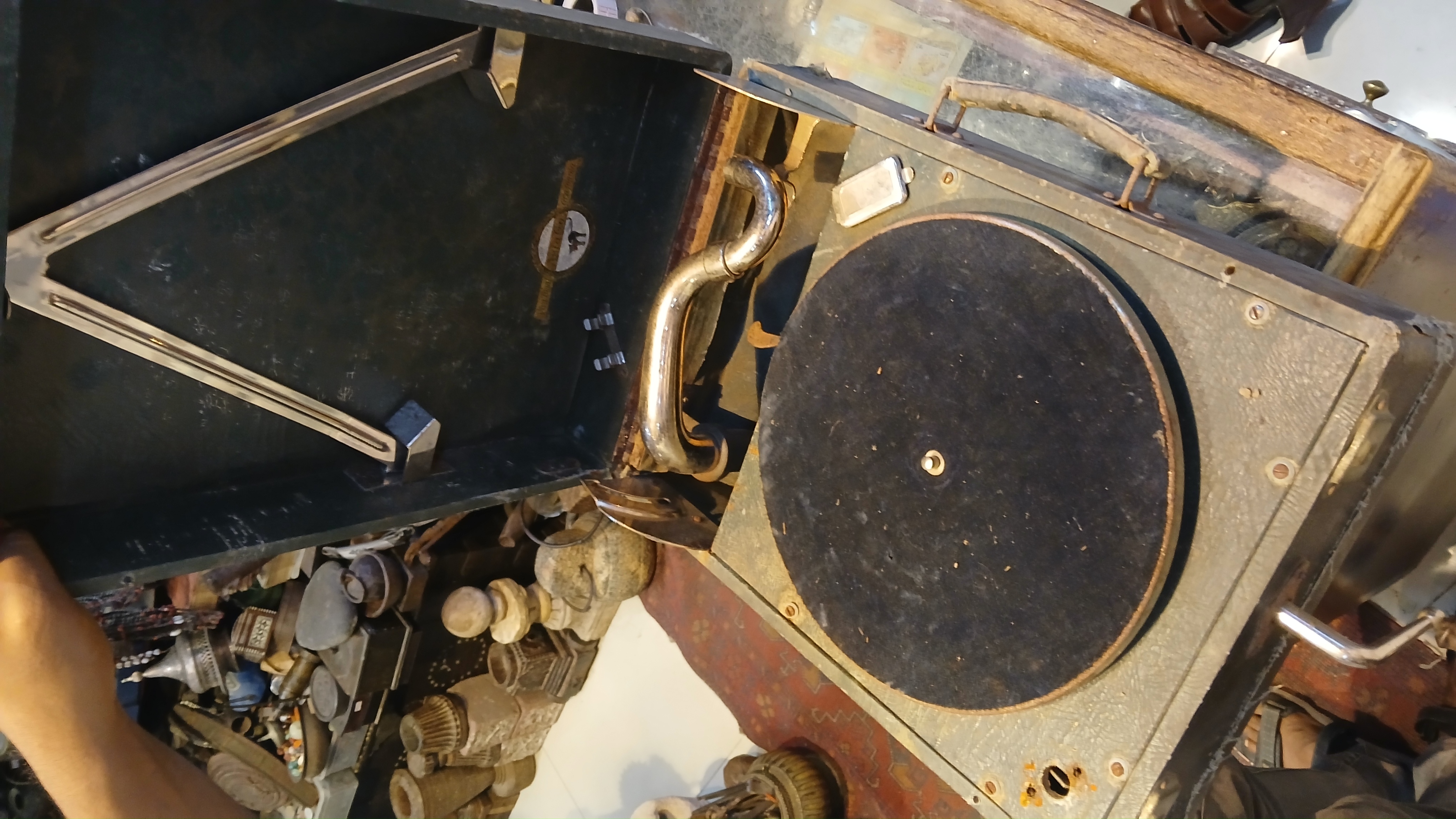 Well, my hobby has taken me to a few places. I saw this machine in an antique shop in the tourist hub of Mutrah, Oman. I dont know what it is, it looks like a Columbia machine but my limited knowledge doesnt make me sure. I asked the shop owner for the soundbox since it was the only thing I wanted and he refused to sell. I have to buy the entire machine to get just the soundbox. The brake doesn't work, the needle pot is rusty, the horn is partially detached, the outer case is bare wood in a few places, the thing winds but the platter does not move, the speed control is missing and depressing the inside doesn't do anything. Putting my hand under the motorboat gave me pieces of wood and rust. The shopkeeper did not allow me to inspect the motor, or the horn, or underneath the platter. I asked him for a price and he said 50 OMR (slightly over 100 GBP) down from 85 OMR (170 GBP). I searched for weeks now, and this is what I find. No amount of bargaining would convince the guy to lower the price, or let me inspect it at all. I walked out of the store a very bitter person.