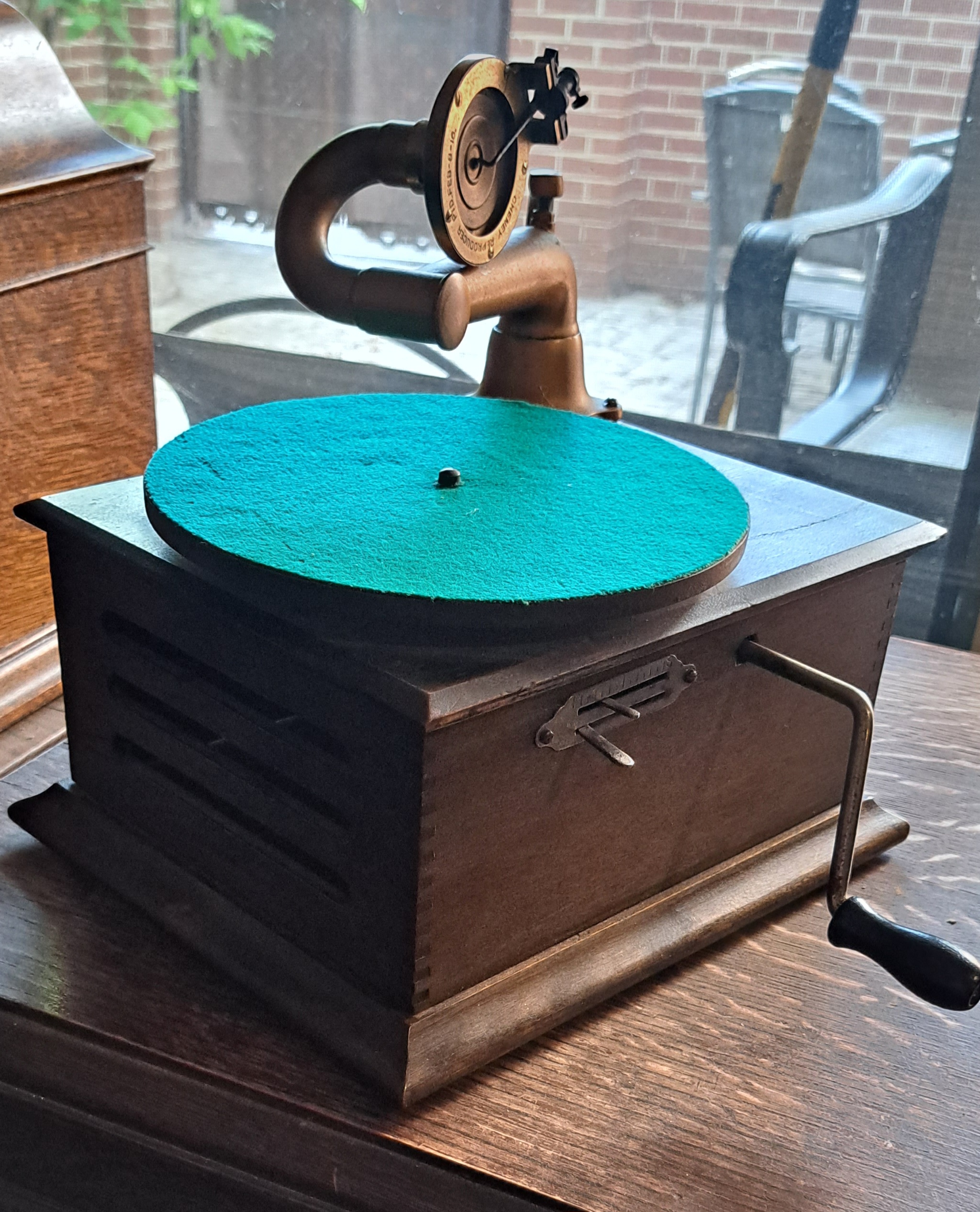 I have only been able to find images of a brochure. The strange thing is that the underside label refers to the phonograph as model no. 27; the brochure identifies it as a no. 2.