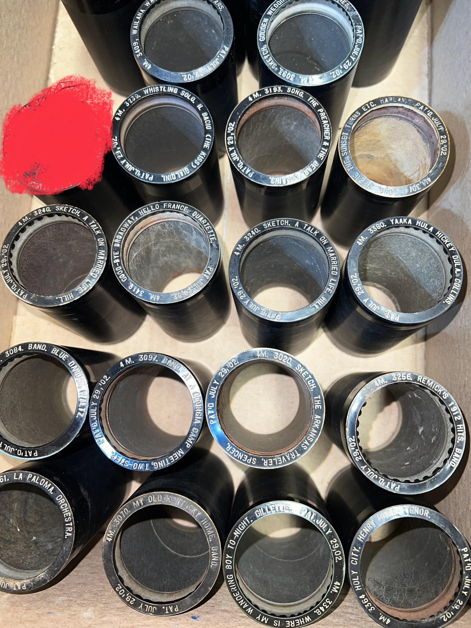 I have 17 four minute Indestructible cylinder records and 7 four minute US Everlasting cylinders for sale in one lot. Condition is fair to good, I tested a few and they sound fine. Price for the entire lot is $65. Shipping will be actual cost via Media Mail. I prefer check or money order for payment. If lease PM for questions or commit to buy. Here’s the titles: