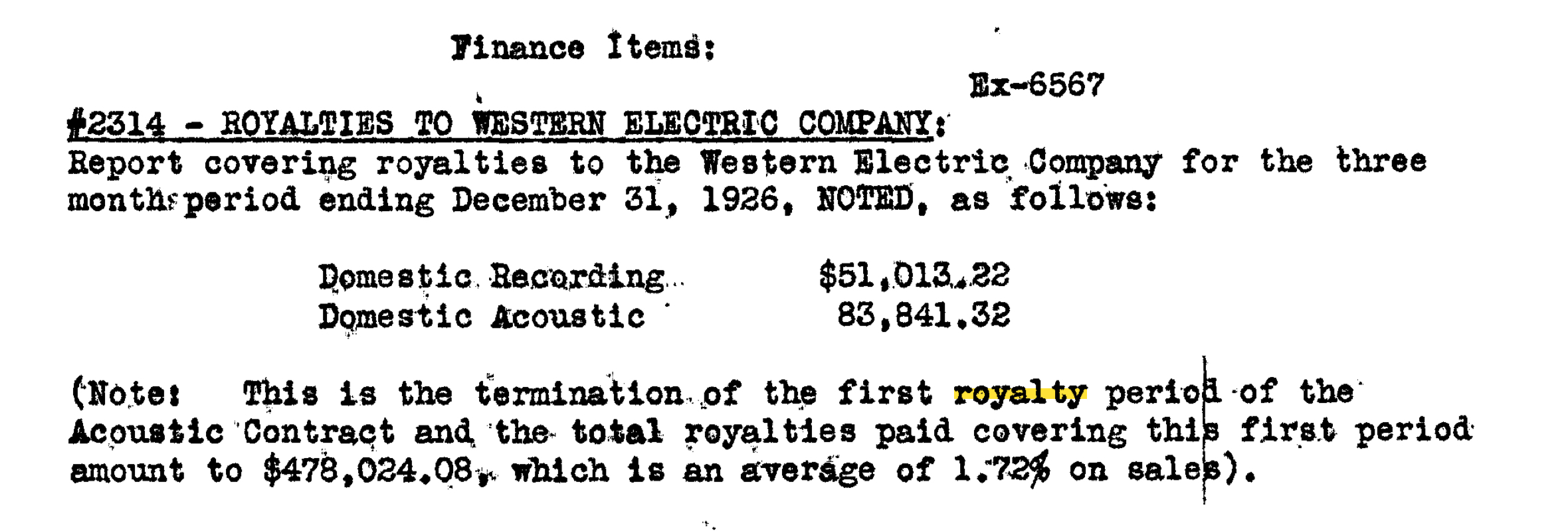 For the WE royalty discussions please review the 1925 and later volumes.