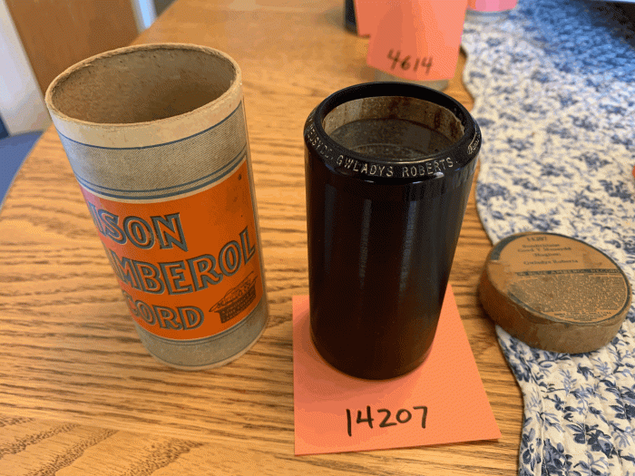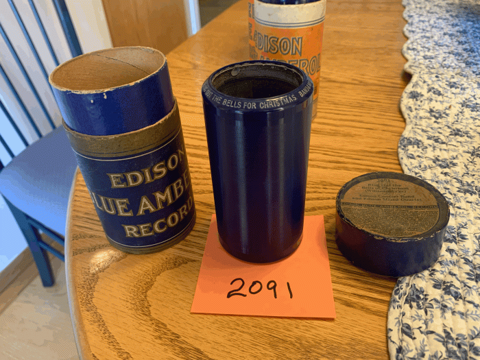 I am selling a few very good Blue Amberol cylinders. The buyer is the first to PM "SOLD!". Please no phone calls or emails. Questions are fine but they do not imply something is on hold. Buyers to pay only the cost of media mail and new carton.