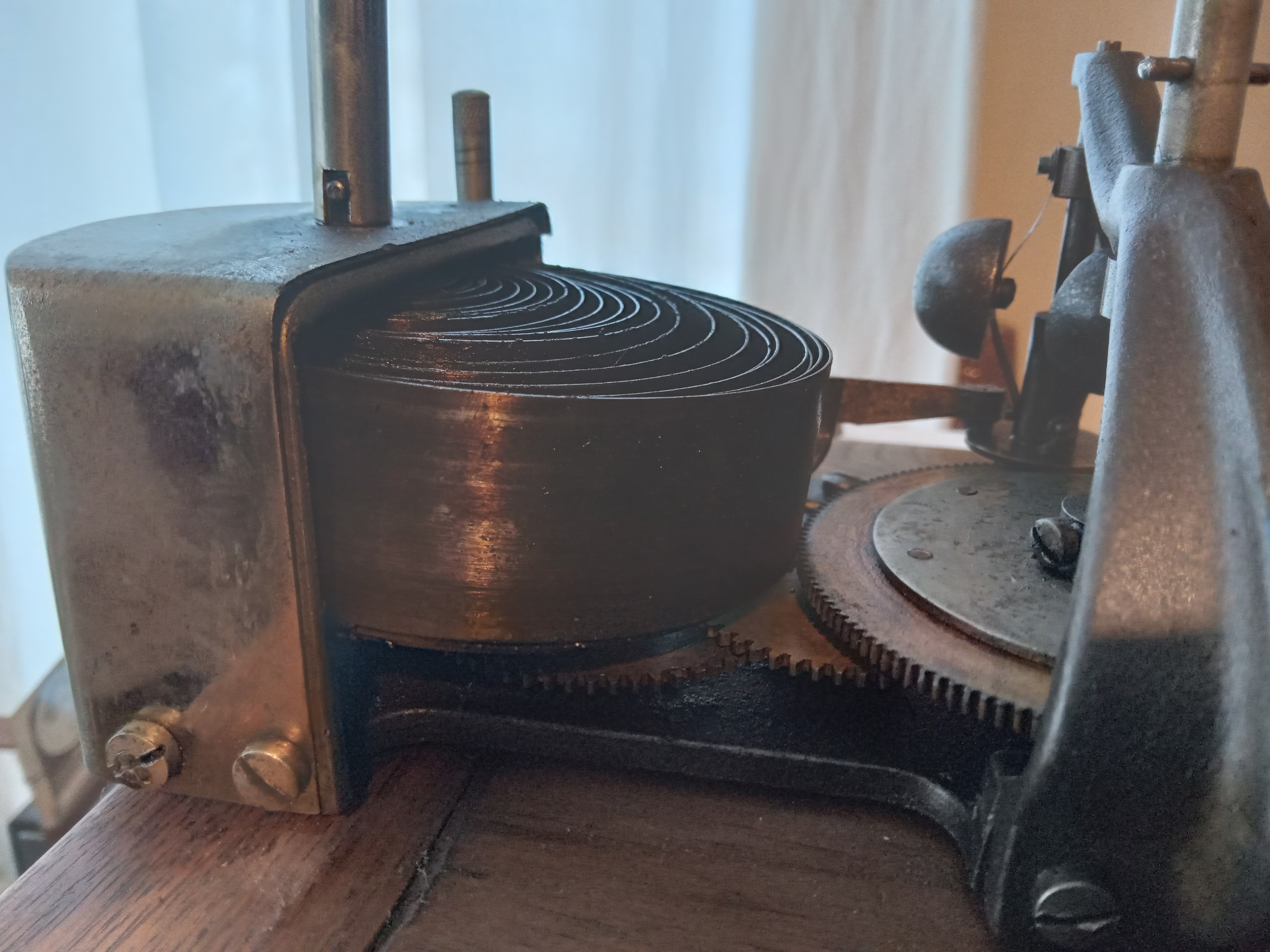 As you can see, as tthe spring unwinds it drops toward the delicate and expensive fibre gear.