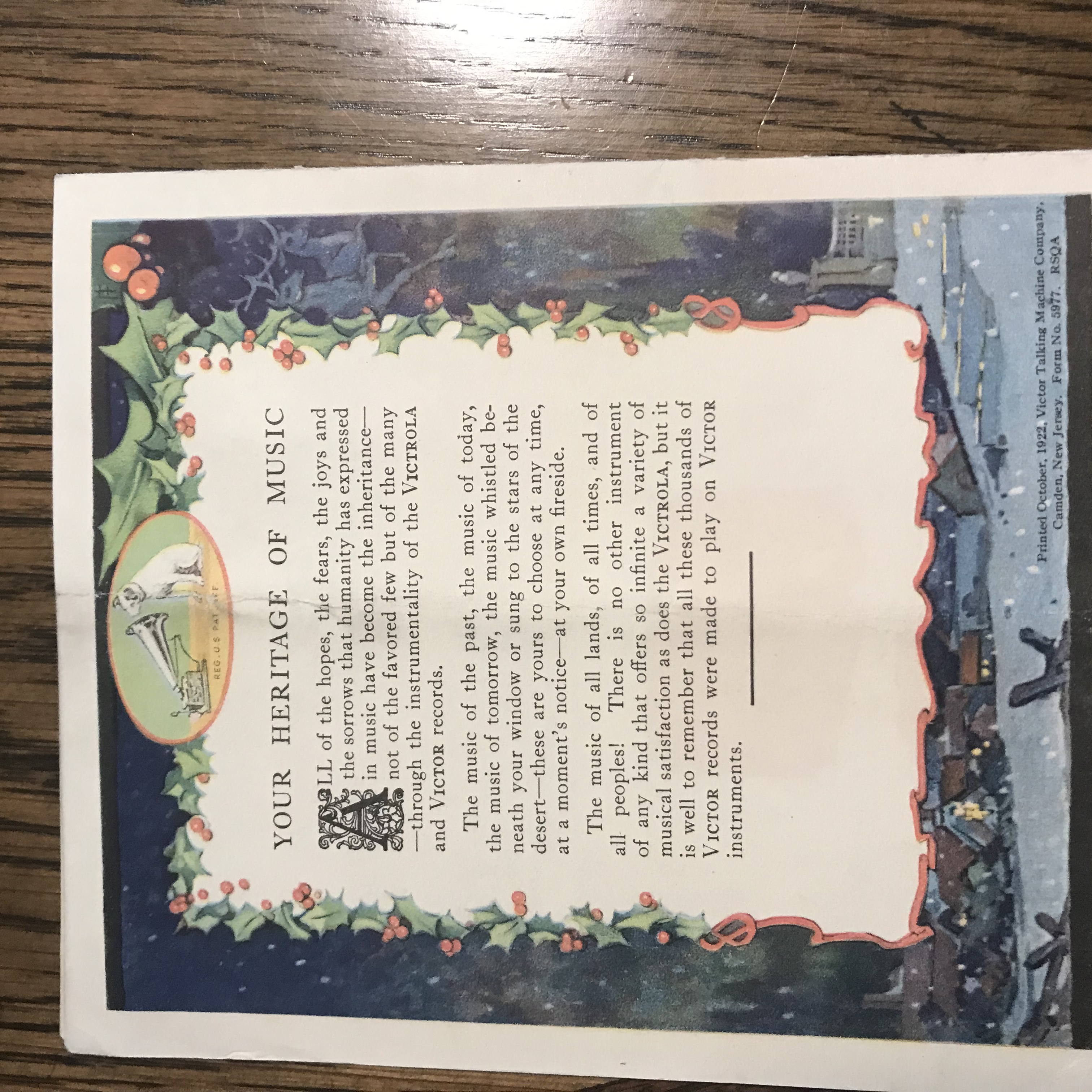For sale: Victor fold-out pamphlet with Christmas theme in excellent condition.
