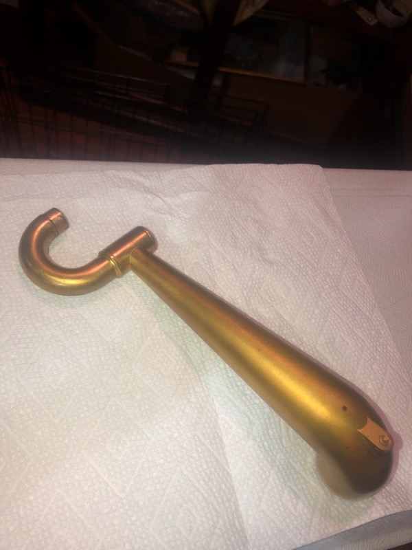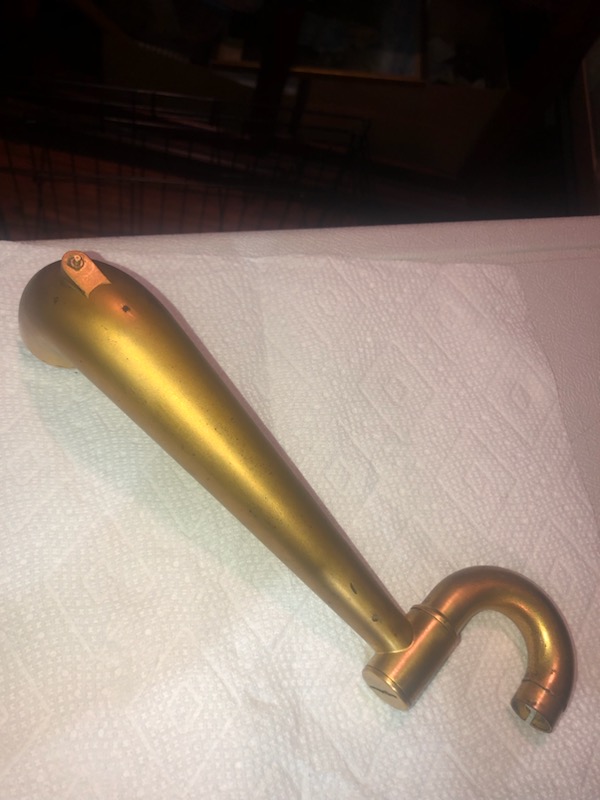 Gold Victor taper arm tone arm in nice condition. Used on the Victor outside horn machines I believe. Original plating. Some small spots on arm as in photos, but should polish out. Not perfect but presents very well. See photos for complete details. More photos upon request. Mounting/swivel pin is included. $135.00 + 19.50 shipping Continental US. Questions/offers don't hold the item. First Buyer to post "SOLD" below, or in a PM is the Winner as determined by earliest time of message received.